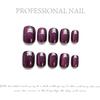 [Arte de uñas semi-artesanal] Uñas postizas cortas y redondas con diseño de ojo de gato en tinta morada, parche con acabado desmontable, venta al por mayor