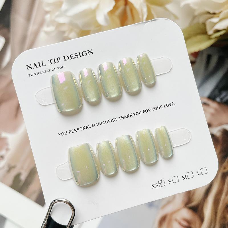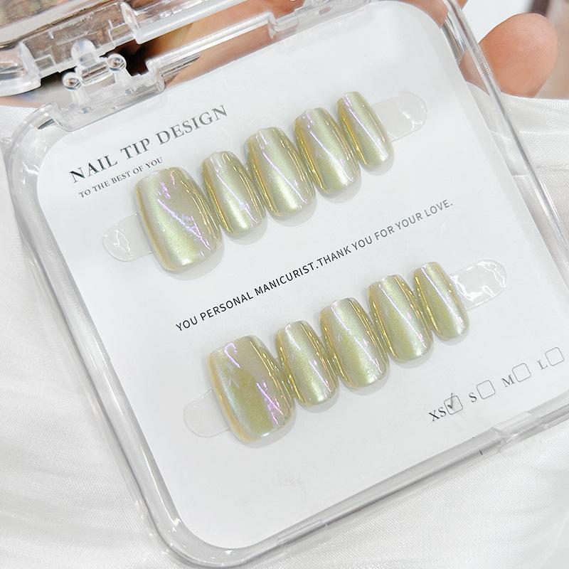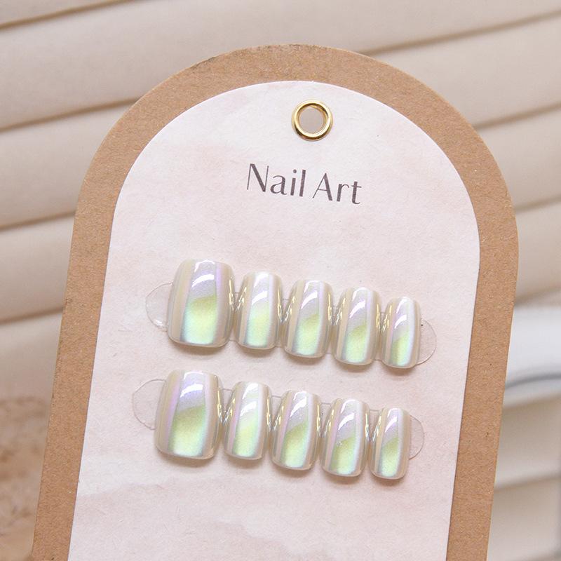 Use una uña mágica colorida, uña corta, escalera, chapado en ojo de gato, temperamento blanco, uña postiza, 10 piezas