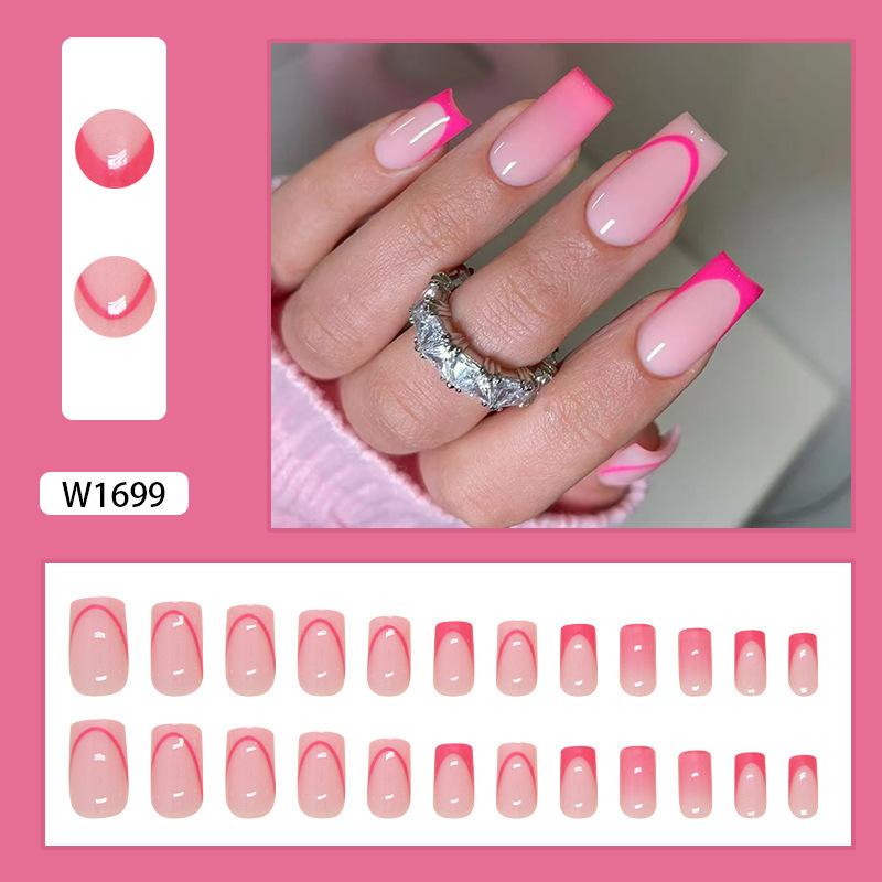 Comercio exterior transfronterizo, uña postiza, uña francesa, uña de color sólido, uña postiza cuadrada europea, 24 piezas