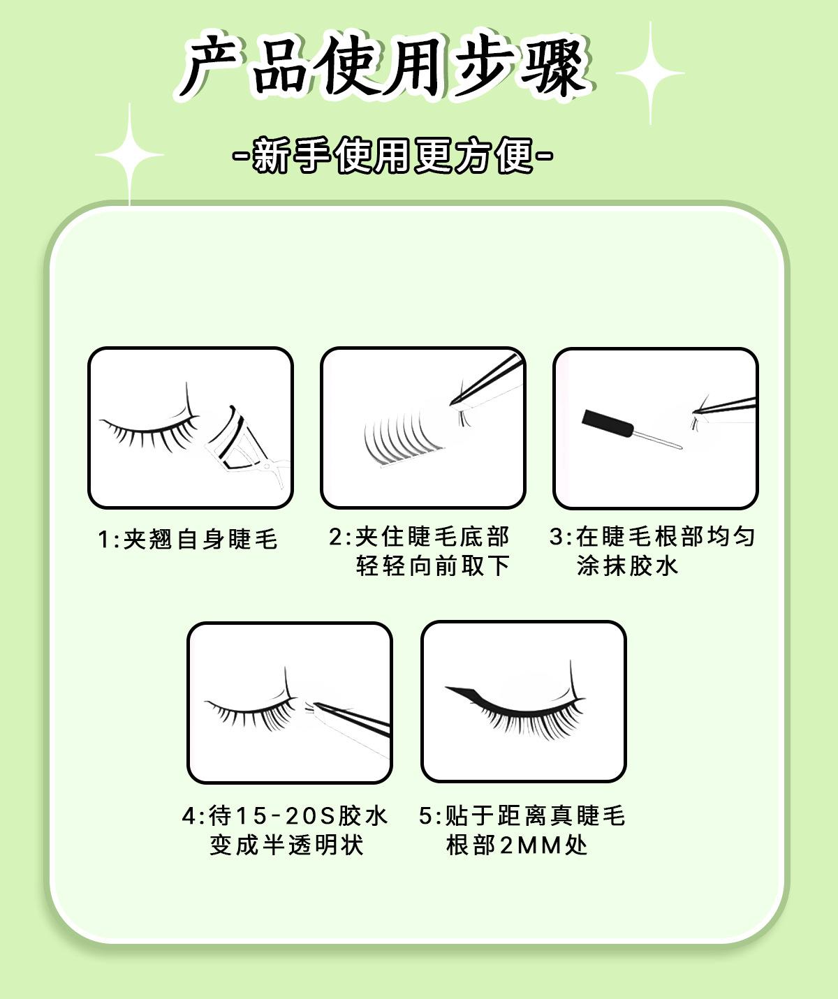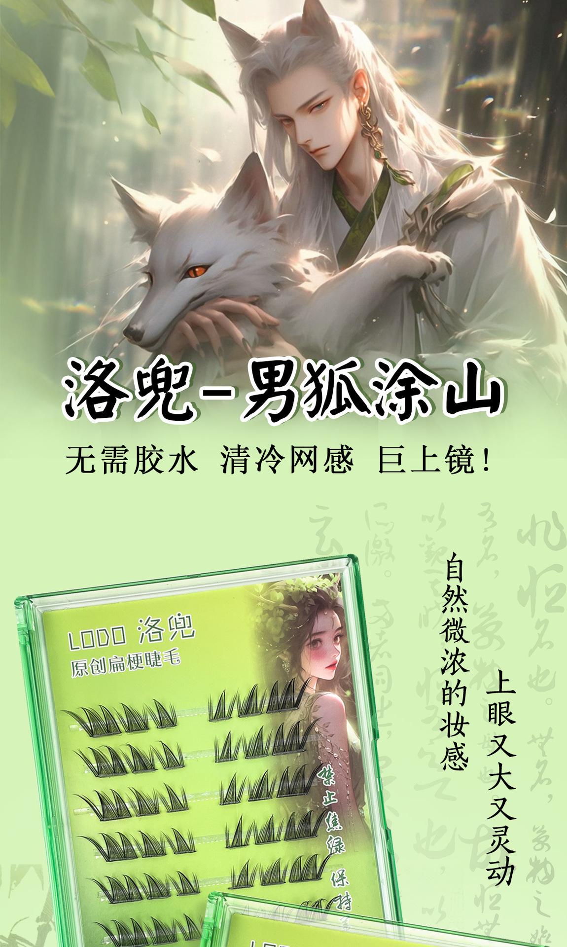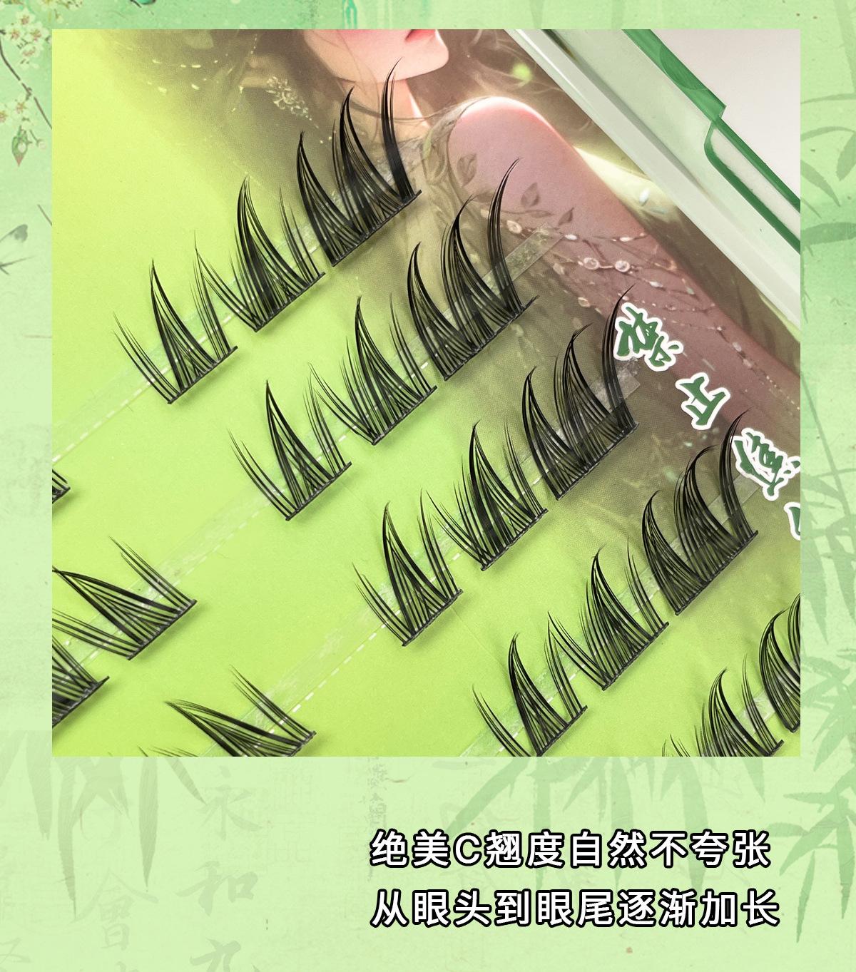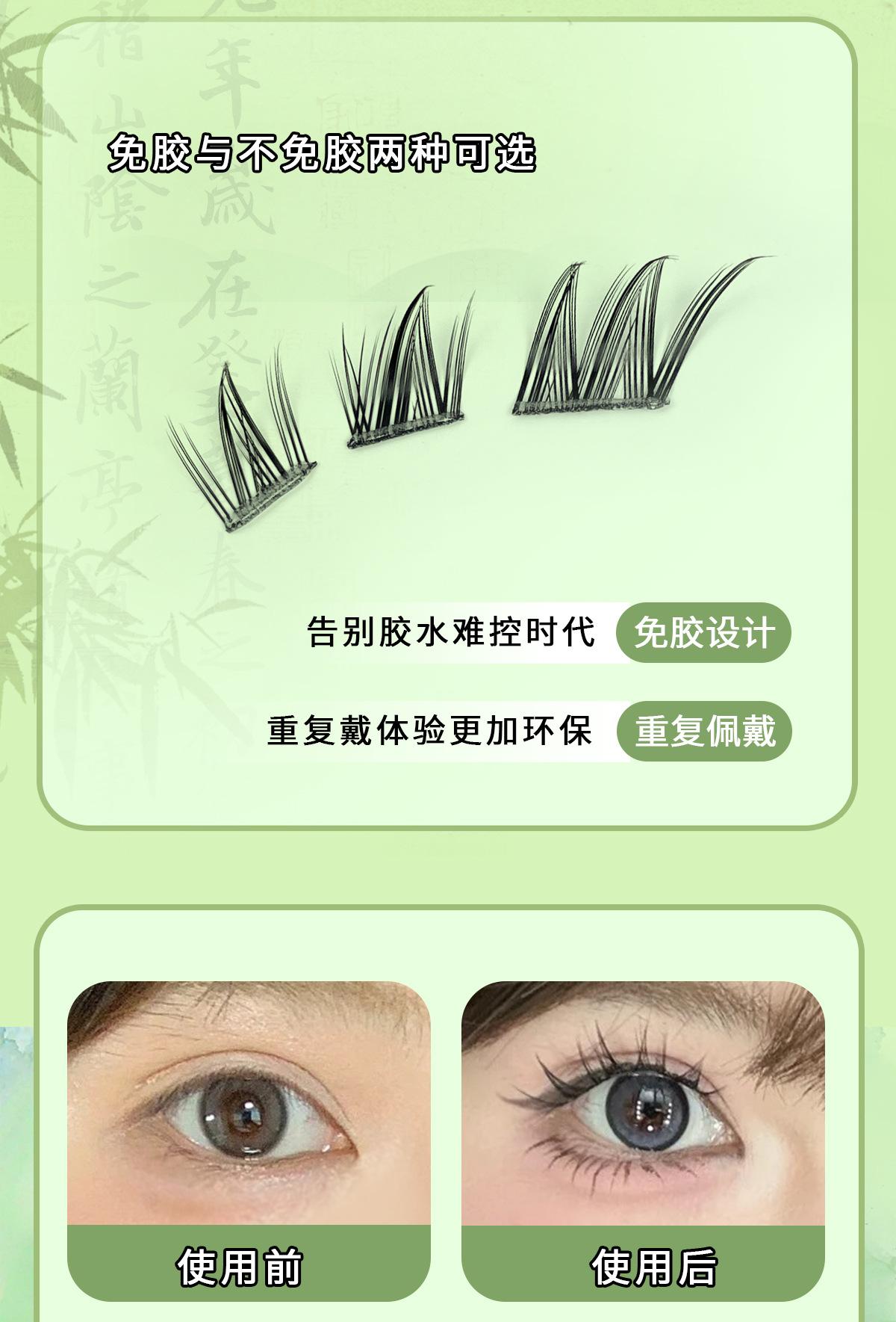 Pestañas postizas sin pegamento de zorro macho estilo chino, inclinadas, segmentadas, ligeras, maquillaje europeo y americano, pestañas largas y rizadas gruesas ahumadas para mujeres