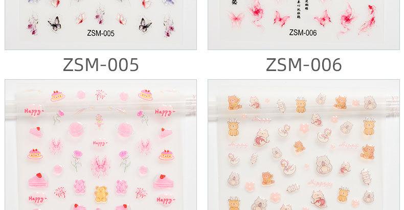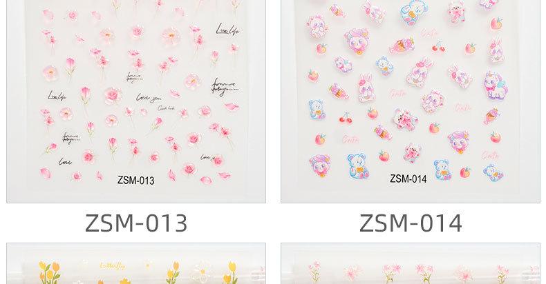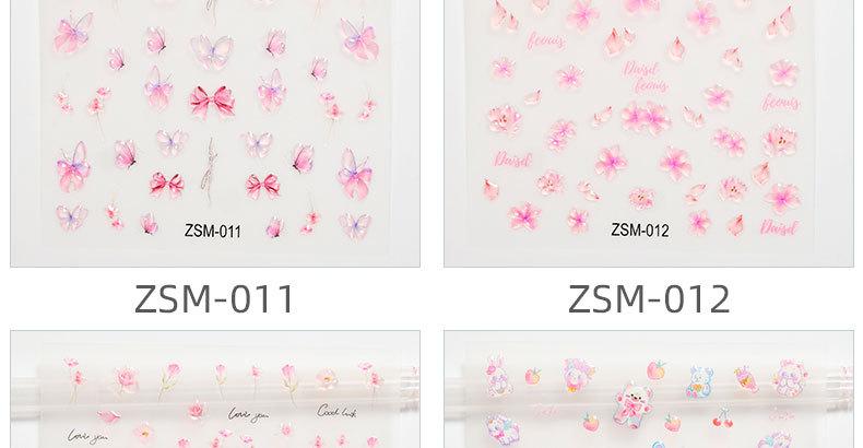 Pegatinas de gelatina de cristal para uñas, diseño de oso de flores de dibujos animados 5D con relieve estereoscópico, decoración de calcomanías para uñas DIY