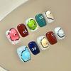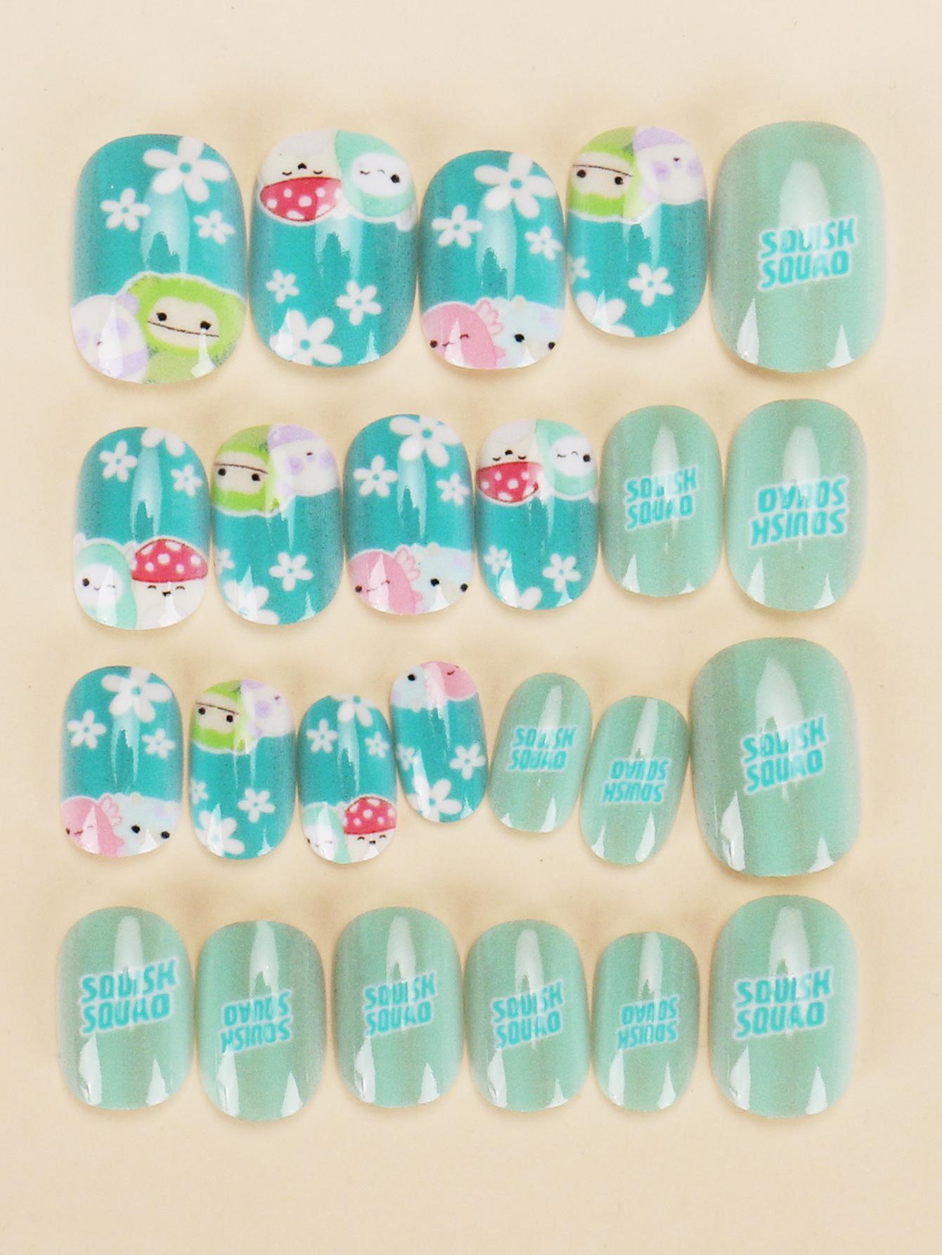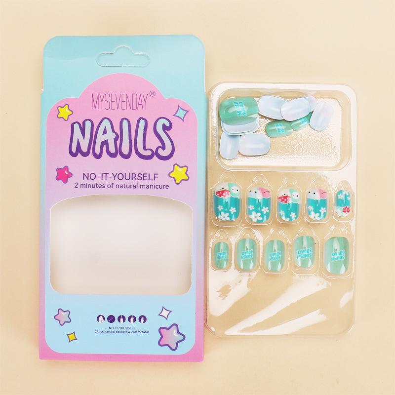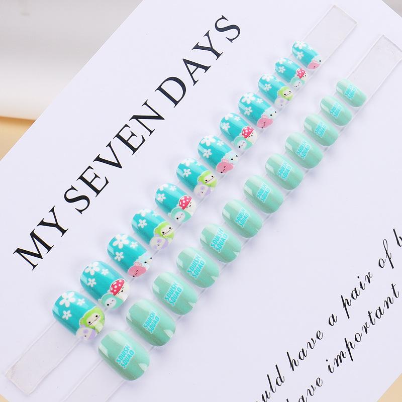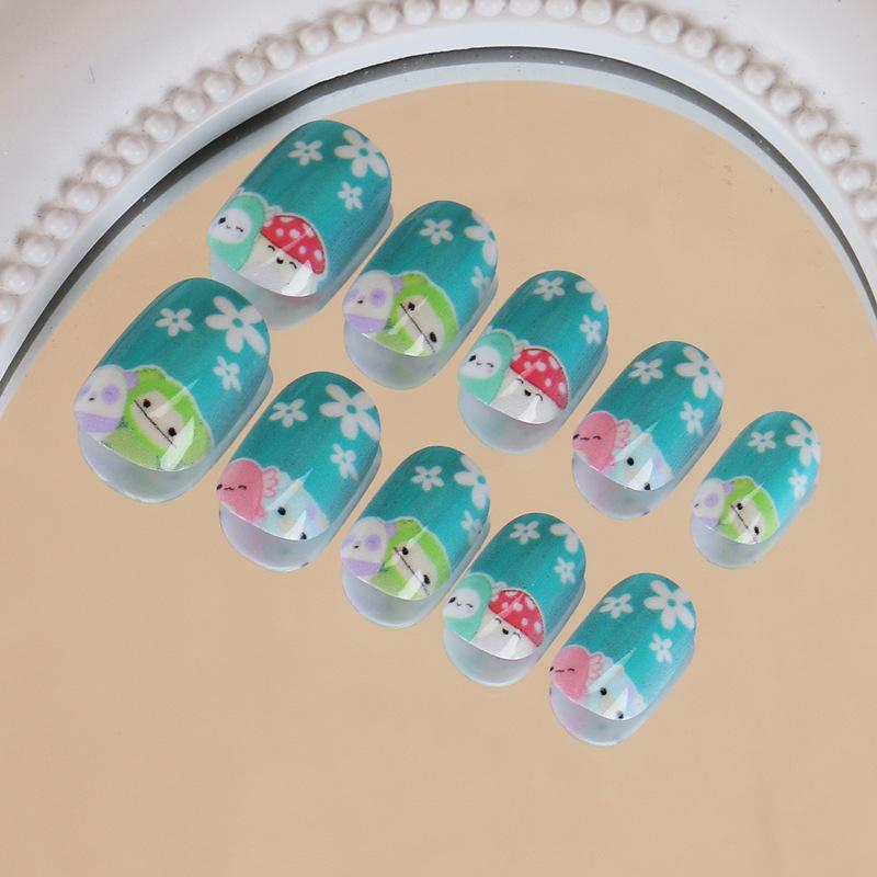 Uñas Postizas para Niños Cortas Redondas Lindas de Dibujos Animados Acabadas 24 Piezas Parche de Uñas Postizas Removibles para Niñas