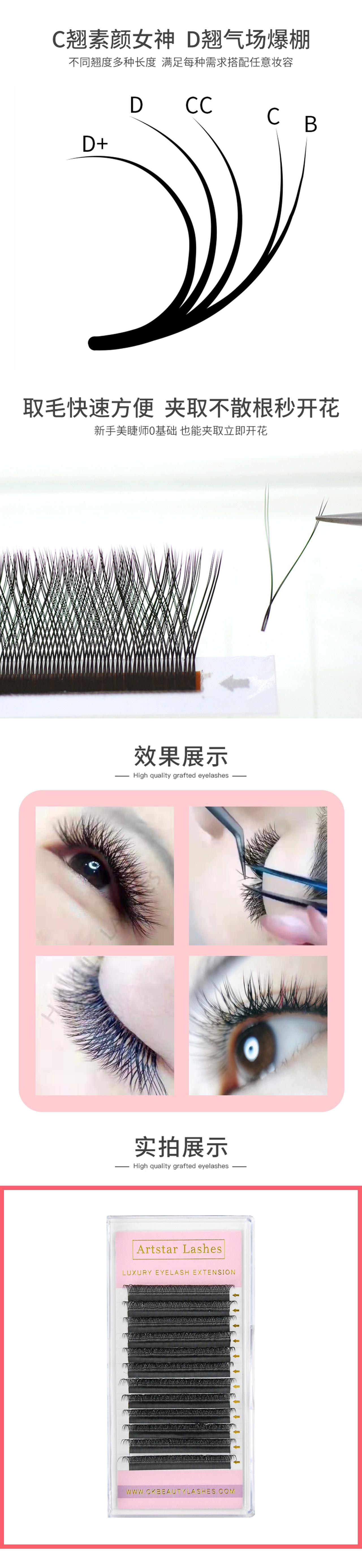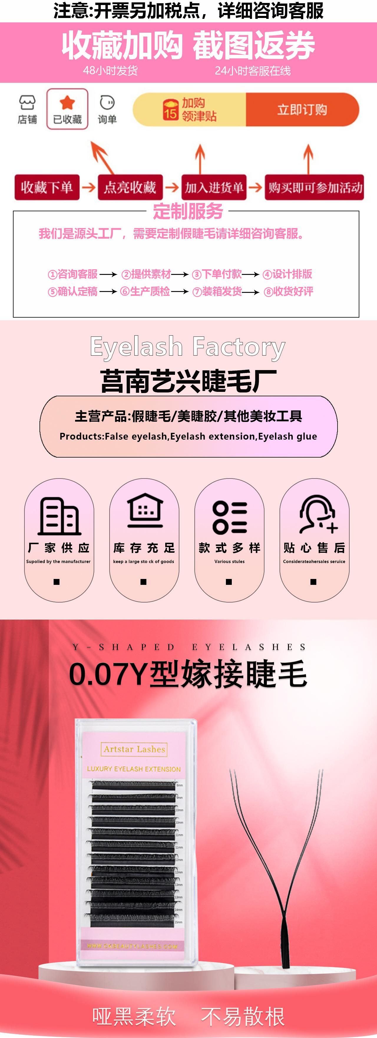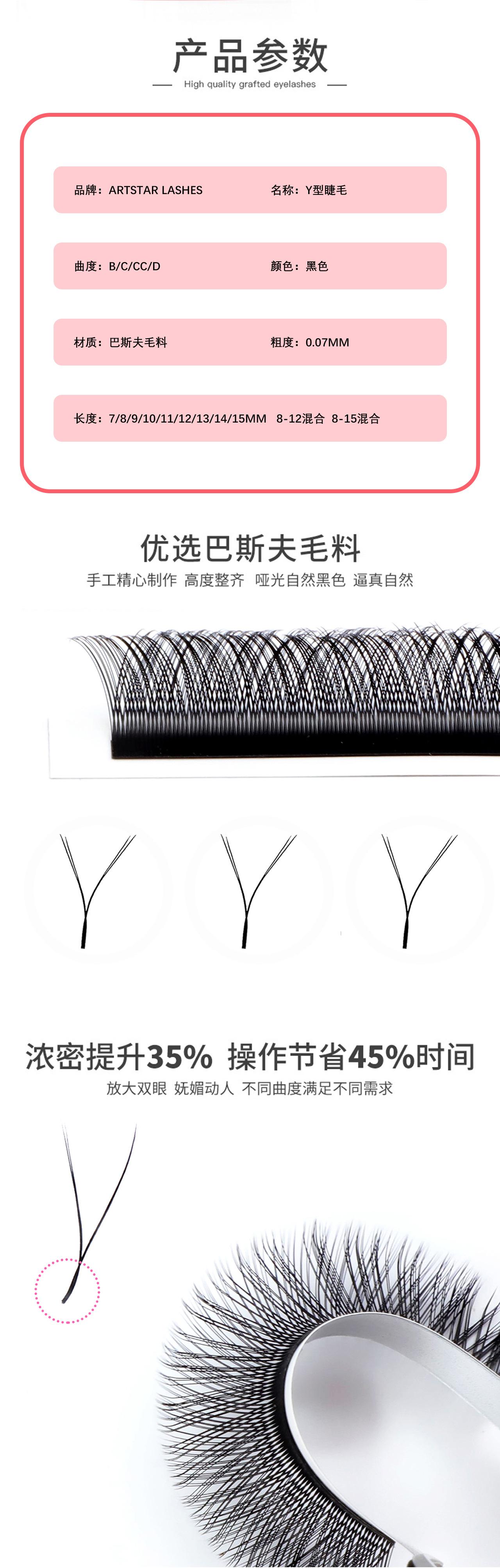 Pestañas postizas Yy de 0,07 pulgadas, suaves, ligeras, sin raíz, negras mate, en forma de Y