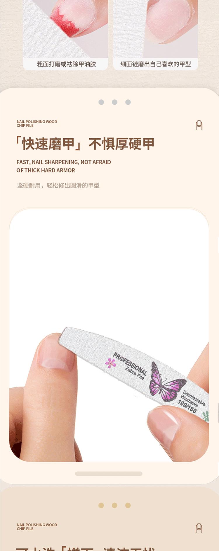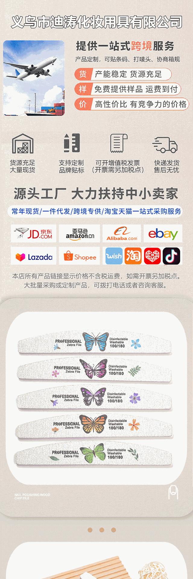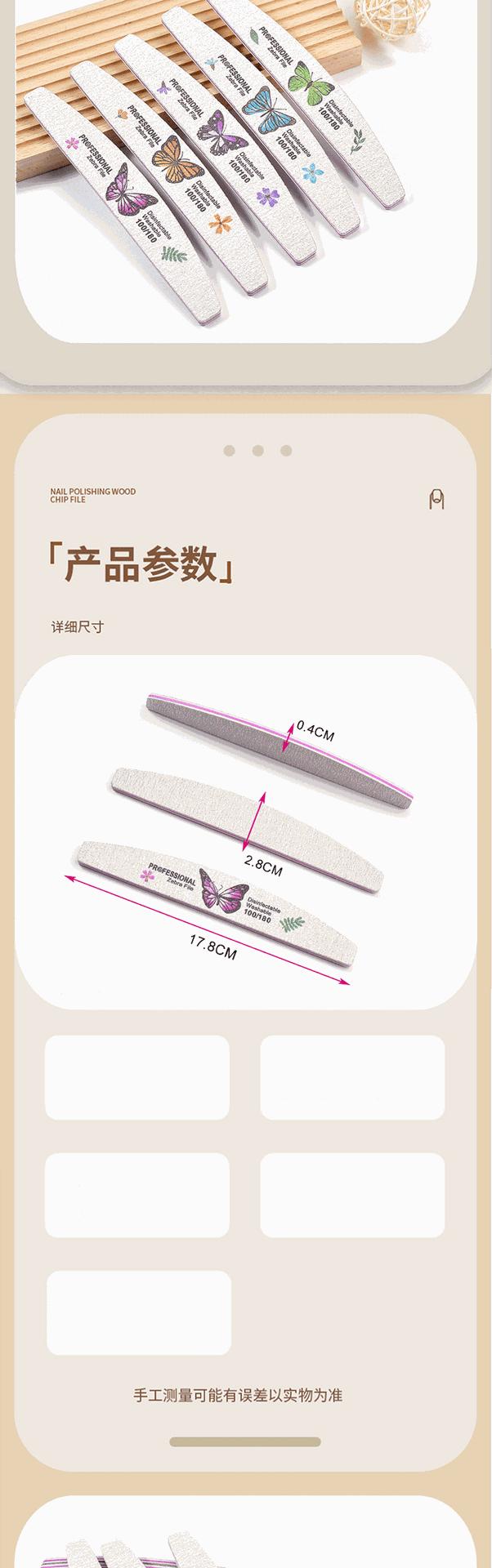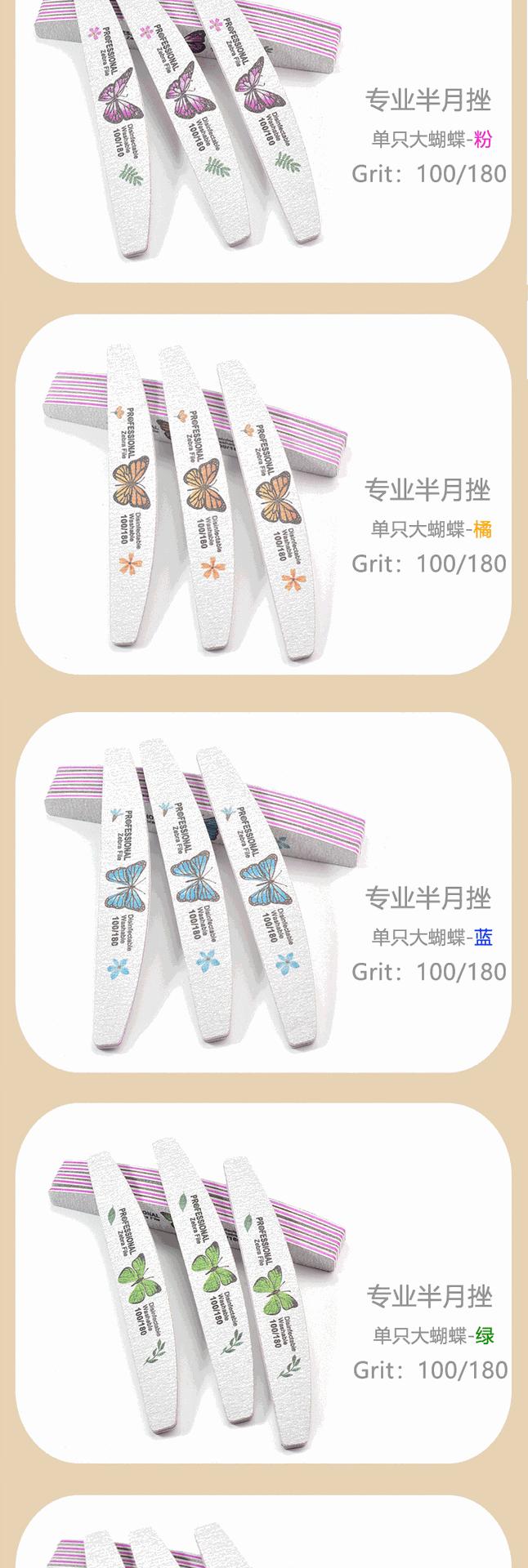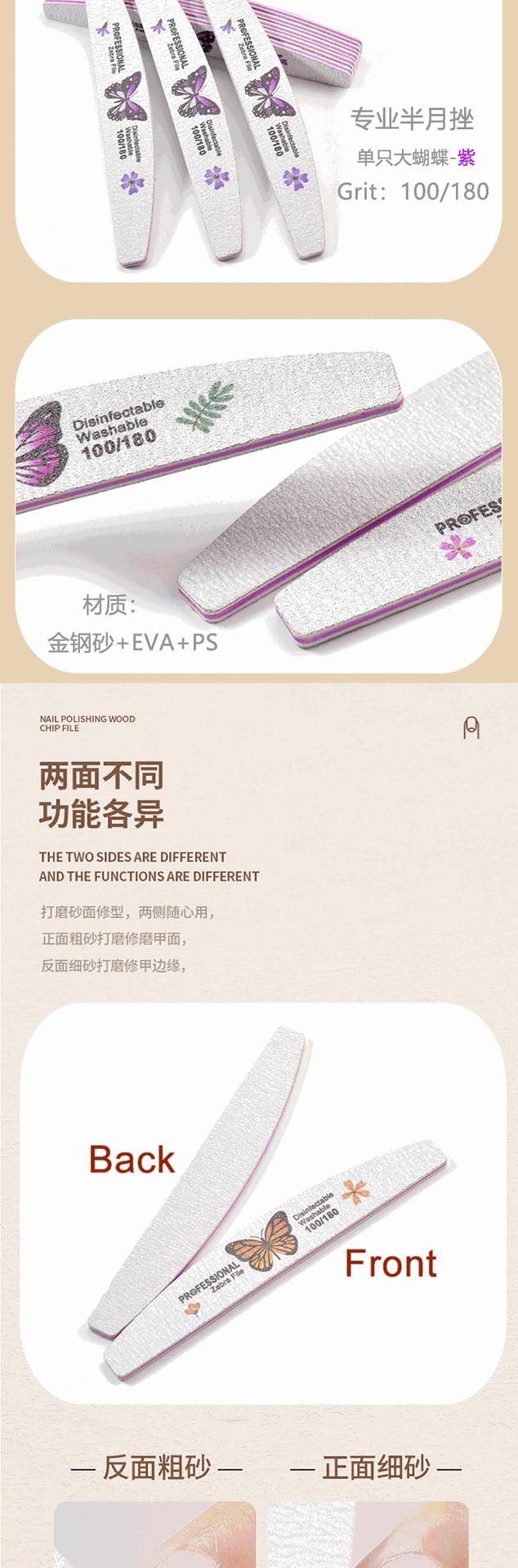 Lima de uñas con forma de mariposa transfronteriza, impresión de recorte, media luna, lavado de uñas real, herramientas resistentes al desgaste, tira de pulido de uñas al por mayor