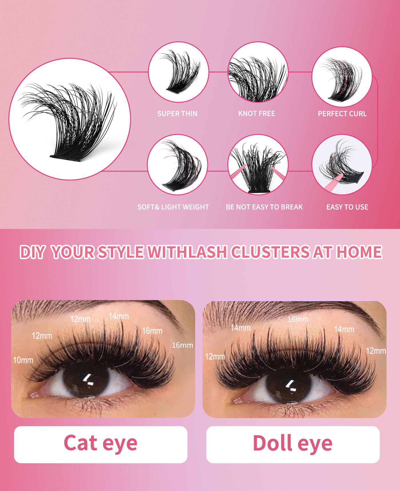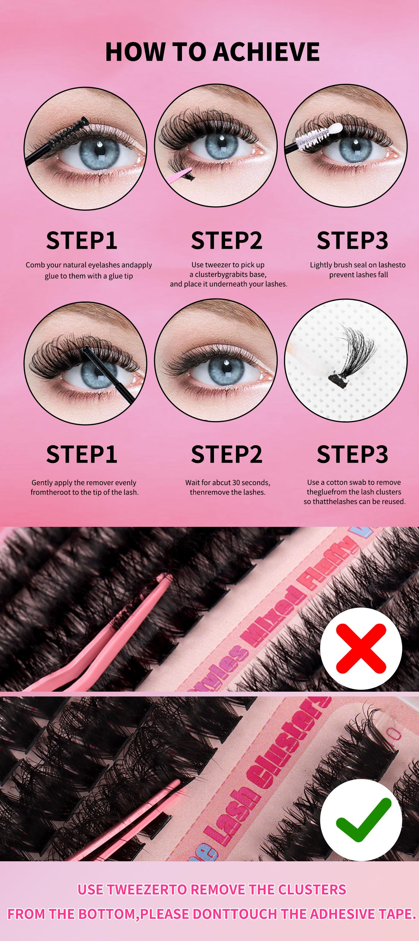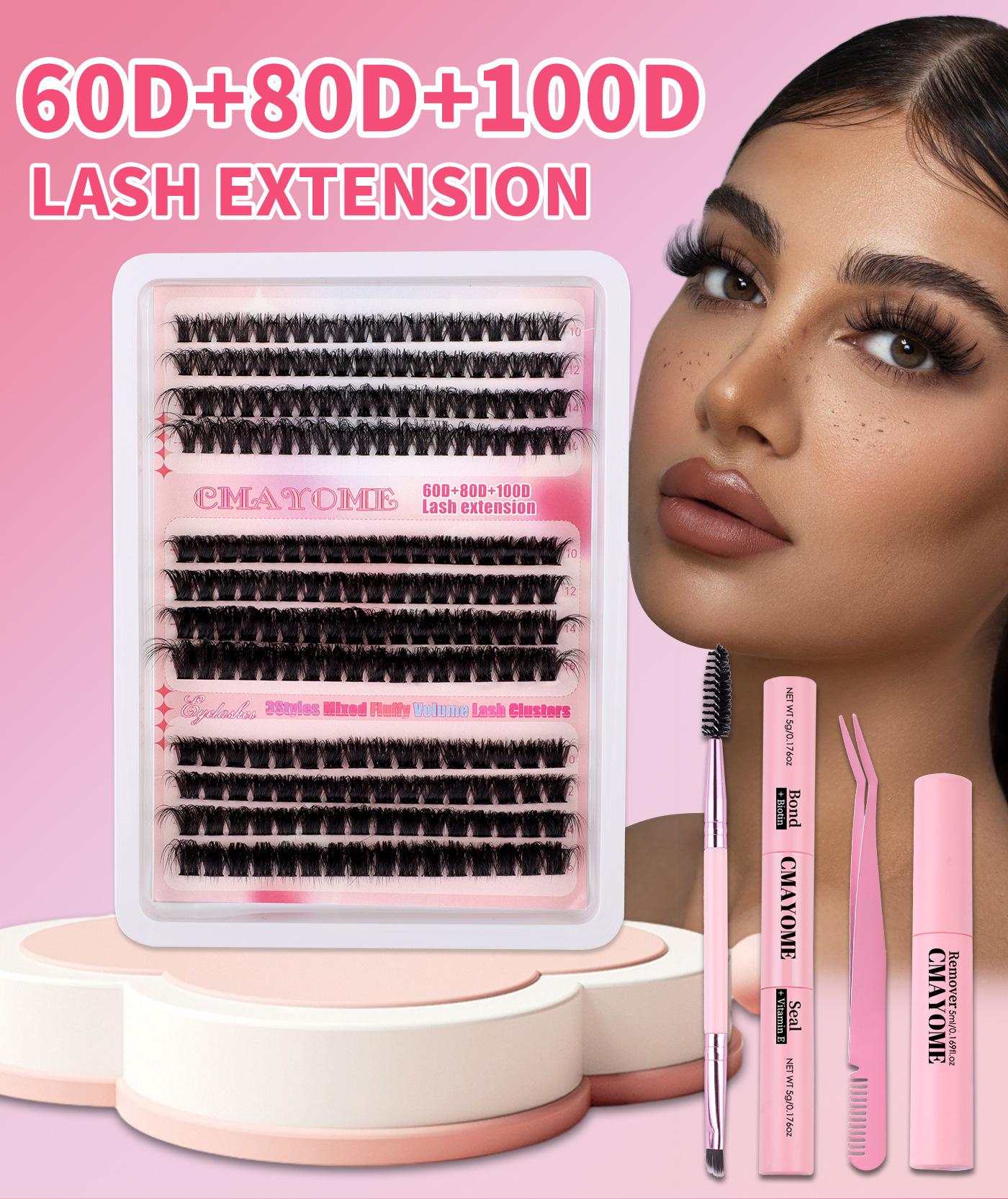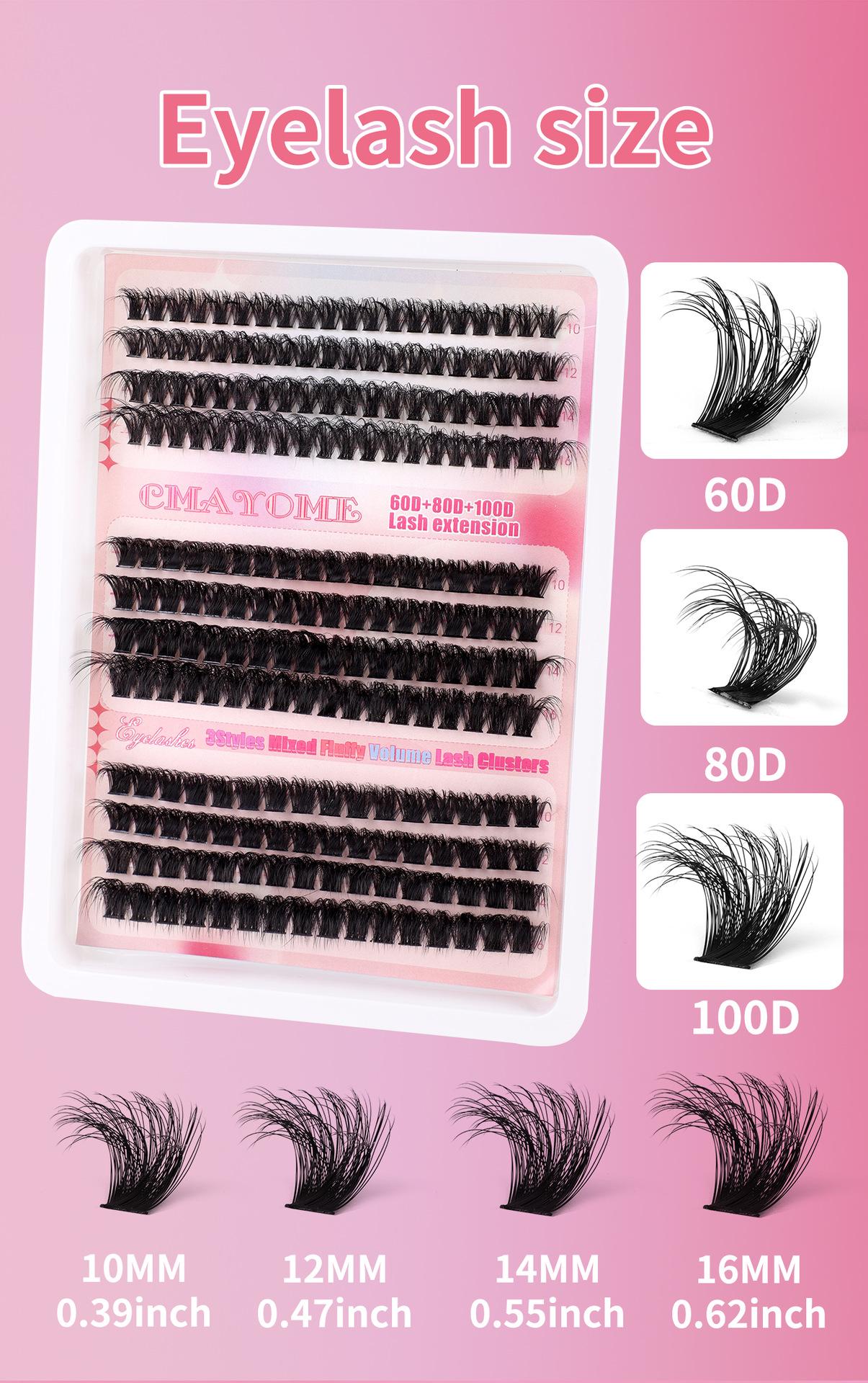Pestañas postizas DIY transfronterizas de un solo grupo de cabello grueso 60D 80D 100D pestañas postizas con herramienta de pegamento adecuado