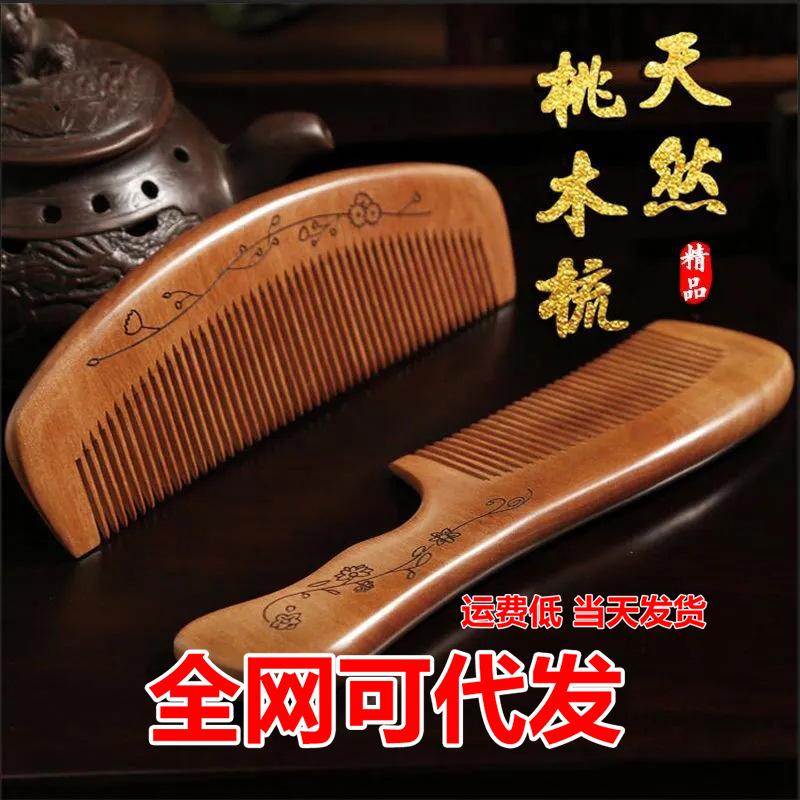 Peine de madera de melocotón natural para el hogar, electrostático, para la caída del cabello, de sándalo auténtico, para hombres y mujeres.