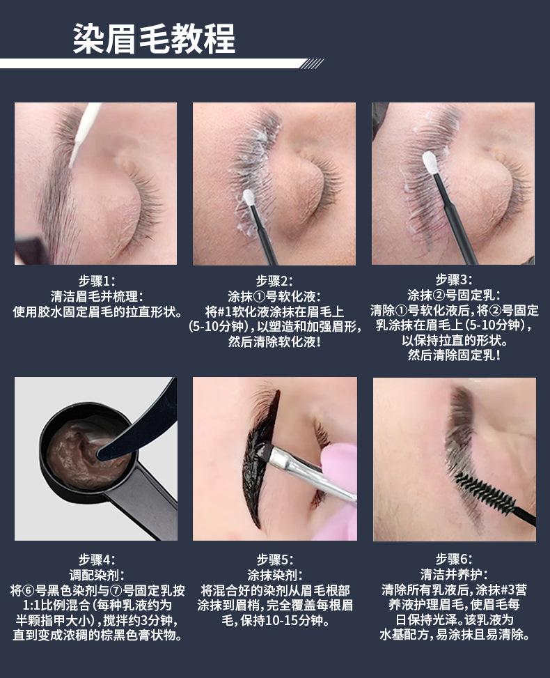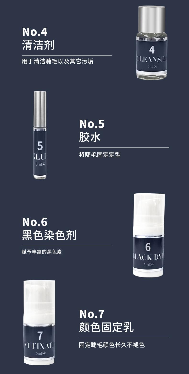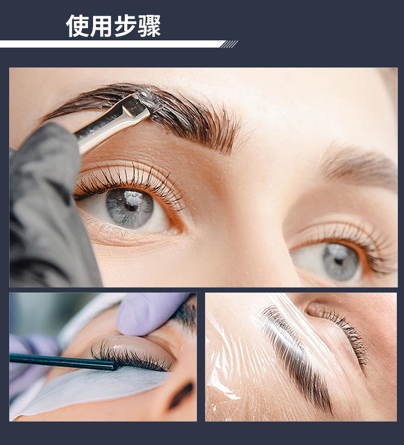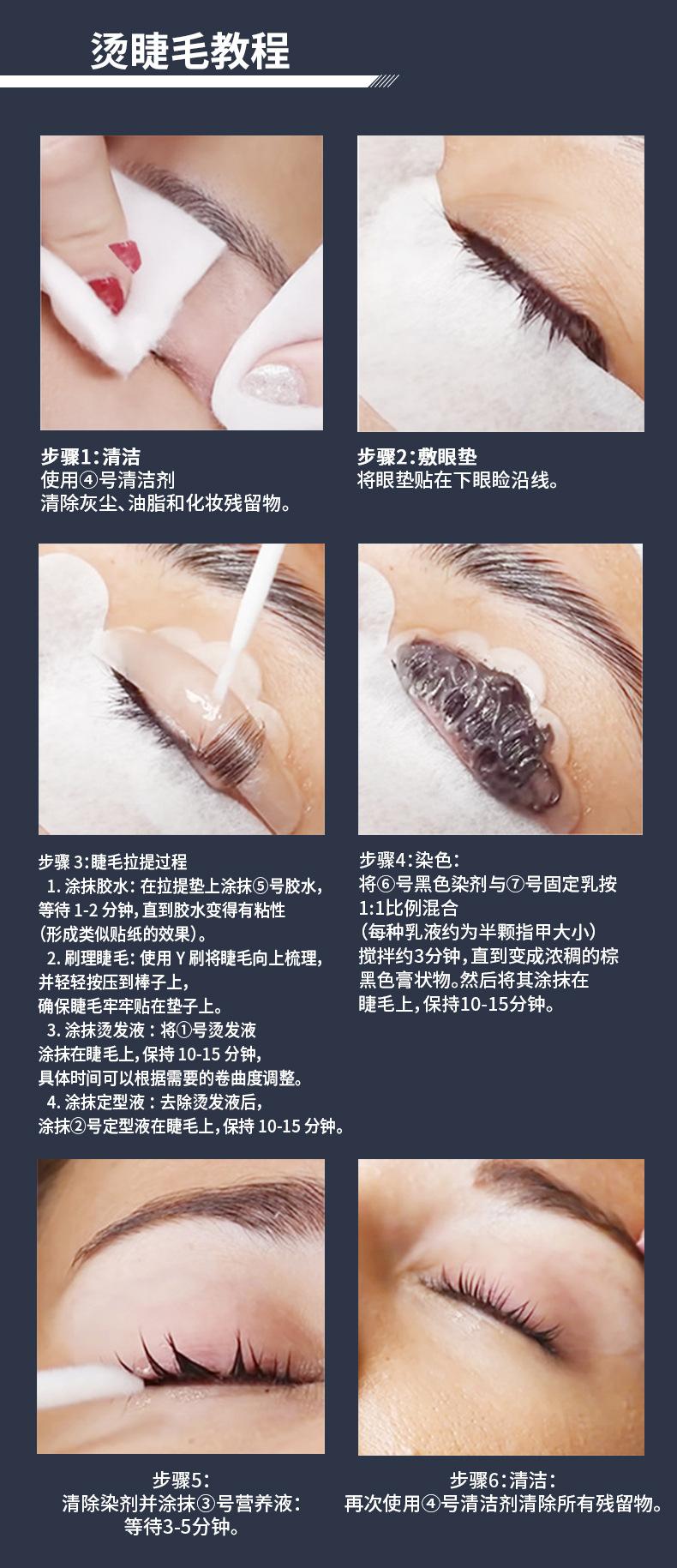 quedó.4. Aplique el pegamento en las pestañas para que se adhieran a las almohadillas de lifting durante 1 minuto.5. Use la loción de permanente 1 en las pestañas y luego cubra sus ojos con un envoltorio de plástico (Tiempo de permanente: 10-12 minutos)