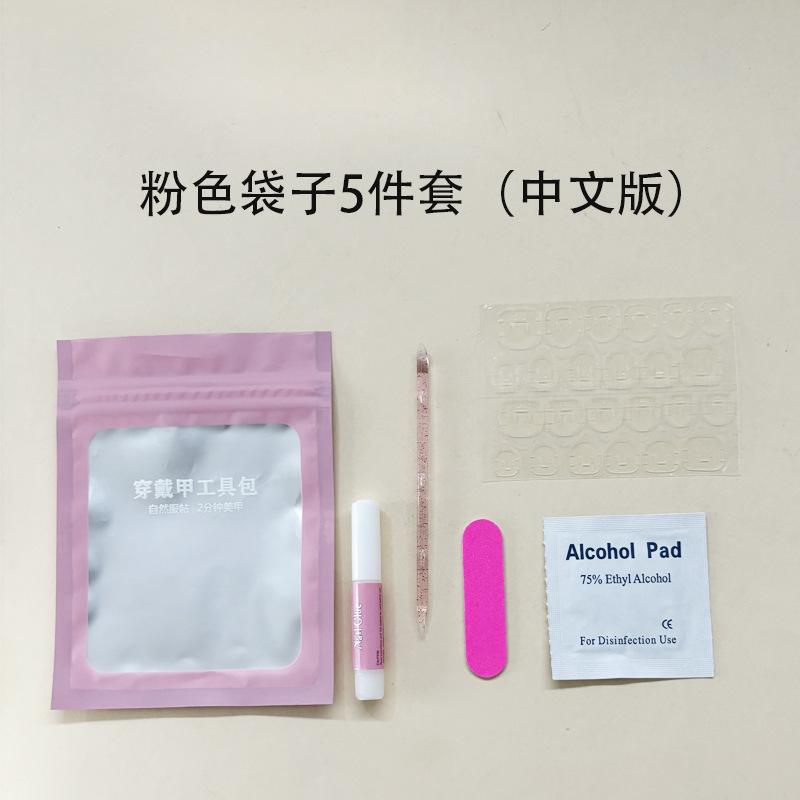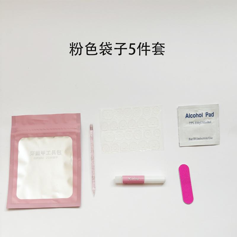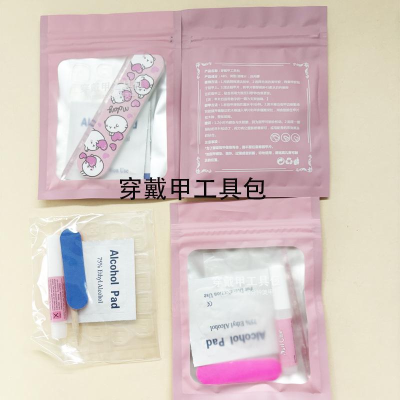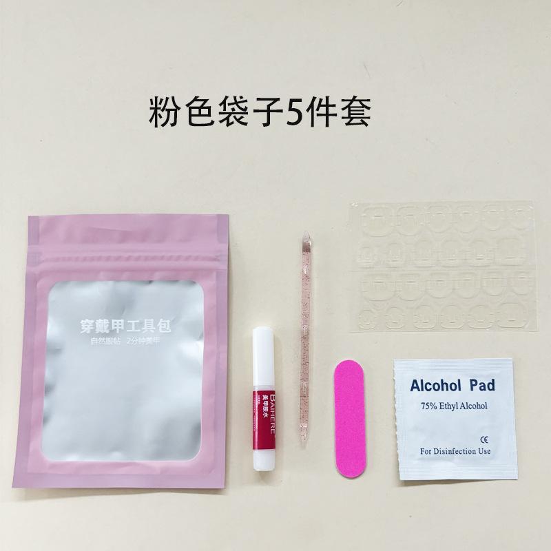 Kit de manicura con accesorios para manicura, pegamento de doble cara, lima de uñas, alcohol y algodón.