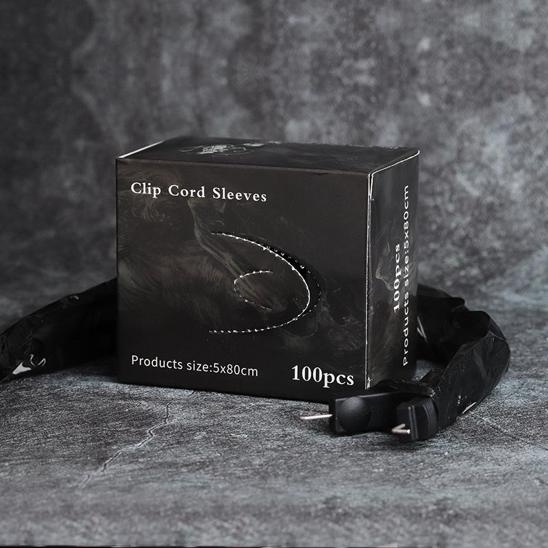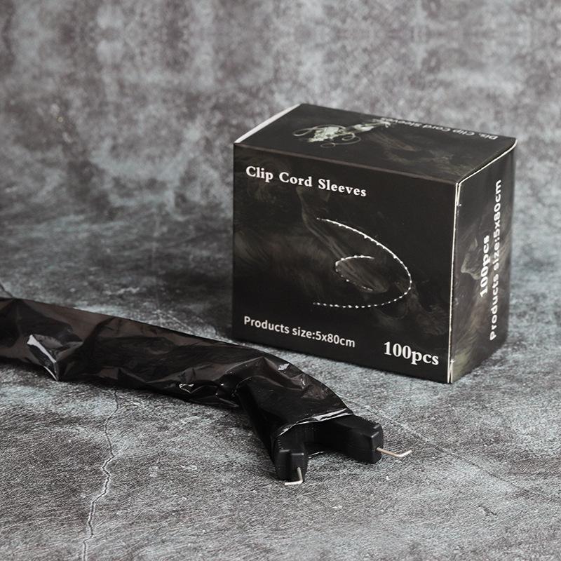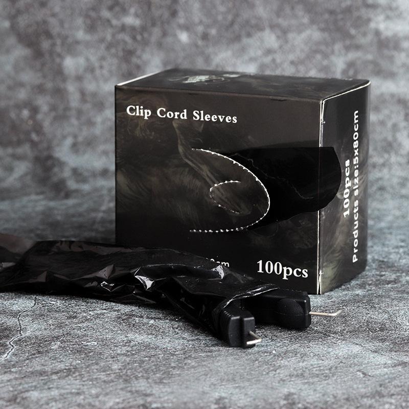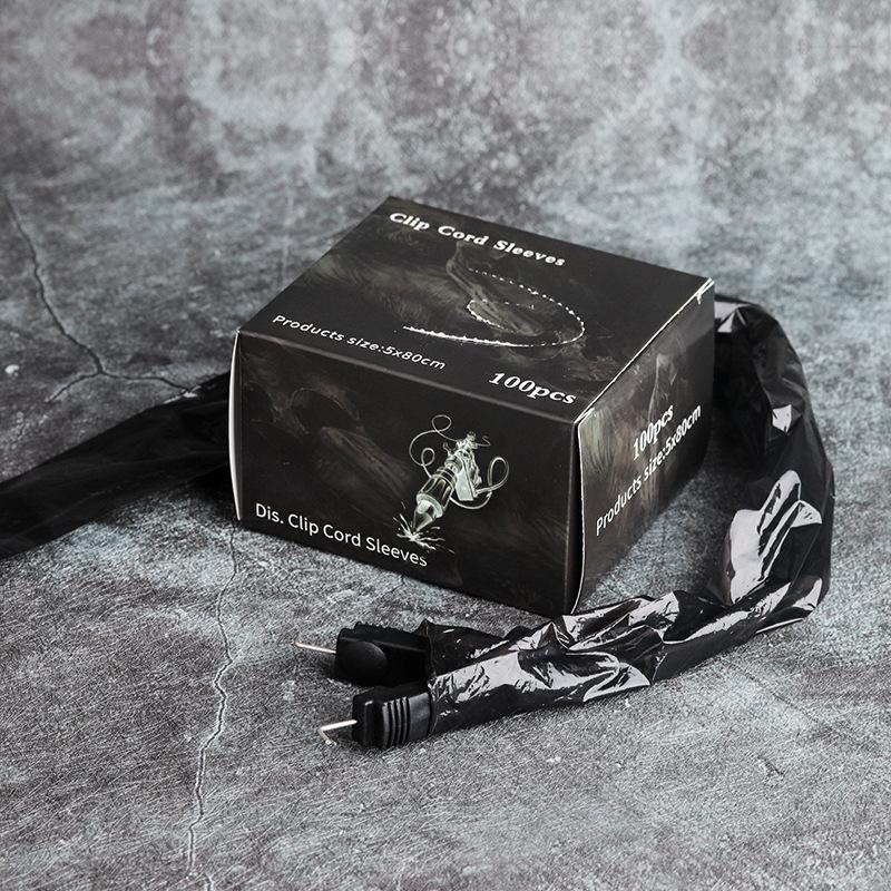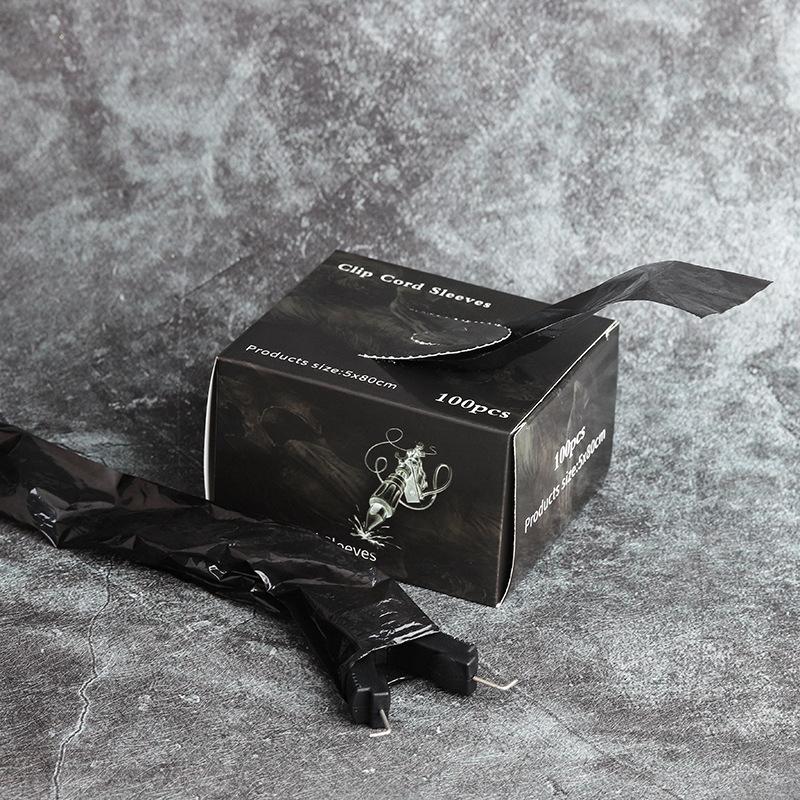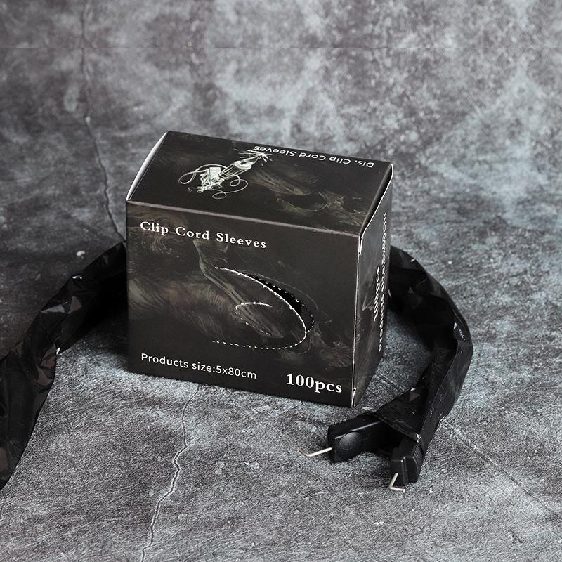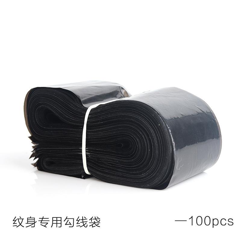 Bolsa de hilo de gancho para tatuaje negro, juego de hilo de gancho desechable, paquete de 100, suministros de limpieza para tatuajes, suministros auxiliares para tatuajes