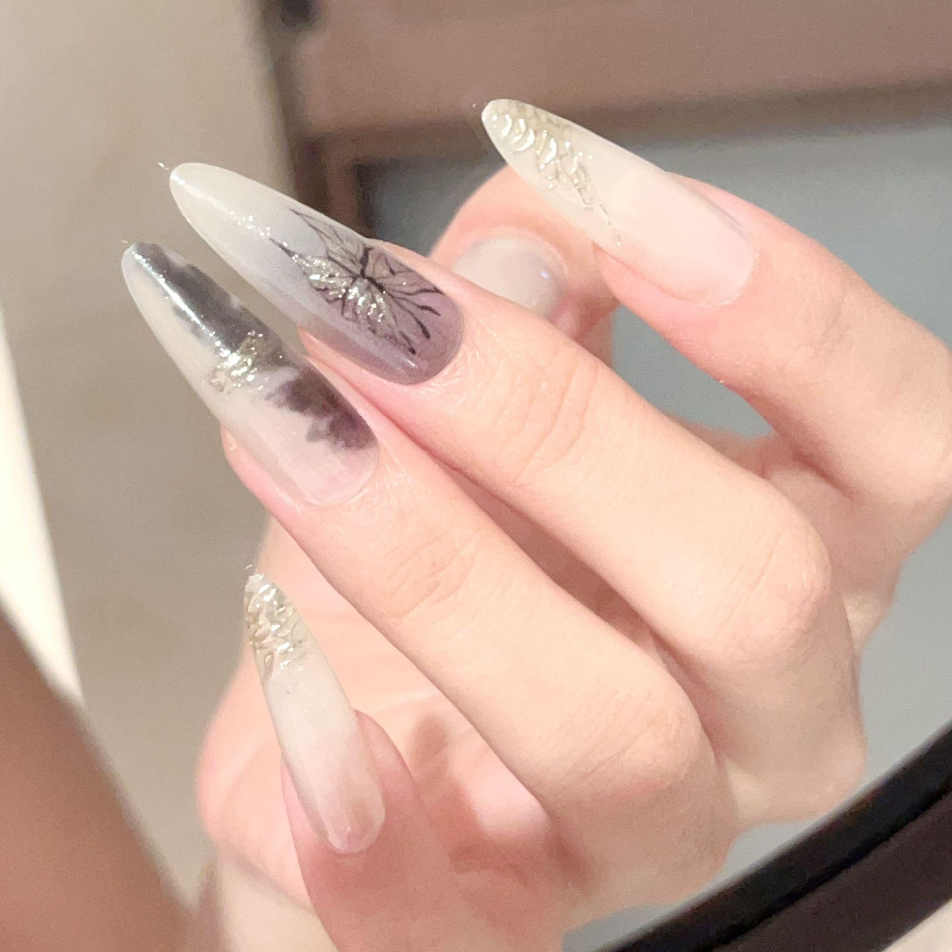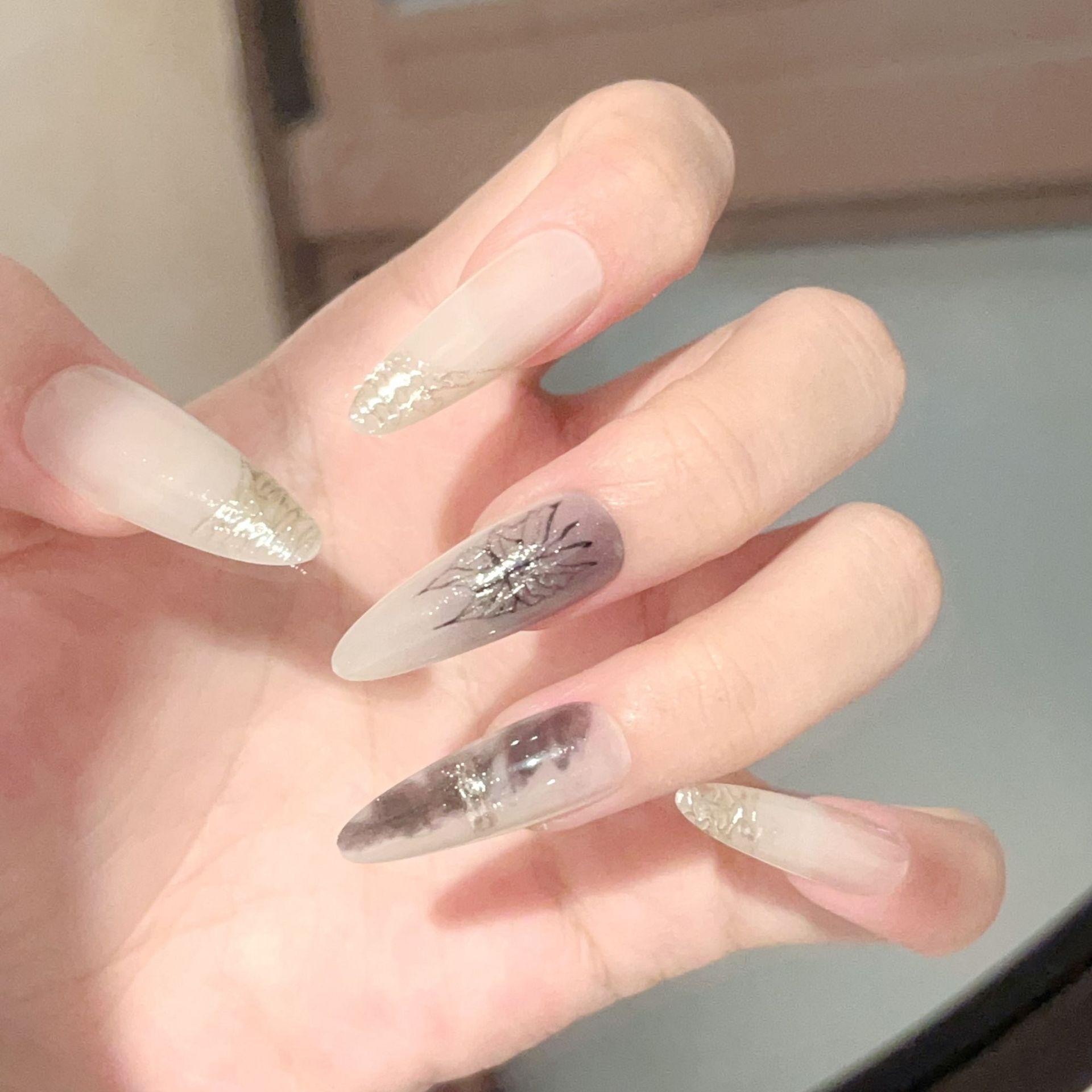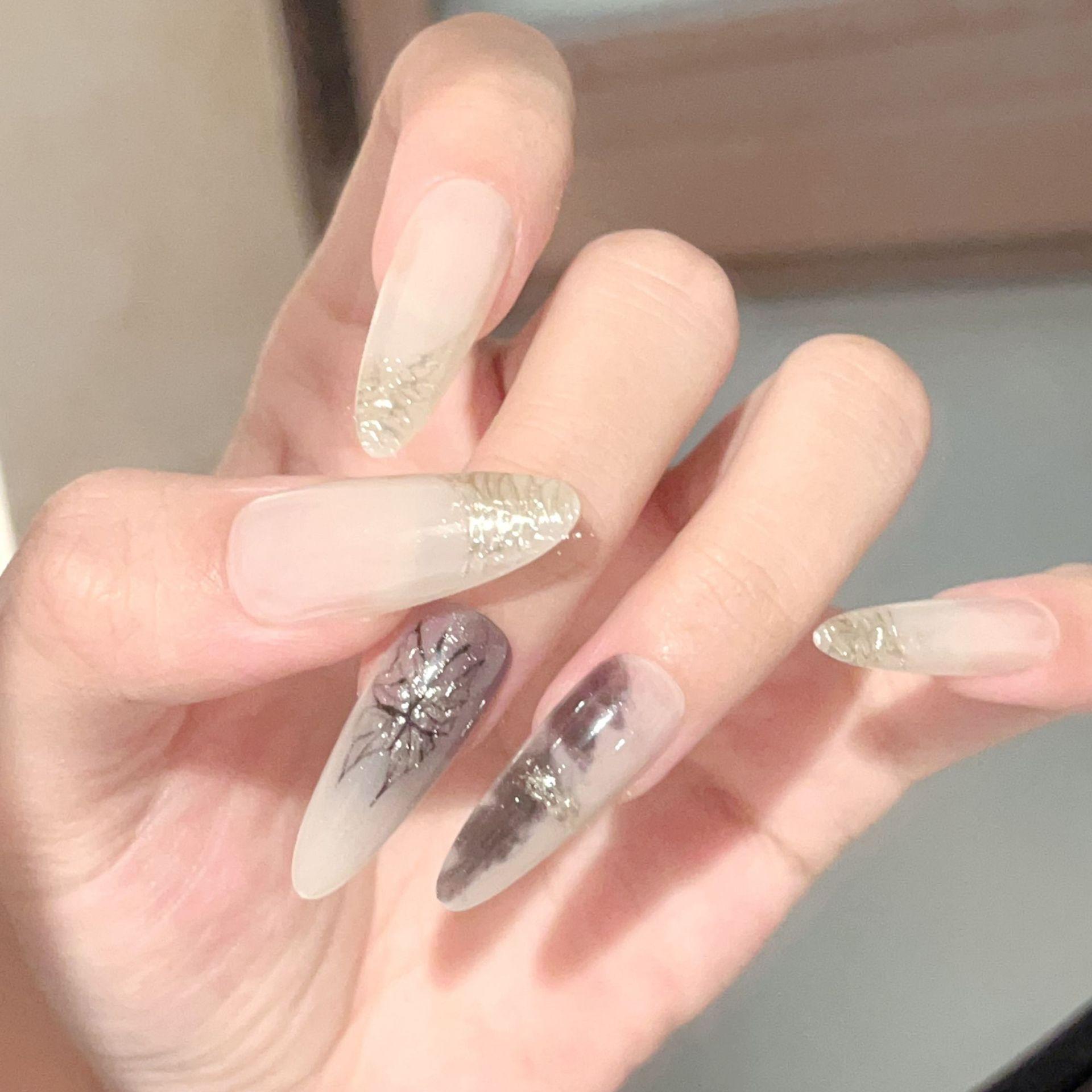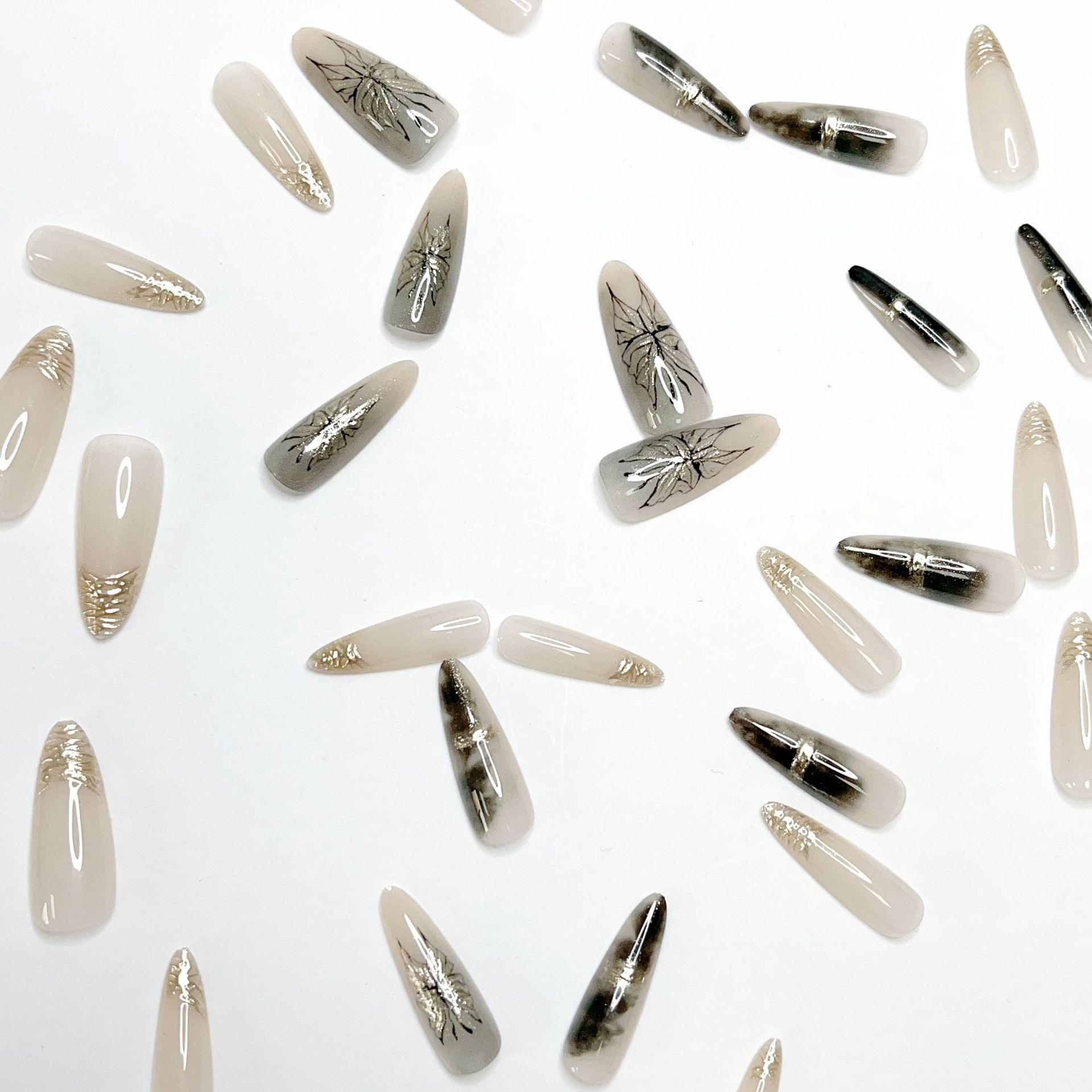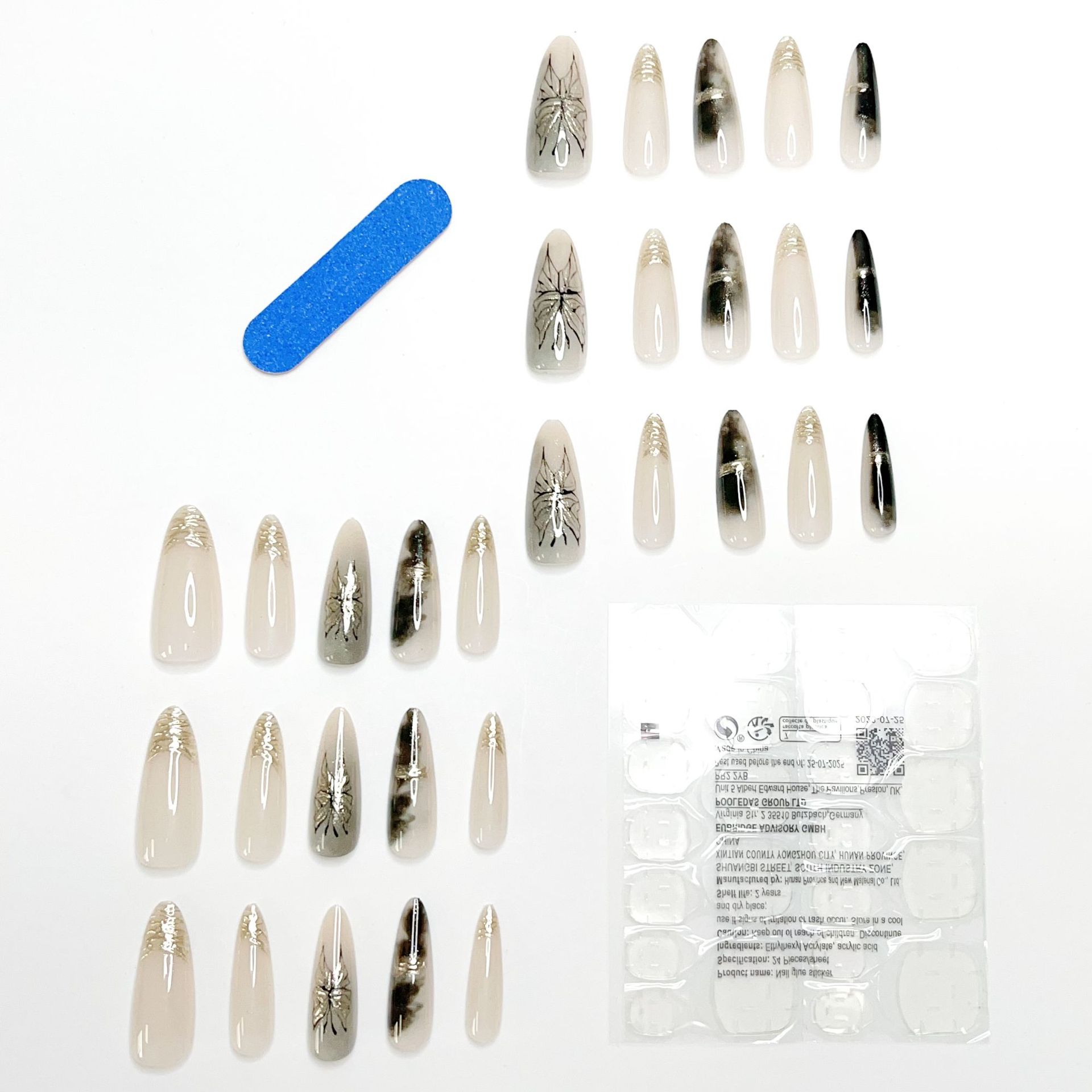Use Nail Art Parche de mariposa para uñas con diseño de almendras largas, dorado y negro