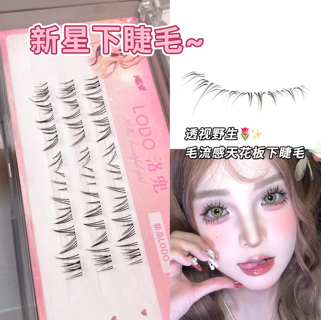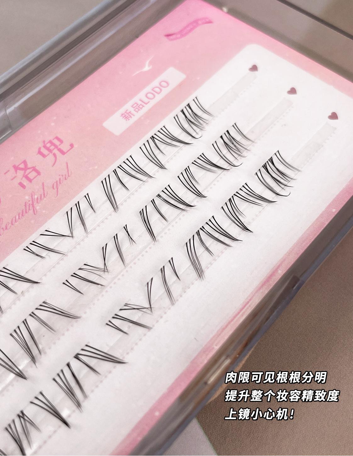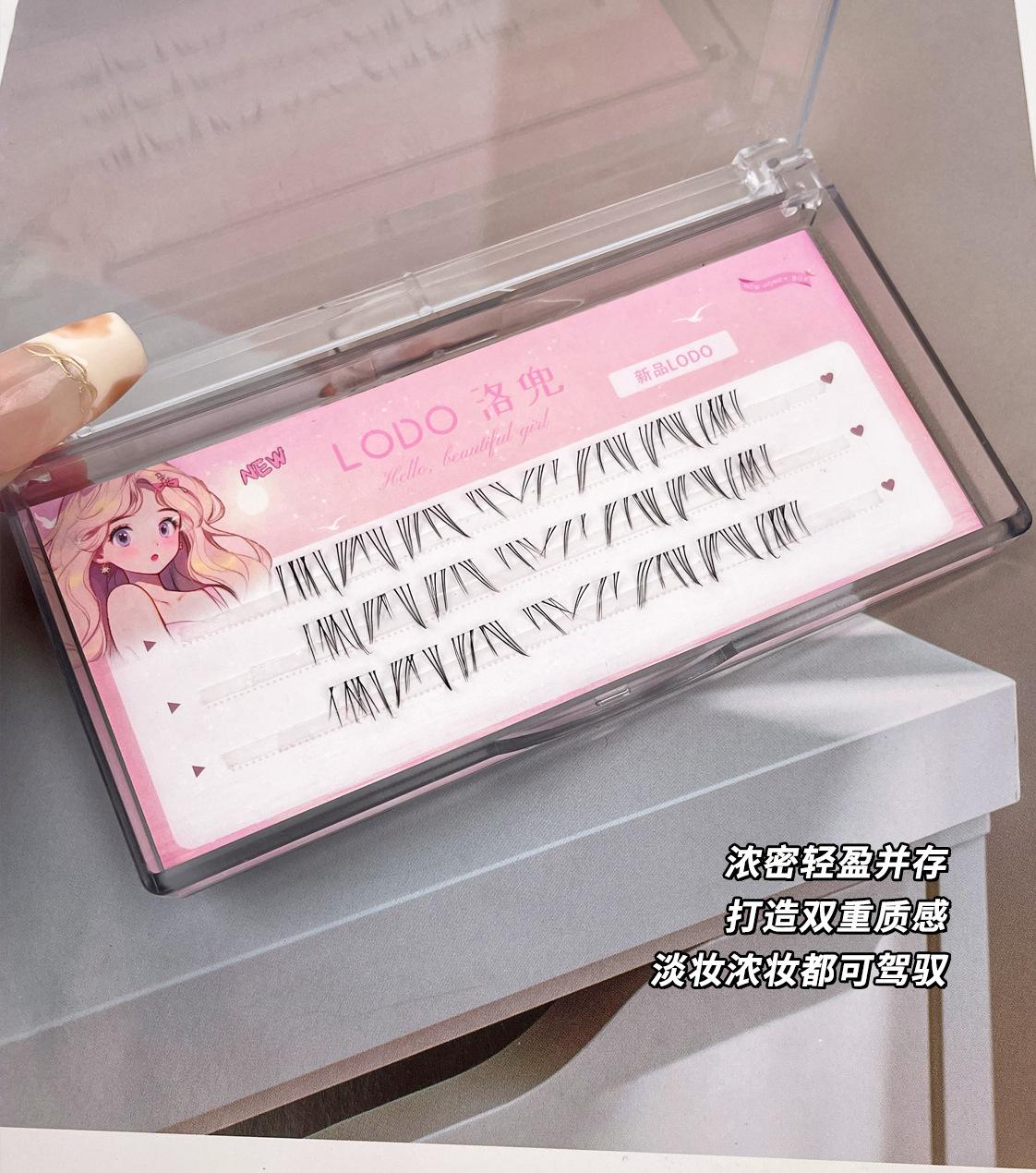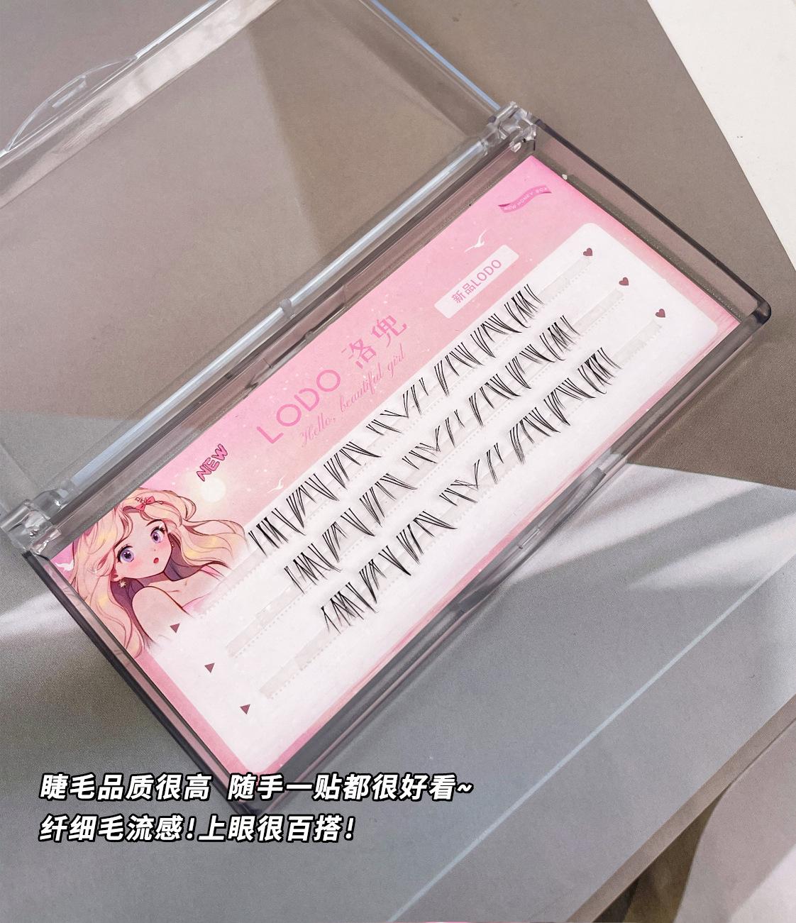 Pestañas postizas transparentes de tres filas con destellos, naturales, de Barbie, de dibujos animados, con un solo grupo, pestañas segmentadas de simulación para estudiantes.