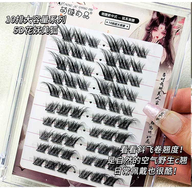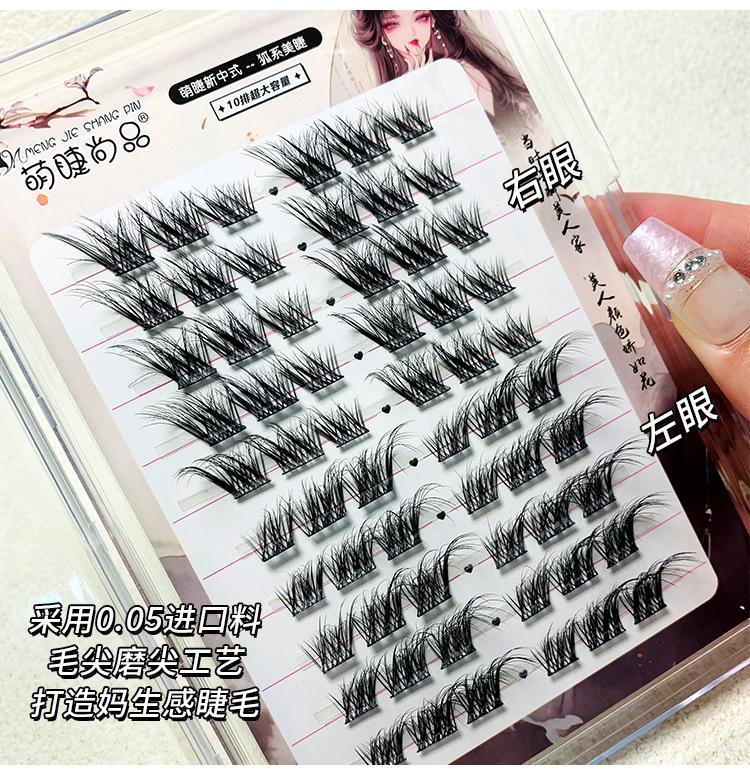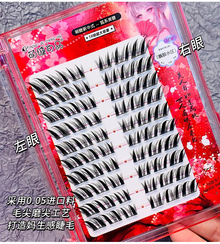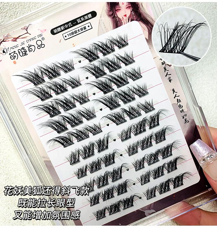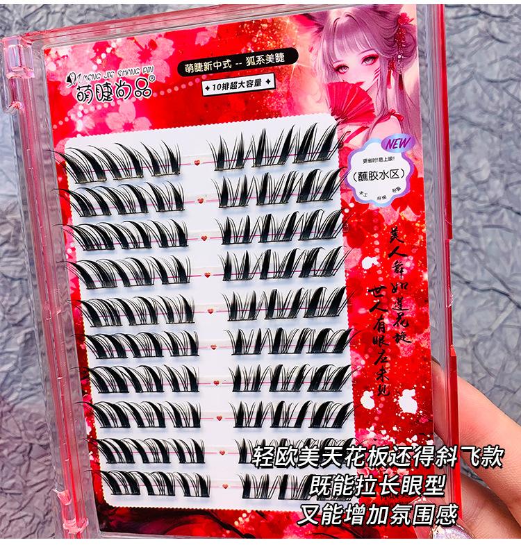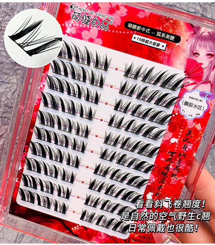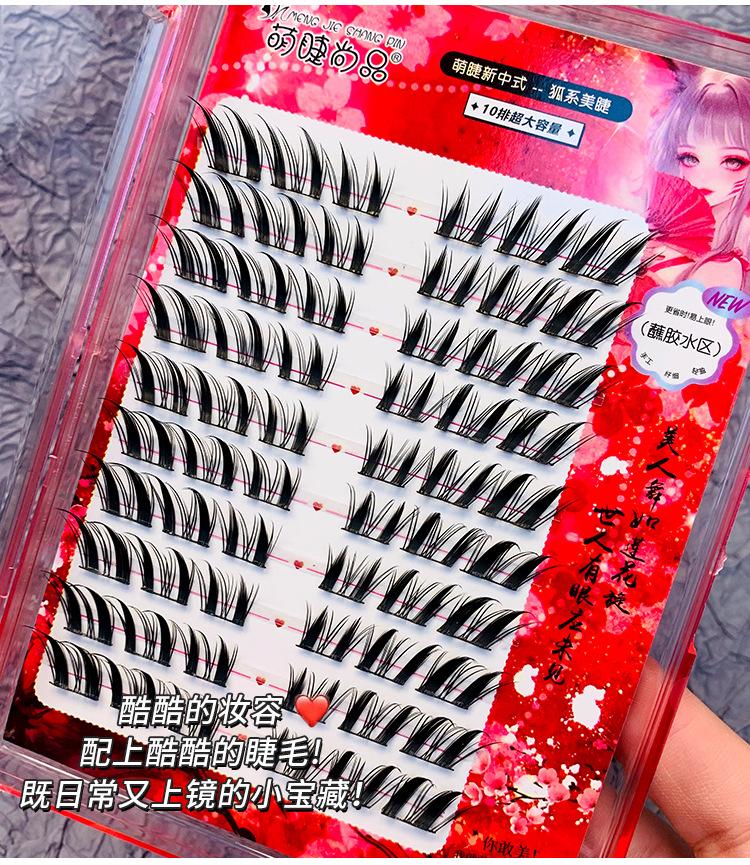 Pestañas postizas estilo zorro chino, gruesas, de un solo grupo, Su Daji, para principiantes perezosos, con espejo segmentado.