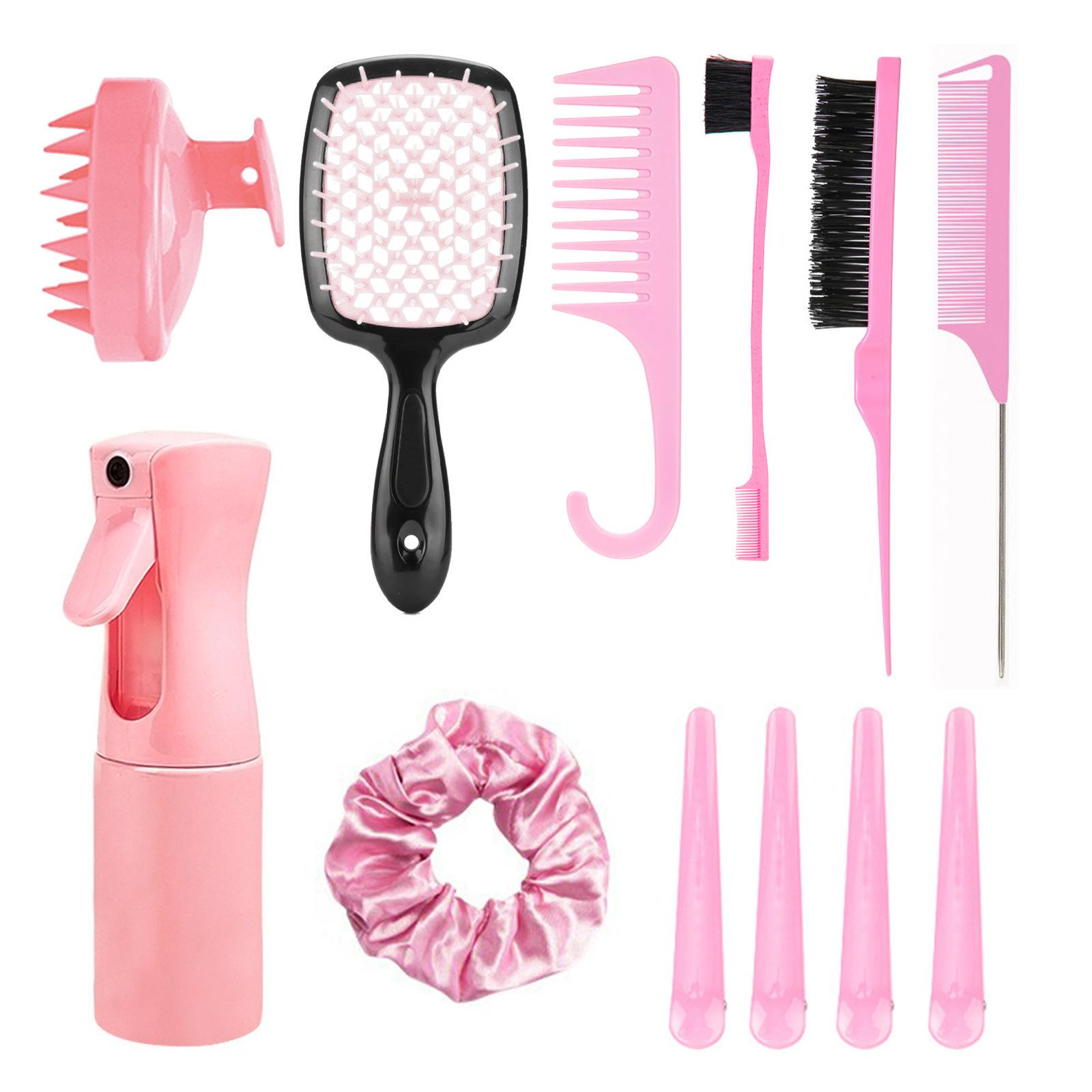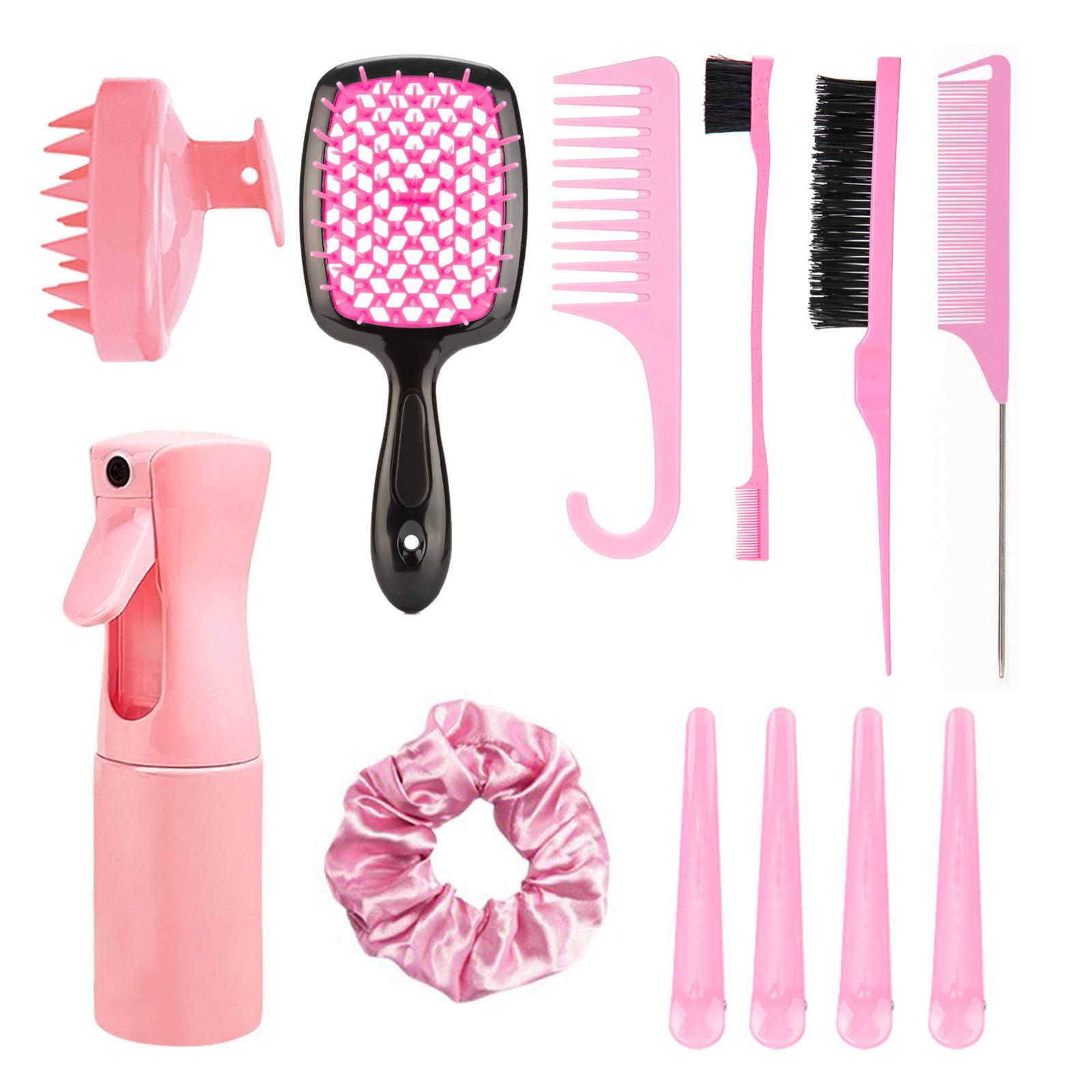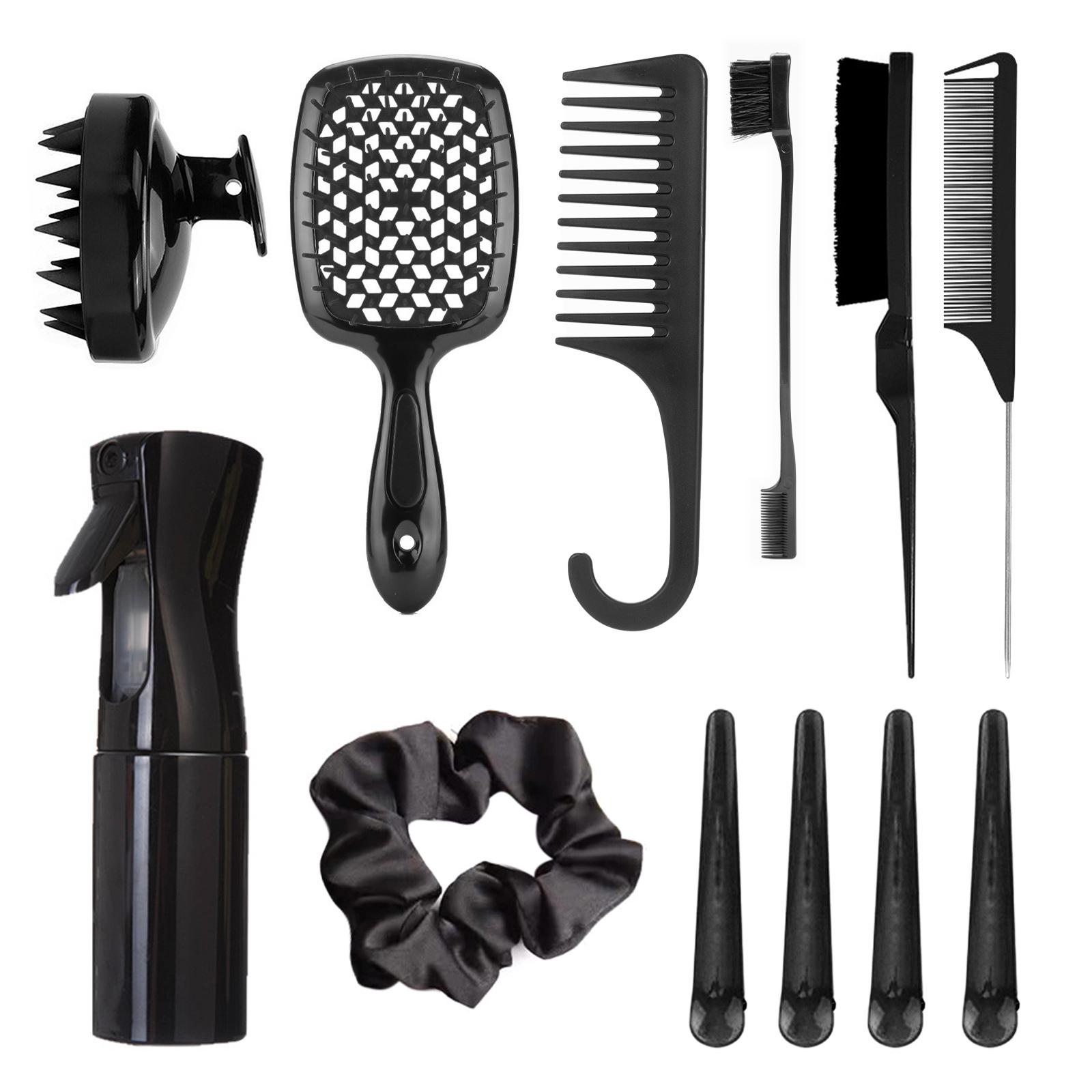 Juego de 12 peines de Amazon para el cabello, para peluquería, para el hogar, con cola de mechas, ideal para peinado, con botella con pulverizador, venta al por mayor.