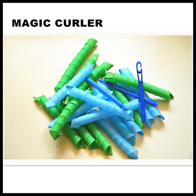 Cantidad por juego: 18 rizadores de pelo, 9 azul cielo, 9 verde hierba, con un juego de 4 ganchos para el pelo, longitud 68.5 cm