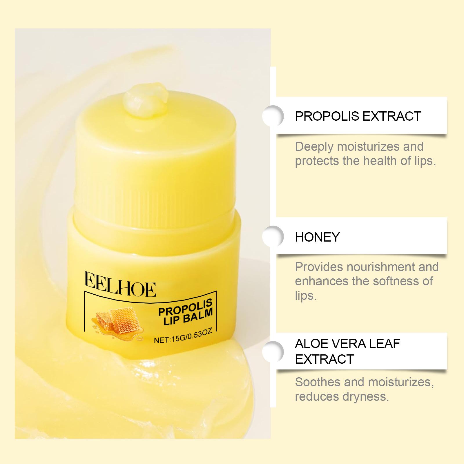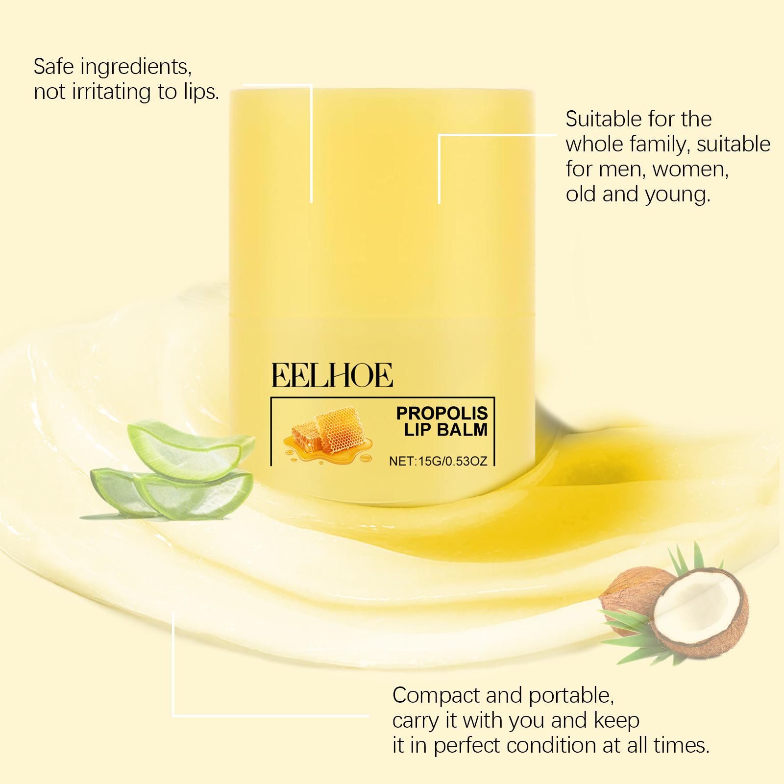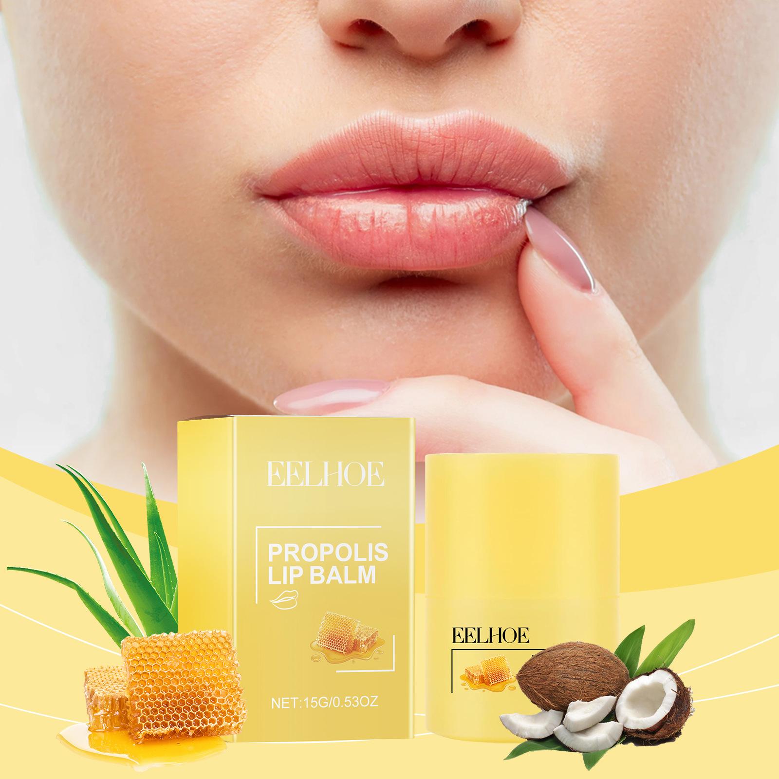 Bálsamo labial hidratante con miel EELHOE que nutre la piel suave de los labios. Bálsamo labial hidratante diario con propóleo.