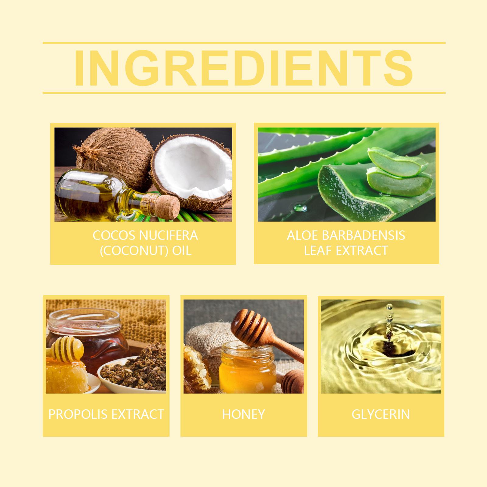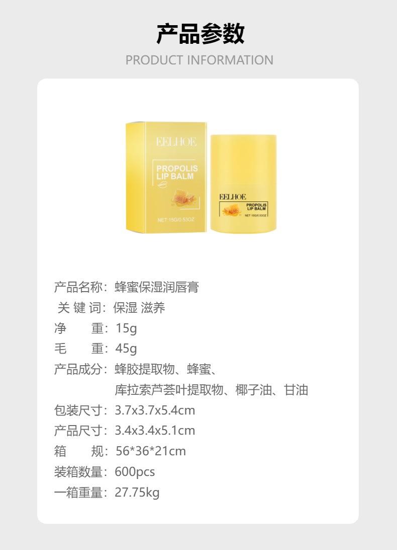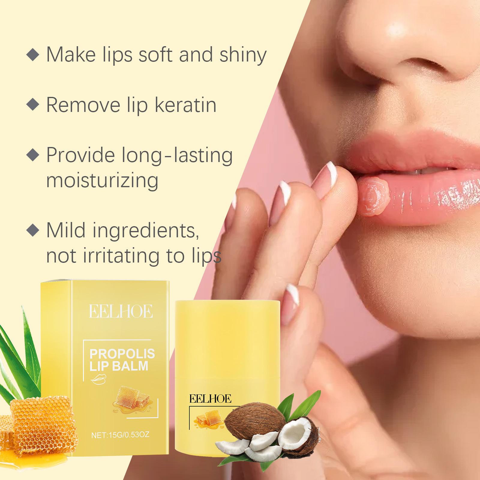 Bálsamo labial hidratante con miel EELHOE que nutre la piel suave de los labios. Bálsamo labial hidratante diario con propóleo.