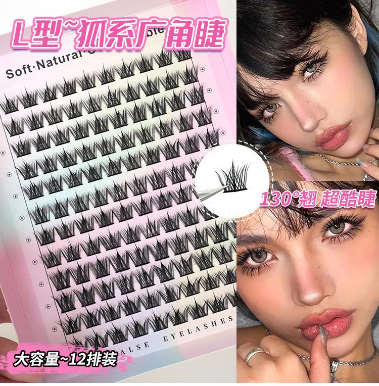 Nicho de cabello de racimo único segmentado mixto tipo L Serie Fox pestañas postizas ligeras europeas y americanas para mujer