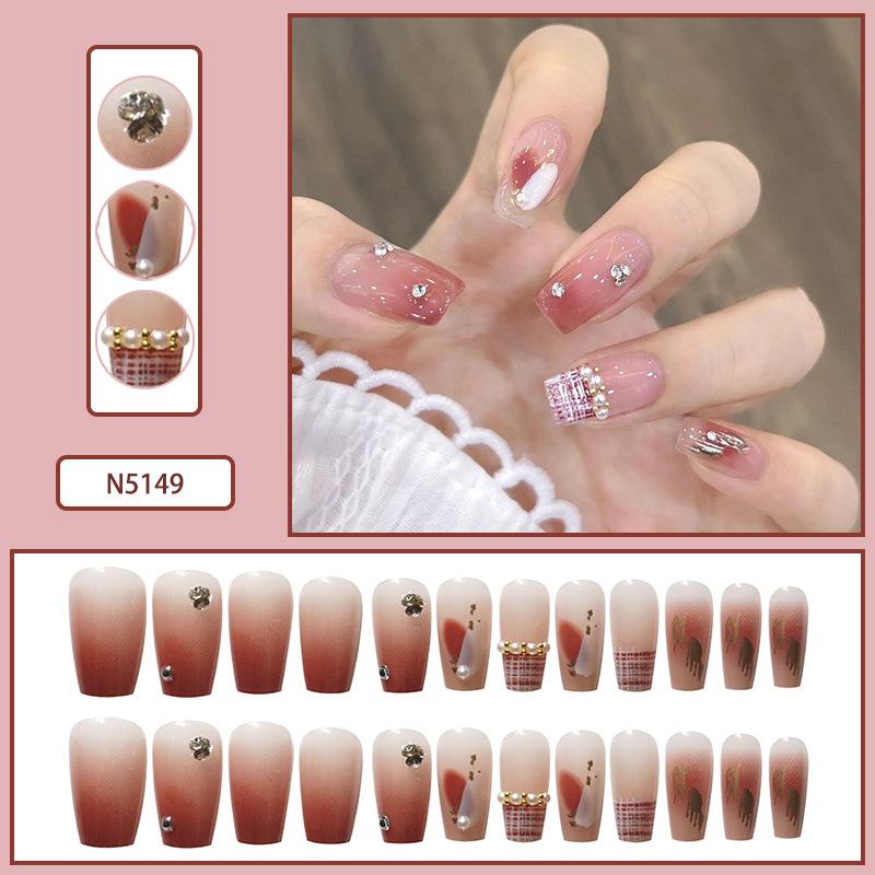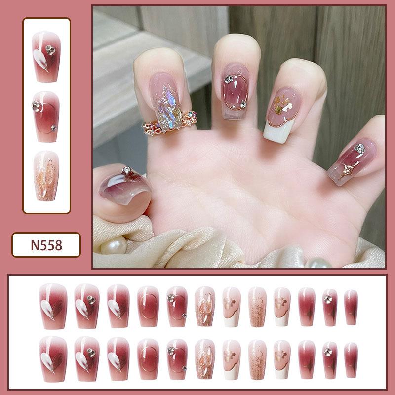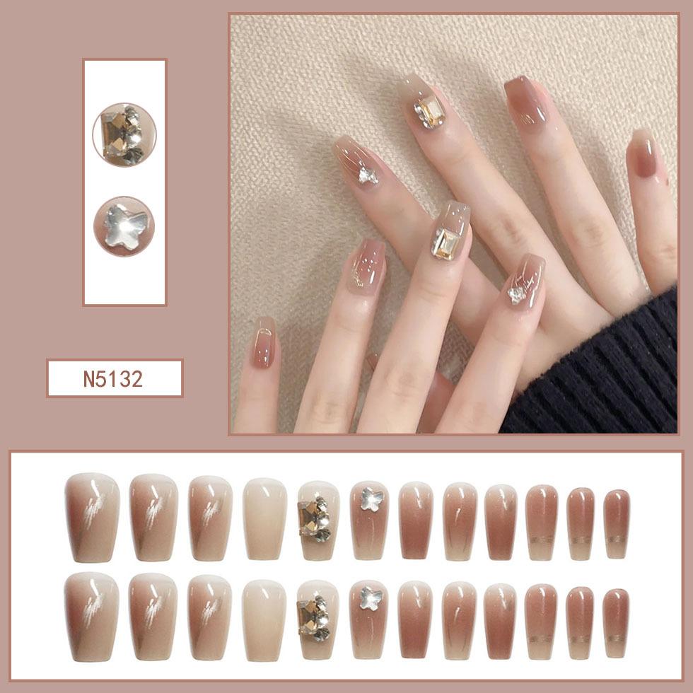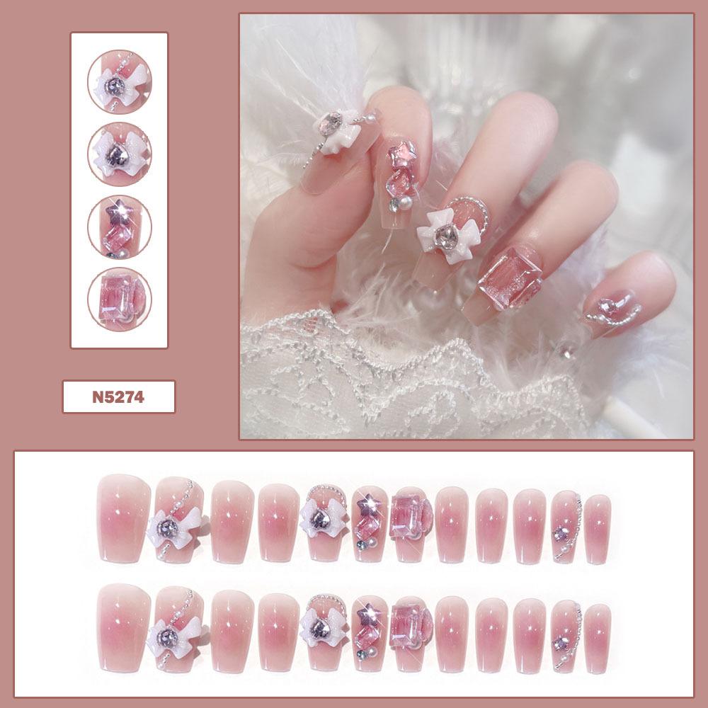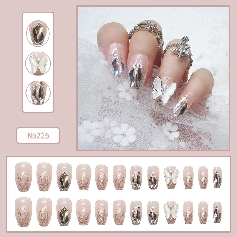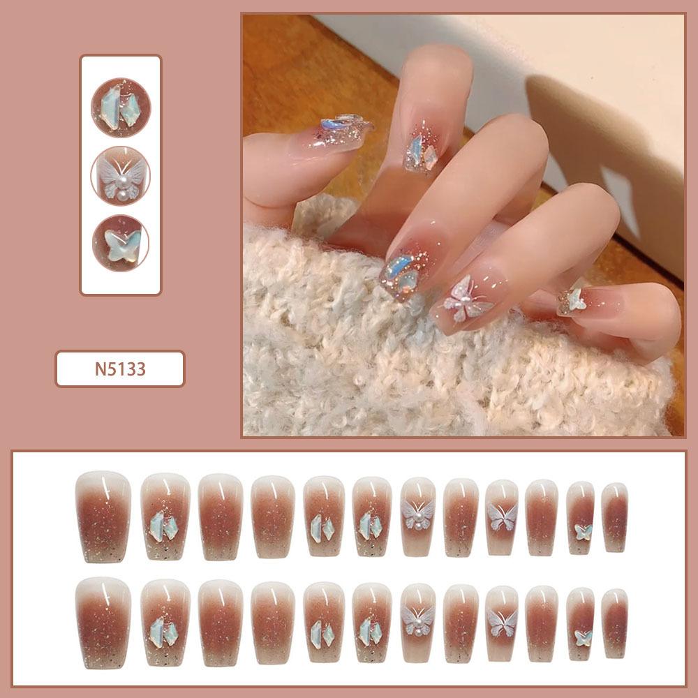 Lindo Hermana Pequeña Japonesa Ropa de Largo Medio Armadura Perla Mariposa Parche de Uñas Desmontable Uñas Postizas Avanzadas Acabadas
