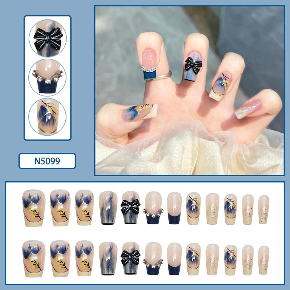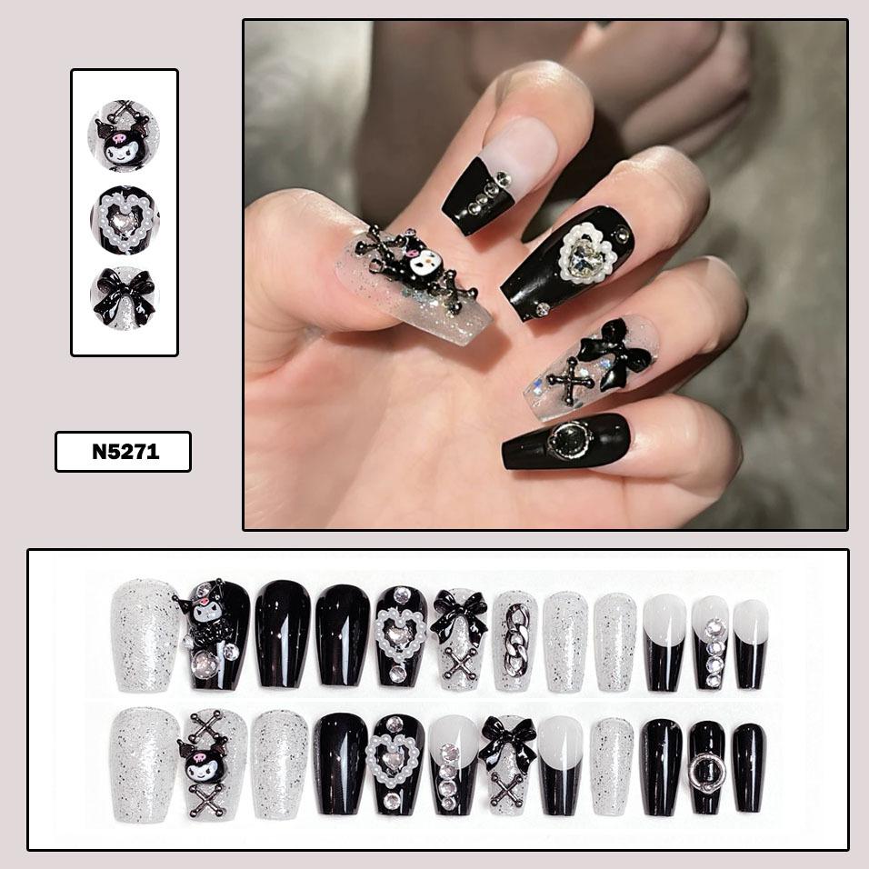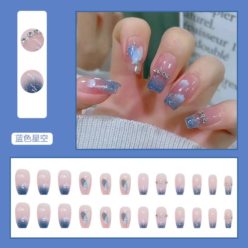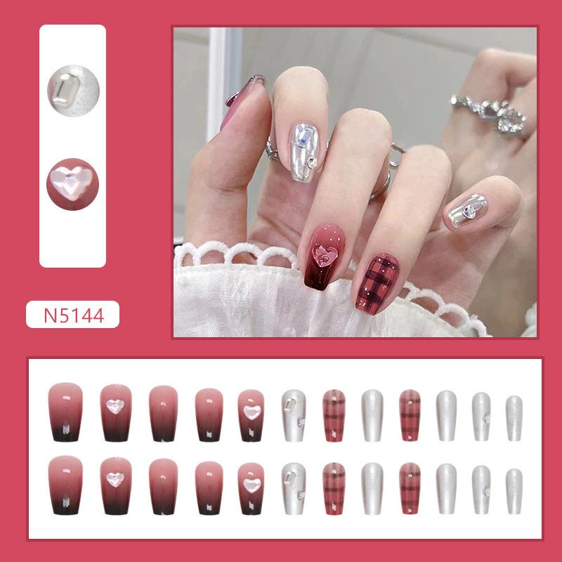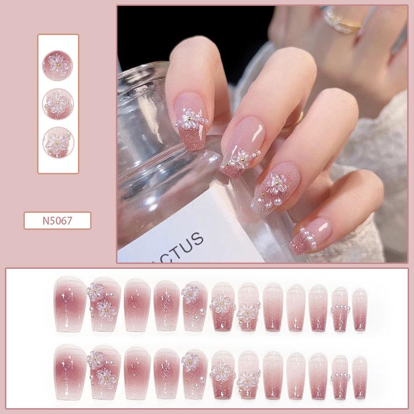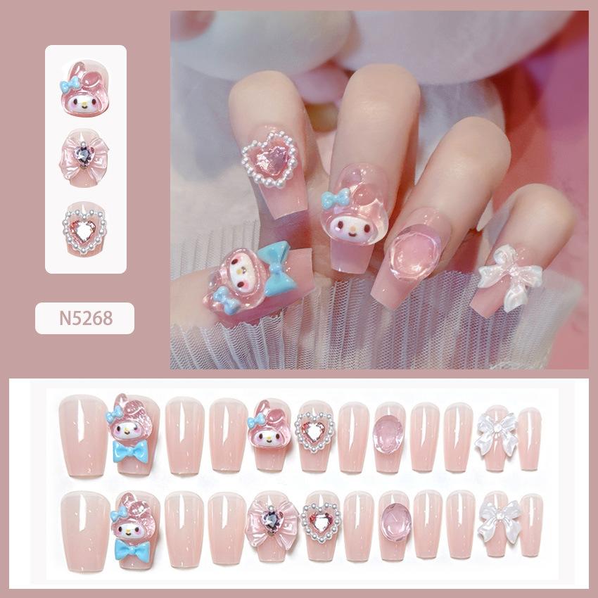 Lindo Hermana Pequeña Japonesa Ropa de Largo Medio Armadura Perla Mariposa Parche de Uñas Desmontable Uñas Postizas Avanzadas Acabadas