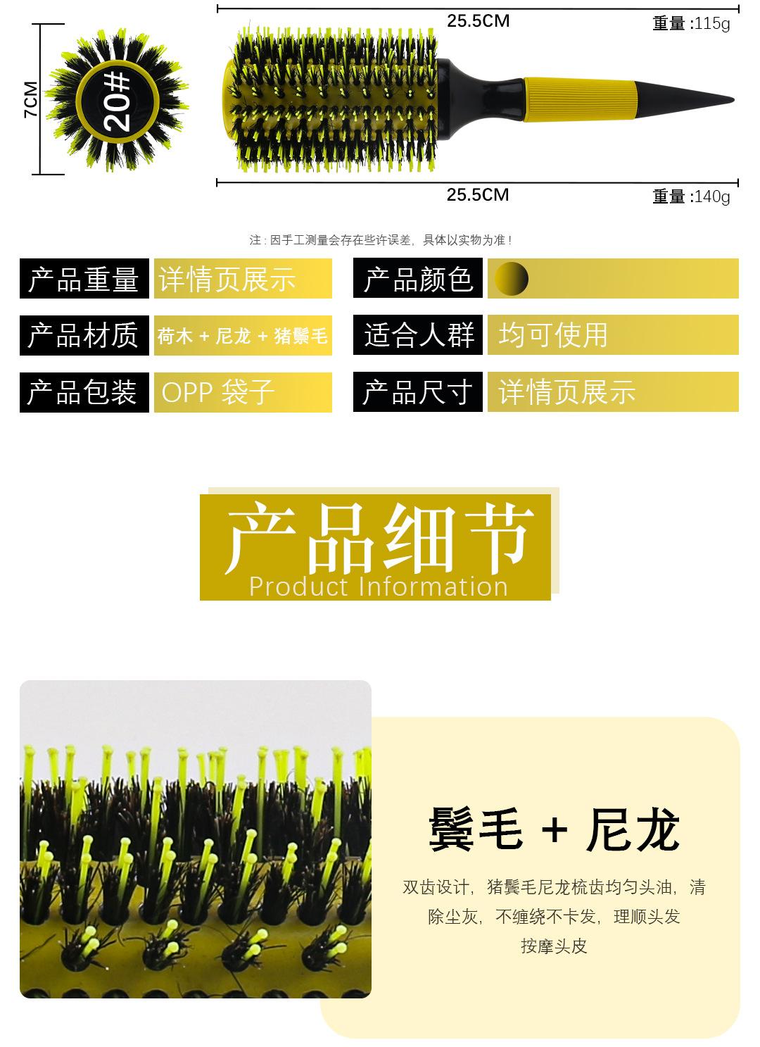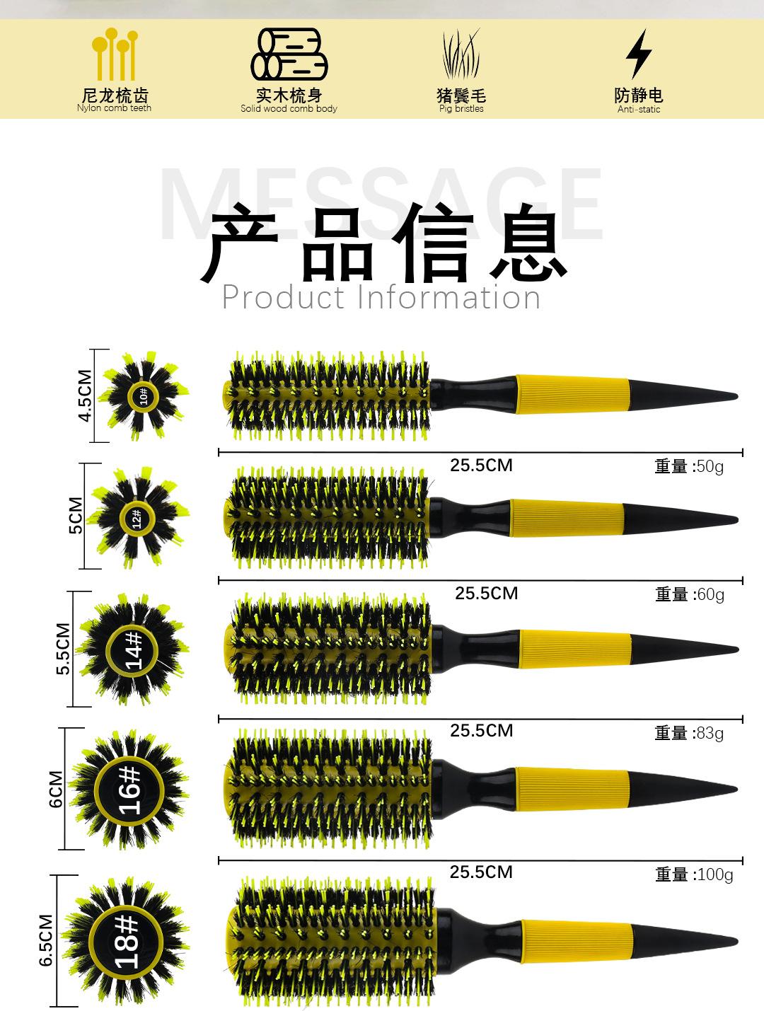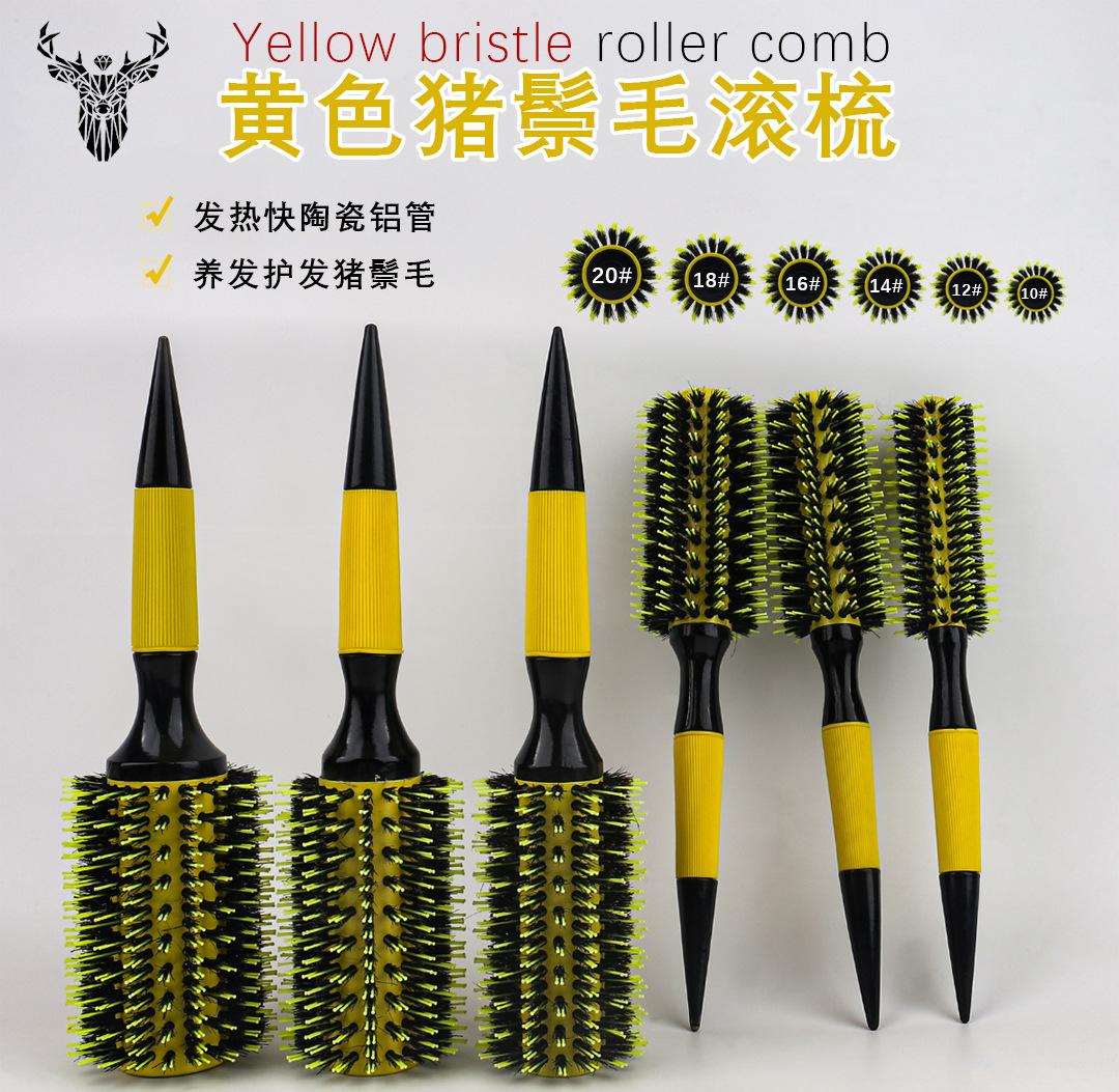 Peine para cabello caliente transfronterizo con cerdas de tubo de aluminio, conductivo del calor, amarillo, recto, resistente a altas temperaturas.