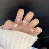 Uñas cortas rosas transparentes de uso, metal cocodrilo corazón dulce cool, pieza de belleza para uñas, producto terminado al por mayor, uñas postizas 24 piezas en caja