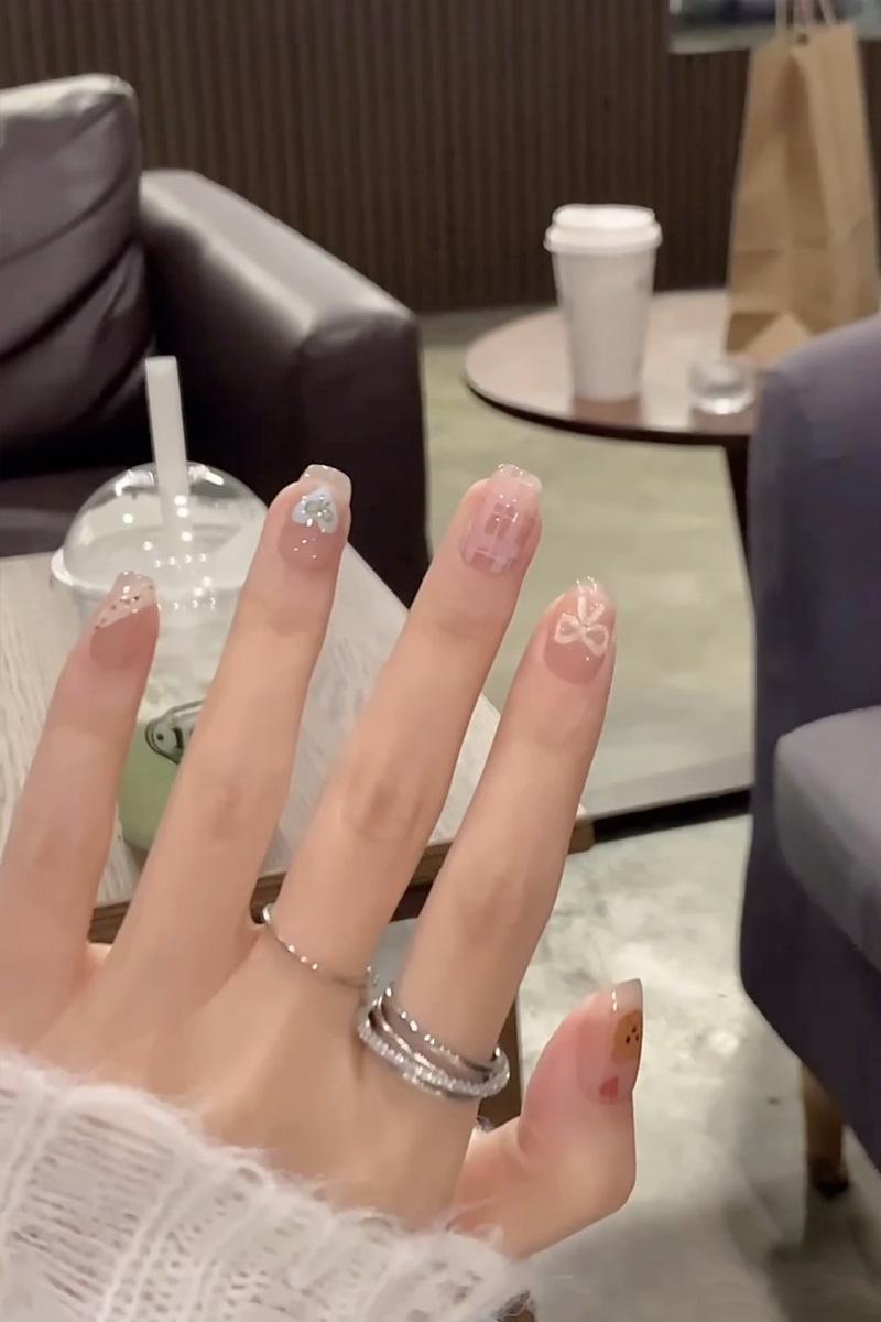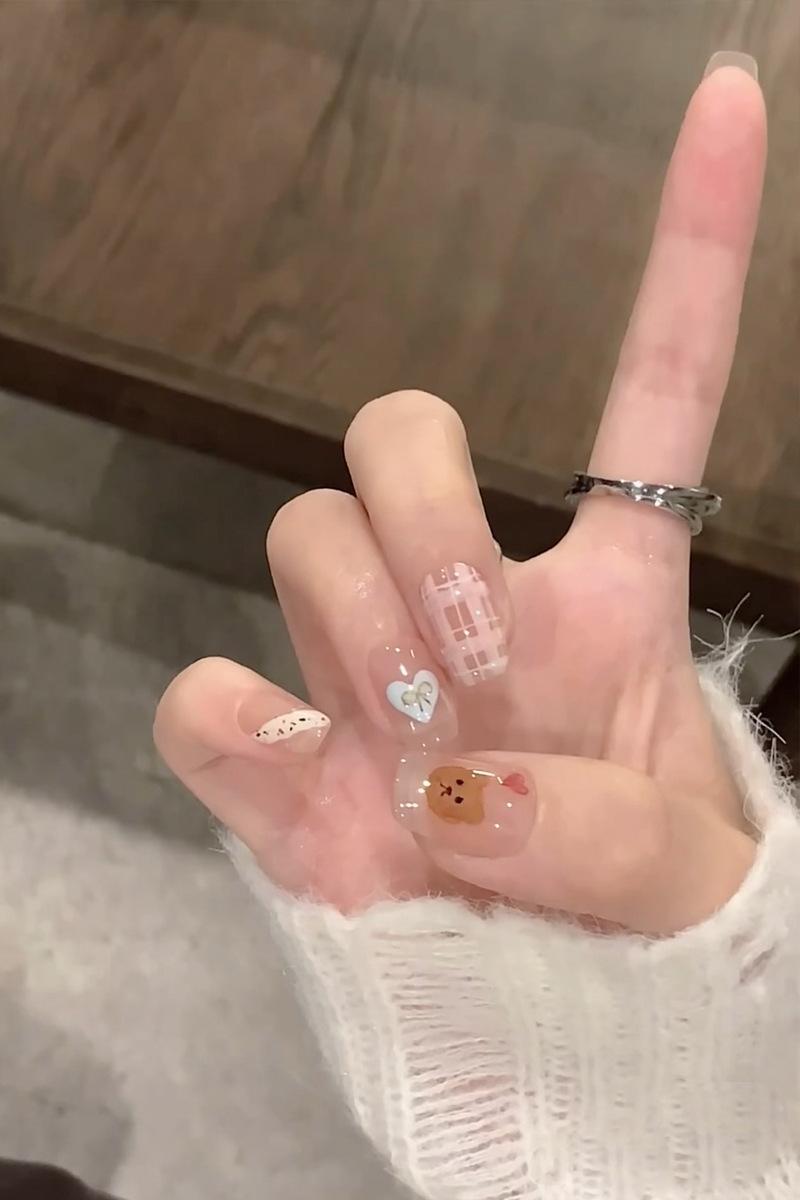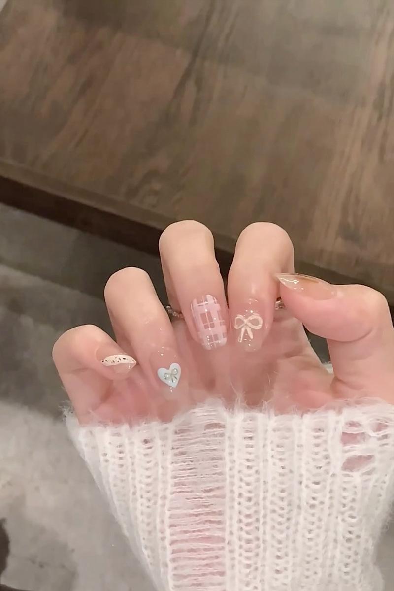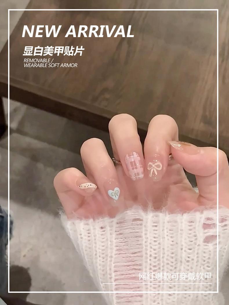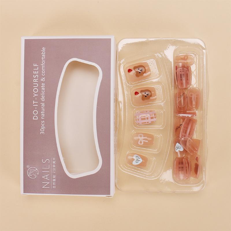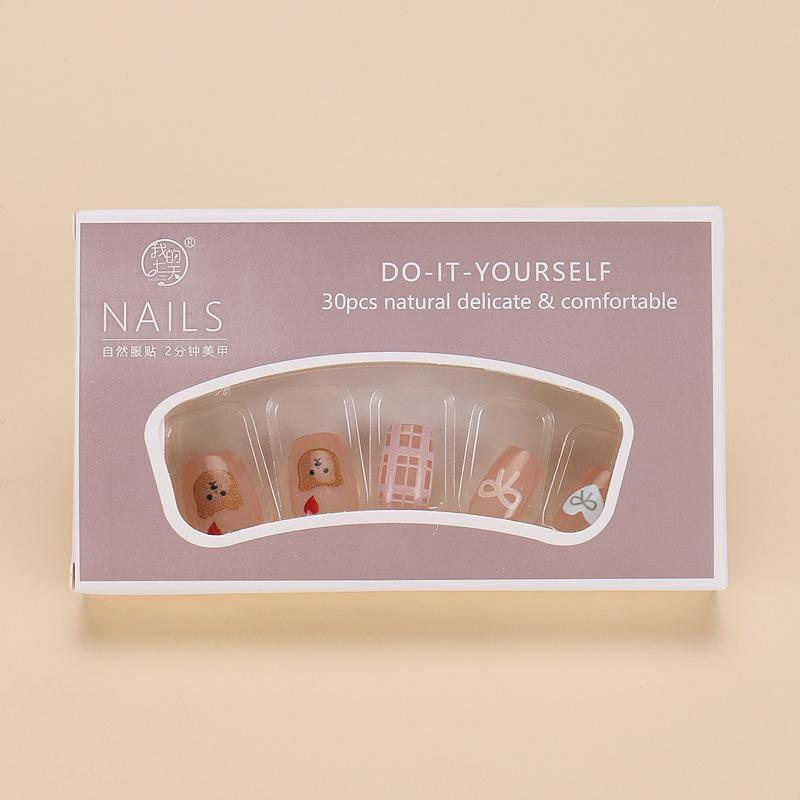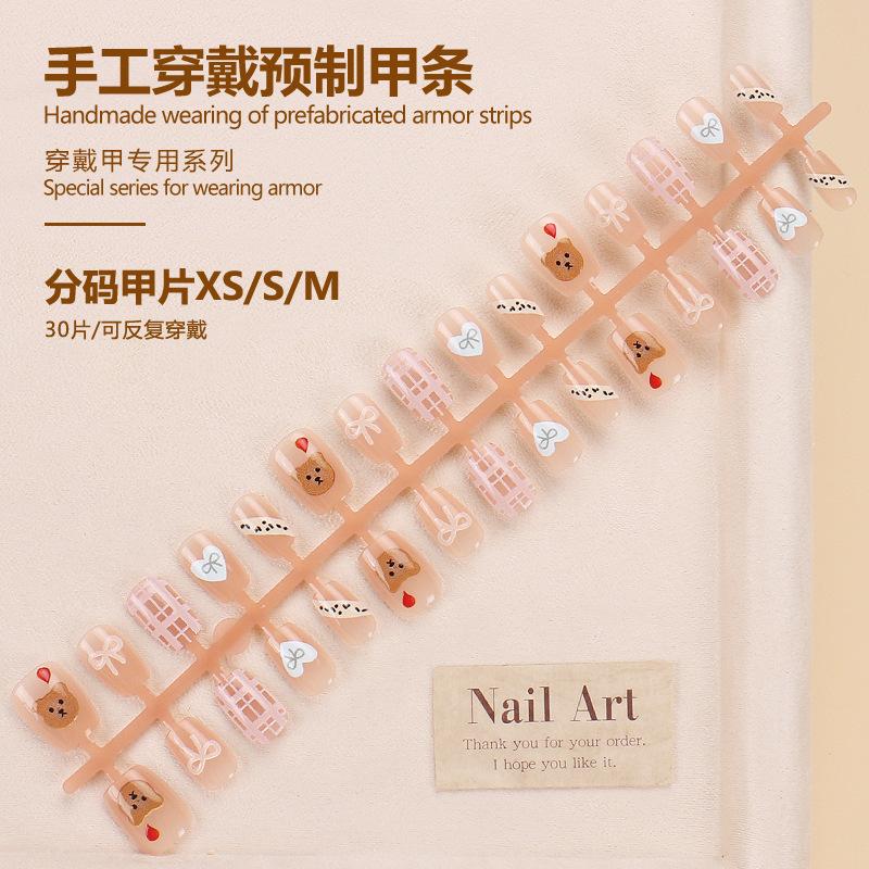 Dulce armadura de viento fresco al por mayor nuevo 30 piezas parche para arte de uñas caricatura amor lazo pieza de uña postiza desmontable