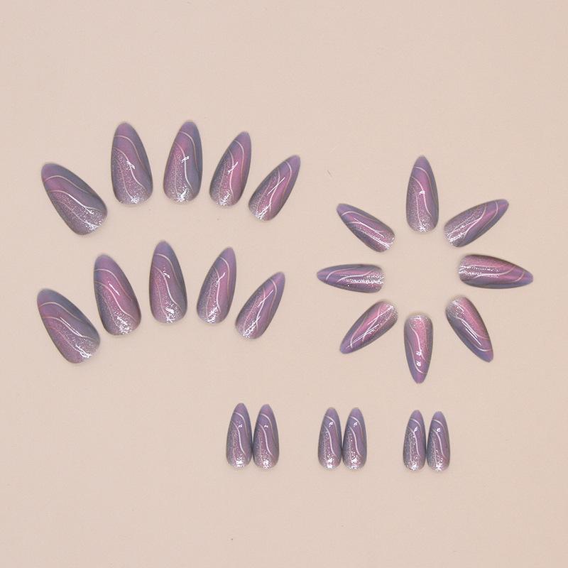 Armadura de almendra con gota de agua de cabeza redonda, uñas aurora coloridas, uñas postizas de verano europeas y americanas nuevas, uñas postizas con ojos brillantes, uñas terminadas, venta al por mayor
