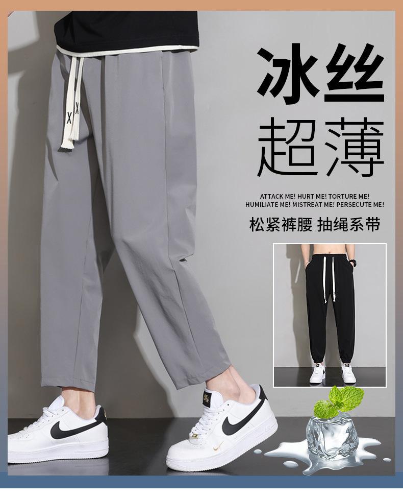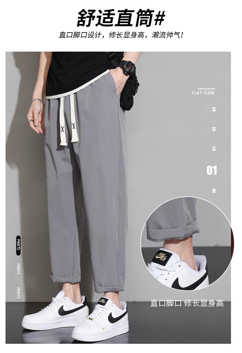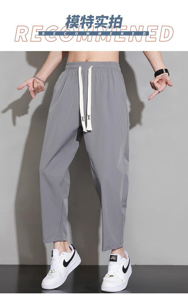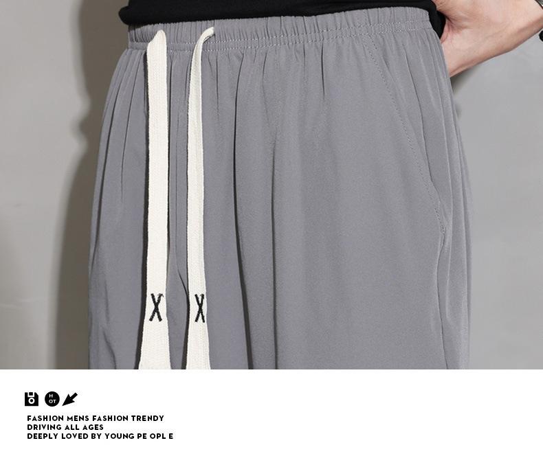Pantalones cortos deportivos de seda helada para hombre, pantalón informal holgado, primavera, verano y otoño, 2023