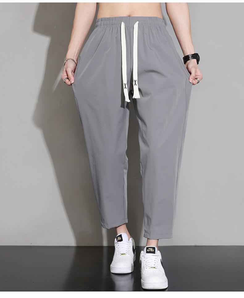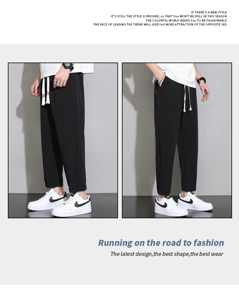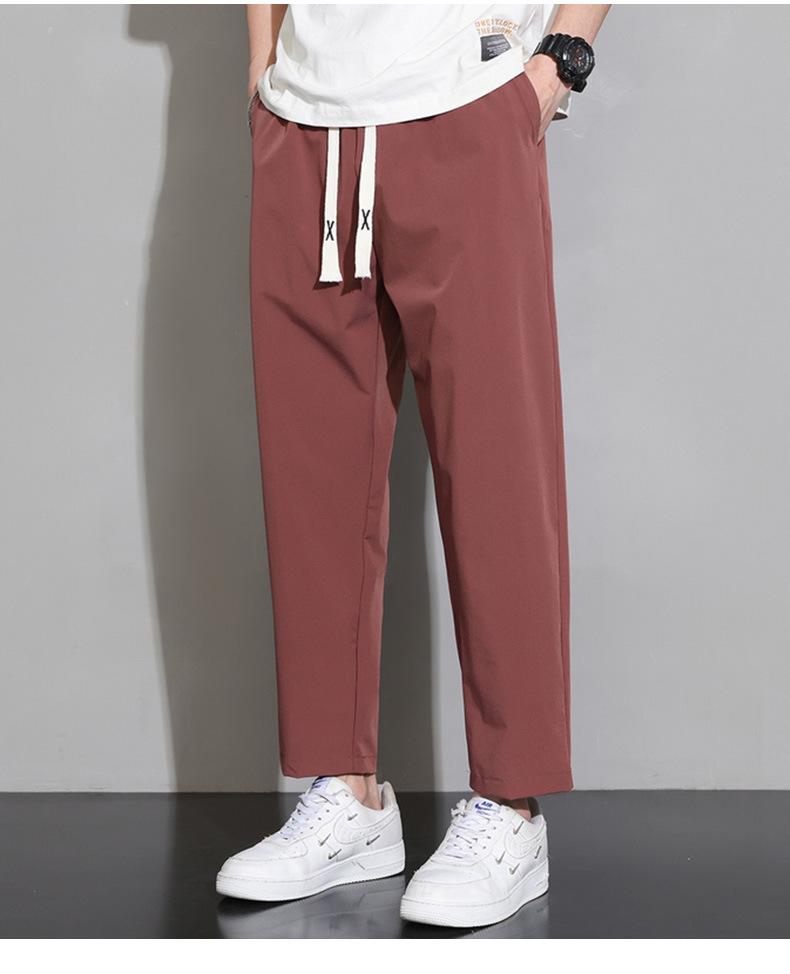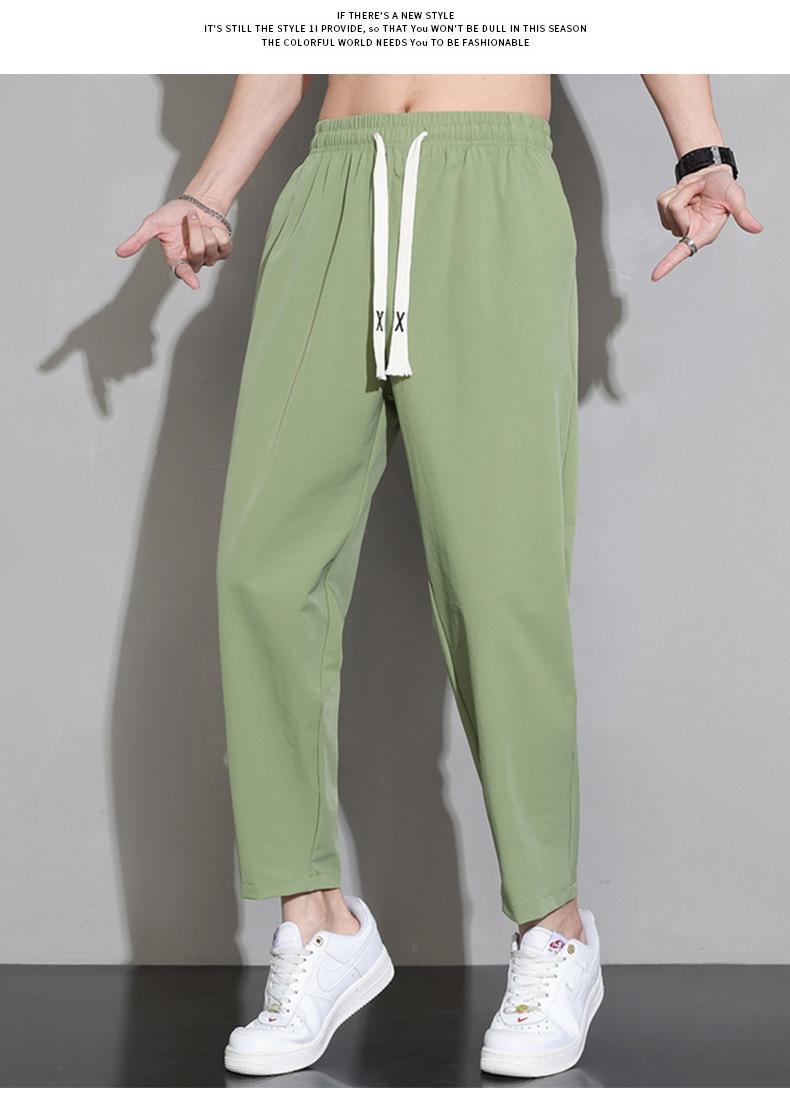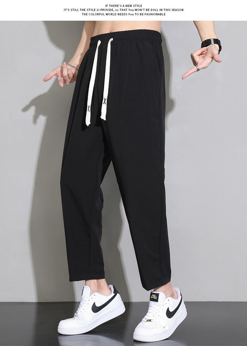 Pantalones cortos deportivos de seda helada para hombre, pantalón informal holgado, primavera, verano y otoño, 2023
