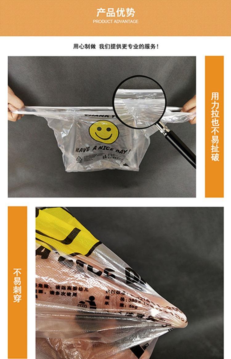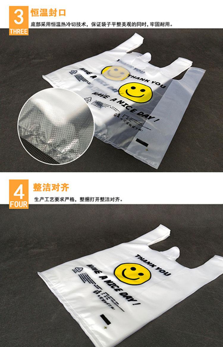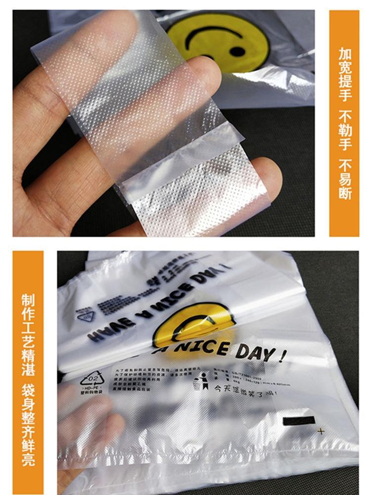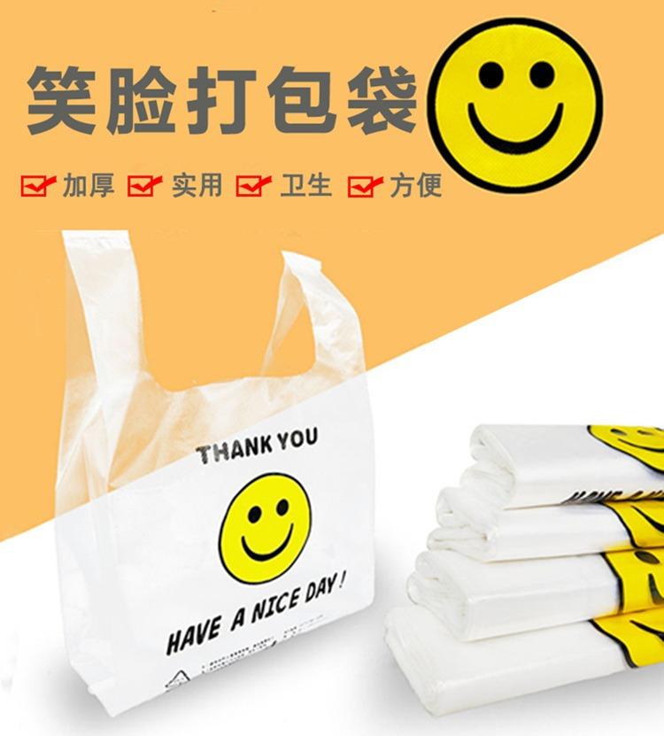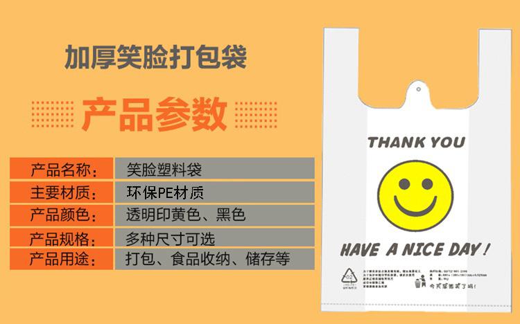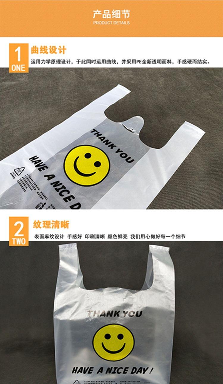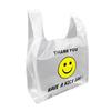 Bolsa de tanque transparente con cara sonriente, bolsa de compras al por mayor para supermercado, bolsa de embalaje portátil para llevar, bolsa desechable con cara sonriente