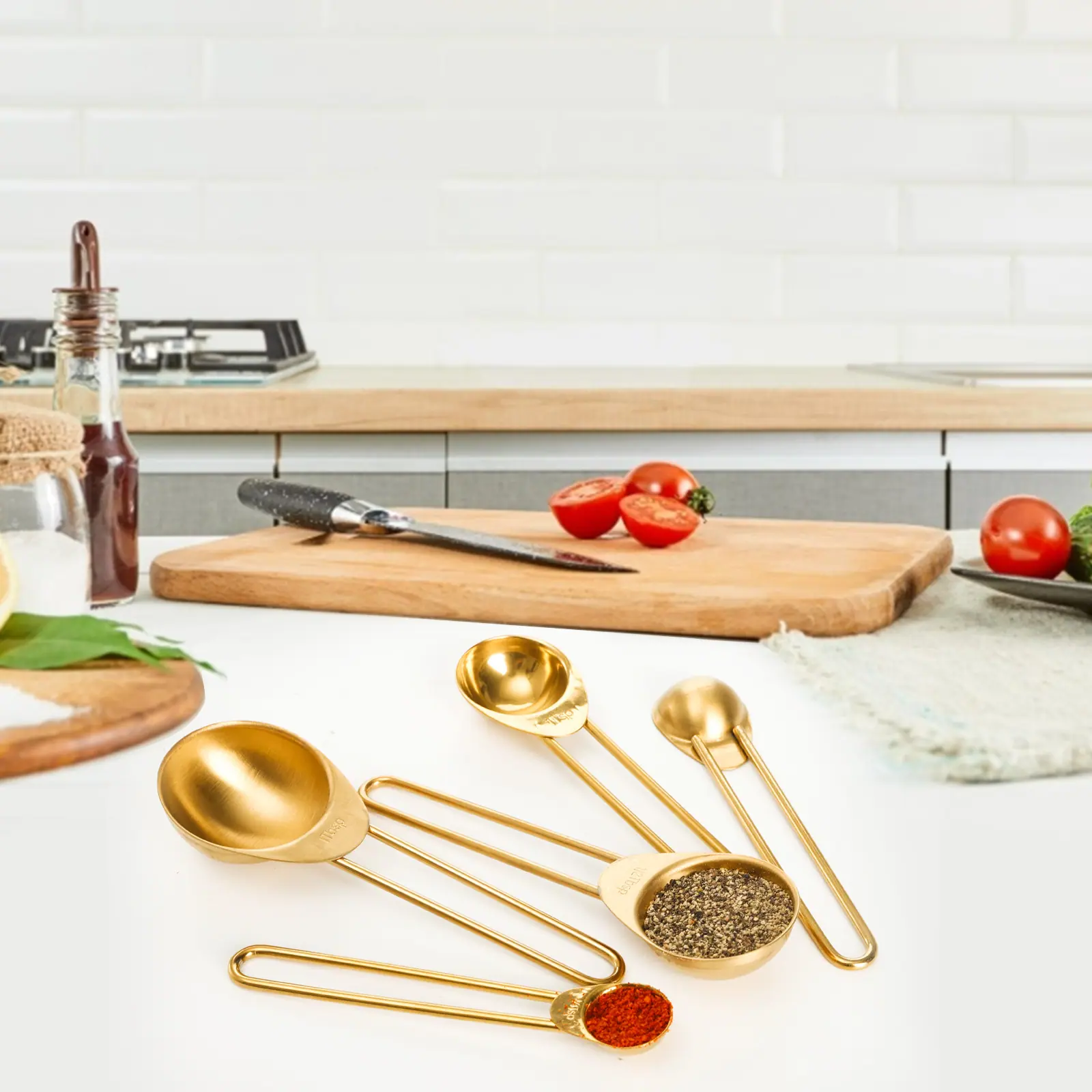 Gold wire handle measuring spoon 5-piece set [430 stainless steel]