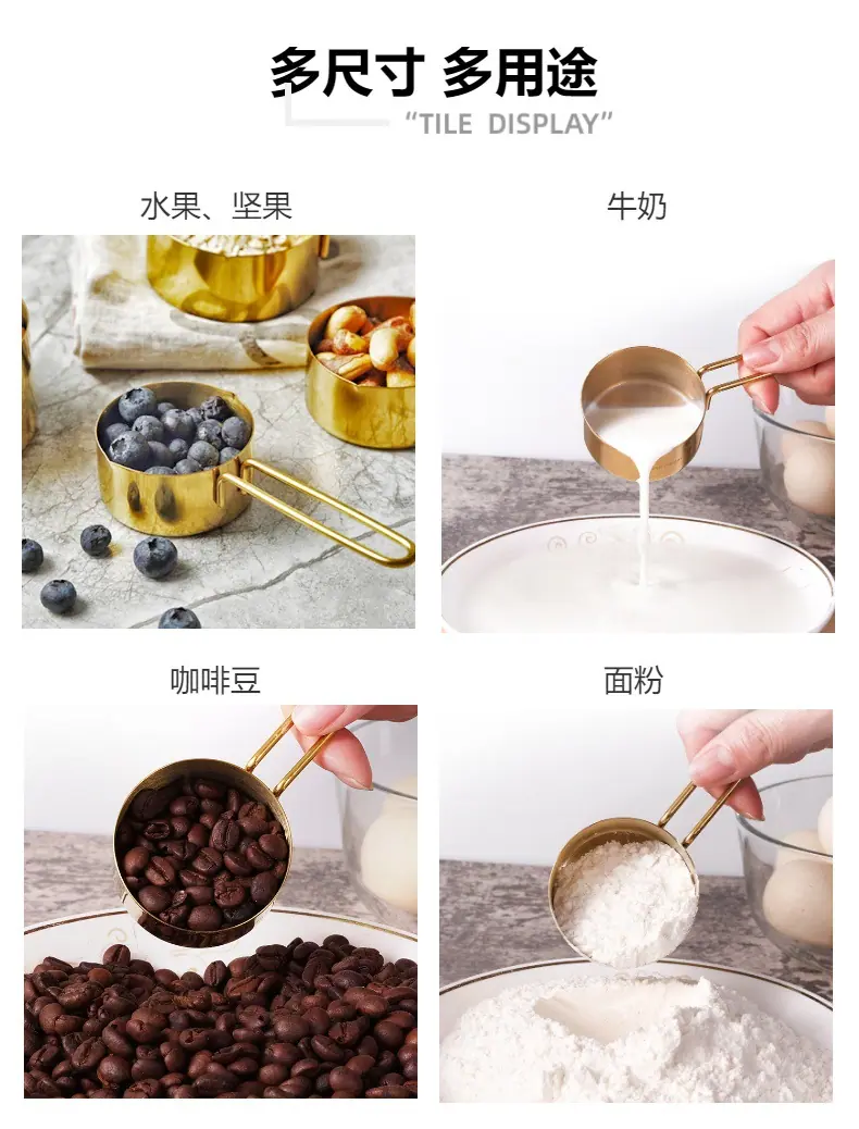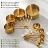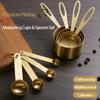 Set de Tazas y Cucharas Medidoras de Acero Inoxidable Transfronterizo, Juego de 8 Piezas con Mango Dorado, Cuchara y Taza Medidoras, Juego de 4 Piezas con Escala para Tostado de Café