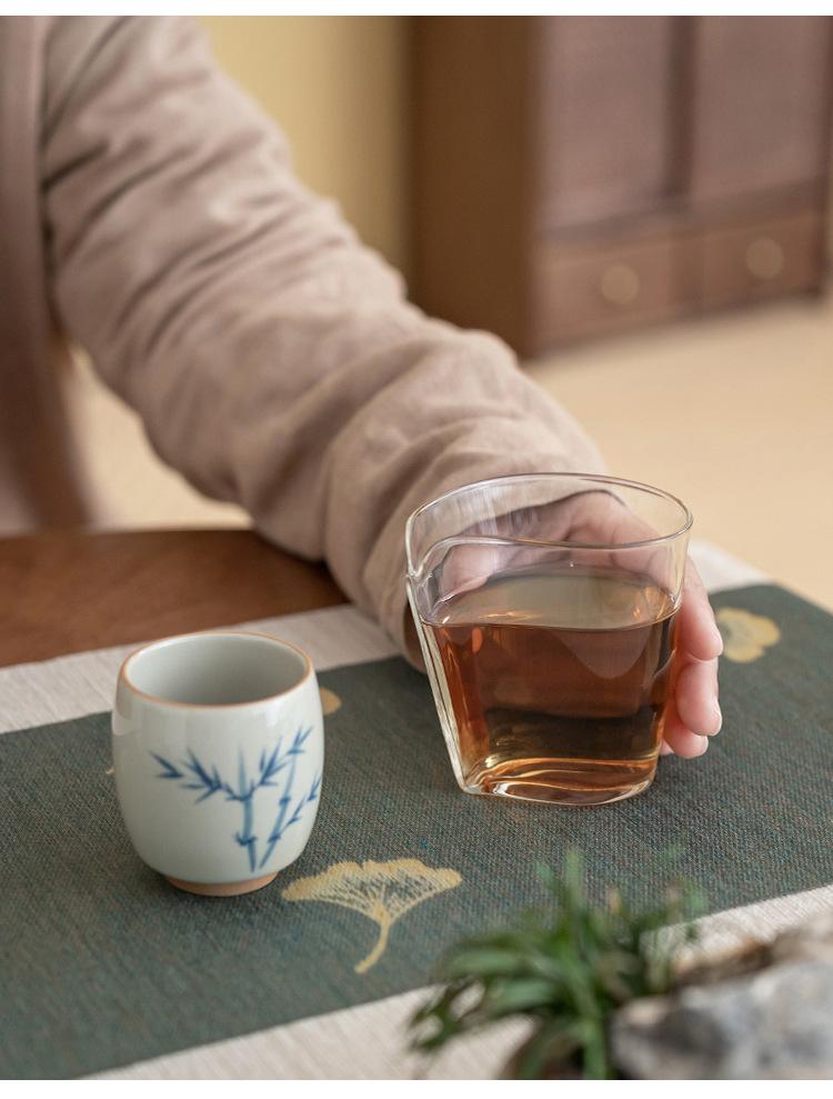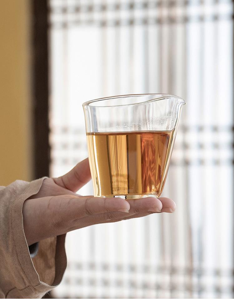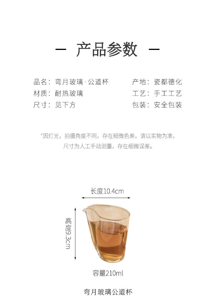 Taza de vidrio de borosilicato resistente al calor con forma de luna curvada engrosada, dispensador de té uniforme, taza para el hogar, piezas para la ceremonia del té del mar.