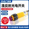 Un interruptor fotoeléctrico es la abreviatura de interruptor de proximidad fotoeléctrico. Utiliza el objeto para bloquear o reflejar el haz de luz, y el circuito síncrono lo conecta para detectar la presencia del objeto. Los objetos no se limitan a los metales. Se pueden detectar todos los objetos que pueden reflejar (o bloquear) la luz. El interruptor fotoeléctrico convierte la corriente de entrada en una señal luminosa en el transmisor, y el receptor detecta el objeto objetivo según la intensidad o presencia de la luz recibida. Las alarmas de humo con interruptor fotoeléctrico son comunes en los sistemas de seguridad y se utilizan a menudo en la industria para contabilizar el número de movimientos de los brazos robóticos.