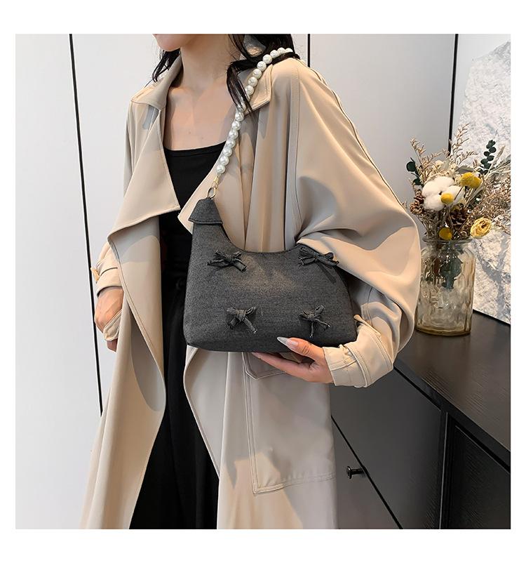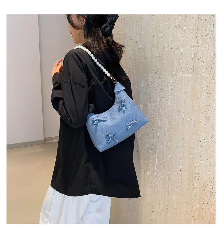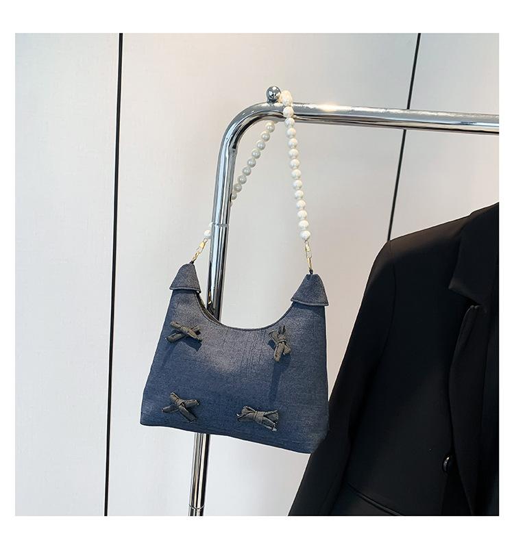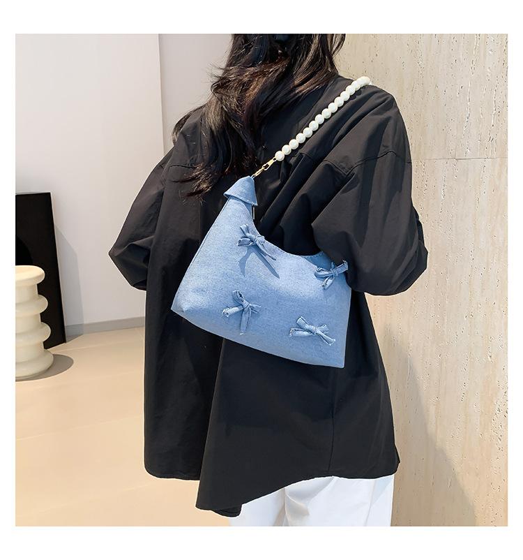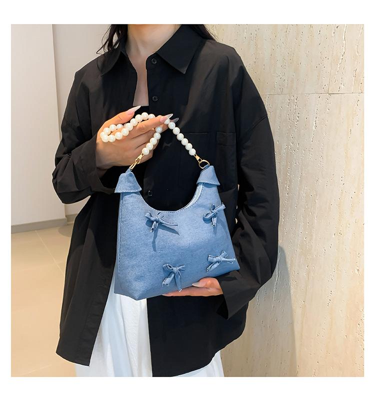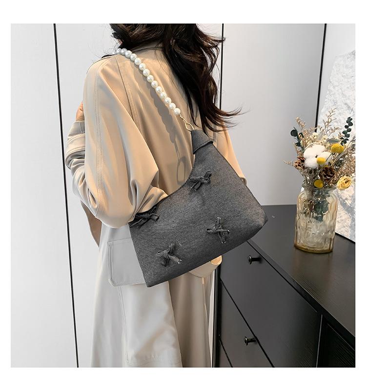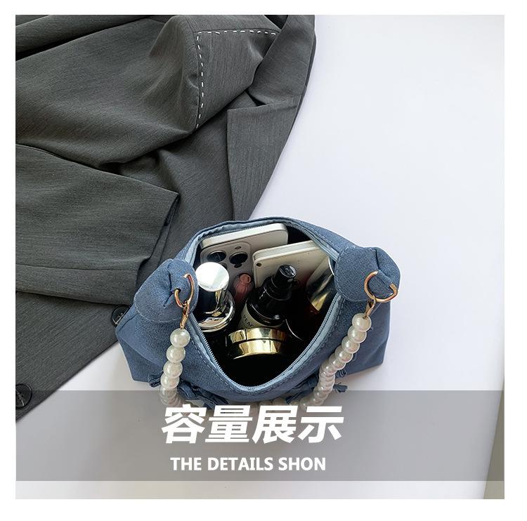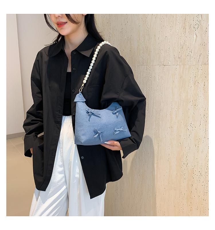Bolso bandolera estilo coreano con cadena y lazo para mujer, novedad de verano 2024, bolso informal con perlas.