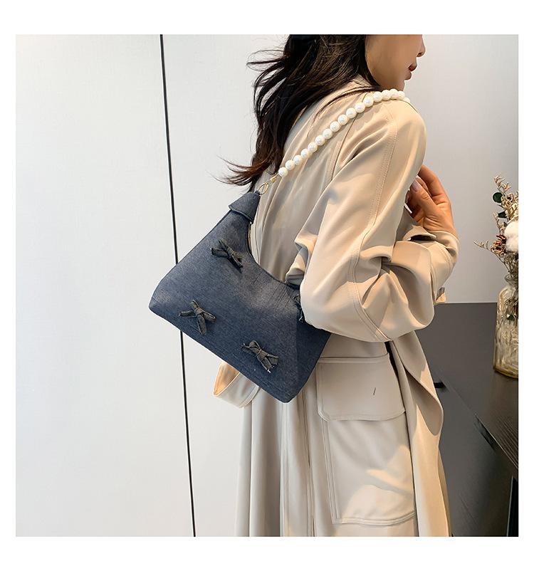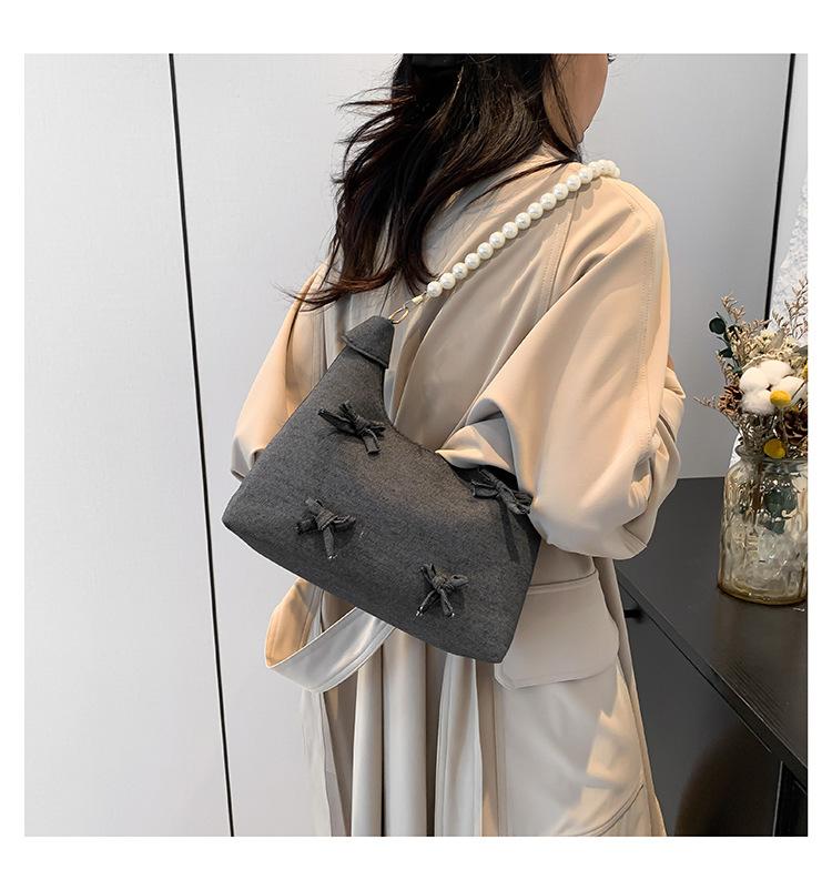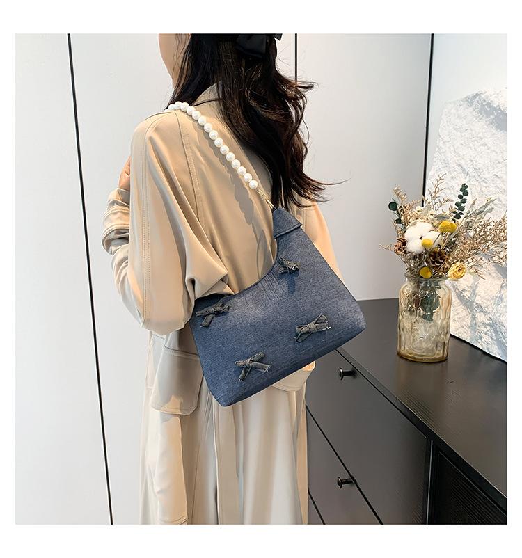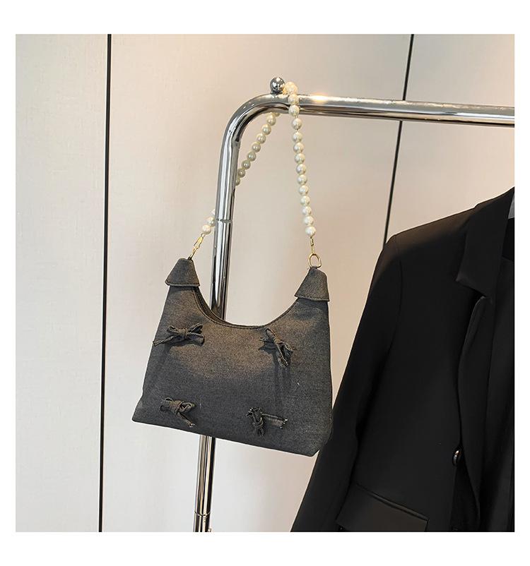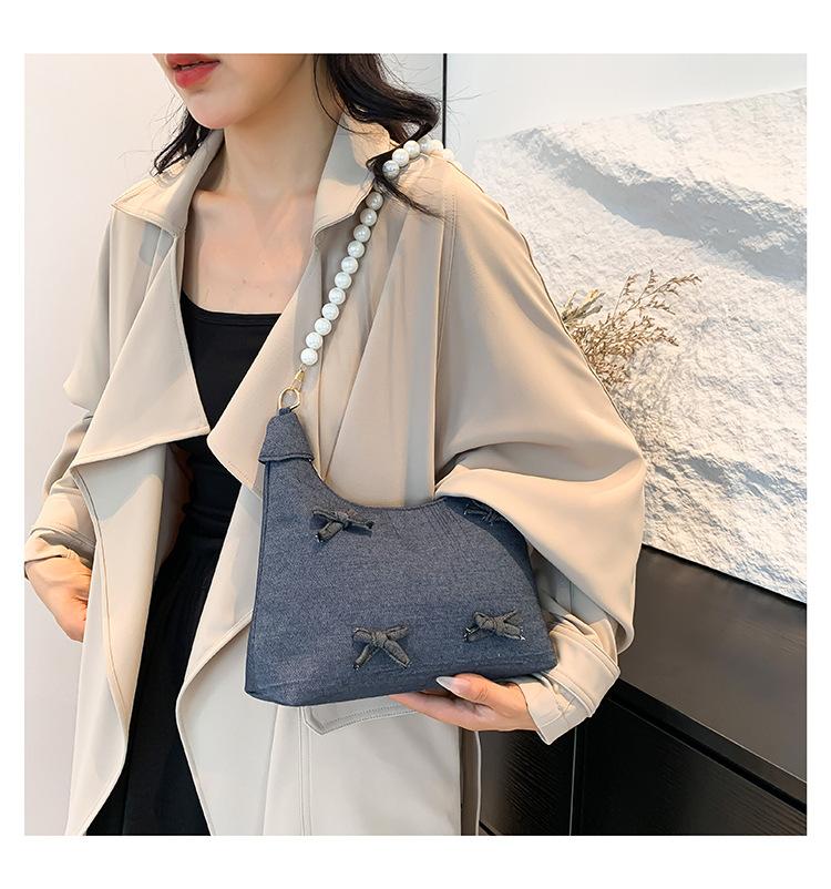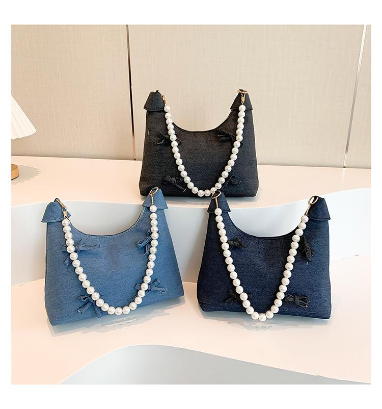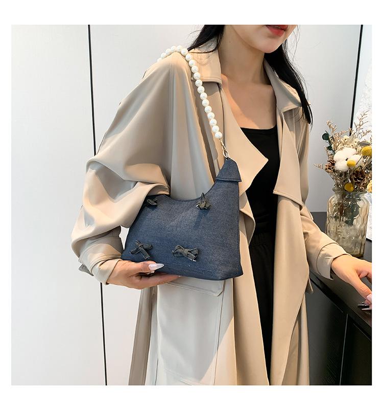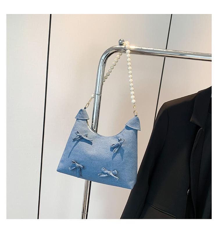 Bolso bandolera estilo coreano con cadena y lazo para mujer, novedad de verano 2024, bolso informal con perlas.