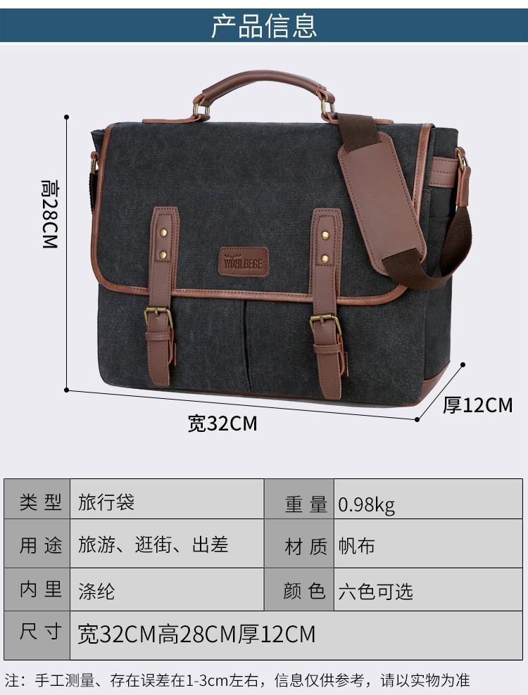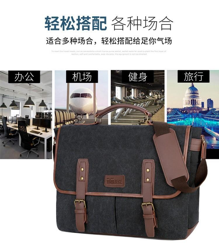 Nuevo Bolso para Laptop Transfronterizo de Alta Gama Sentido Hombro Cruzado Tendencia Europea y Americana 15.6 Pulgadas Portafolio de Lona para Hombre