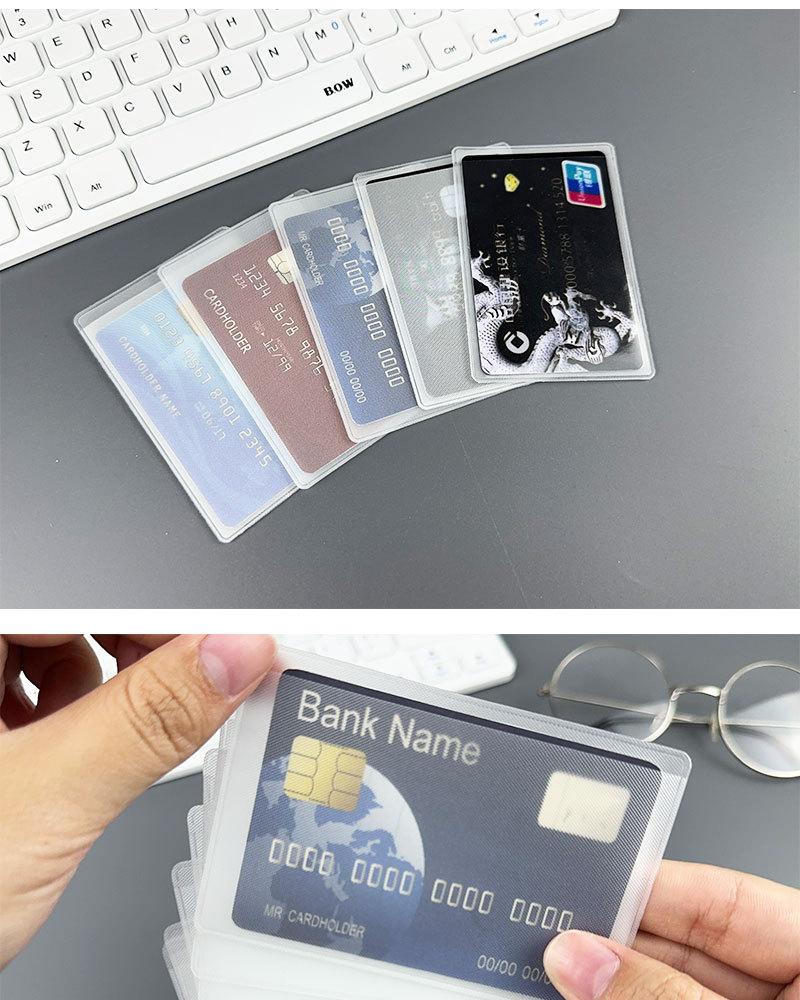 Portatarjetas de identificación transparente de PVC, venta al por mayor, funda protectora plana esmerilada para tarjetas bancarias y de autobús