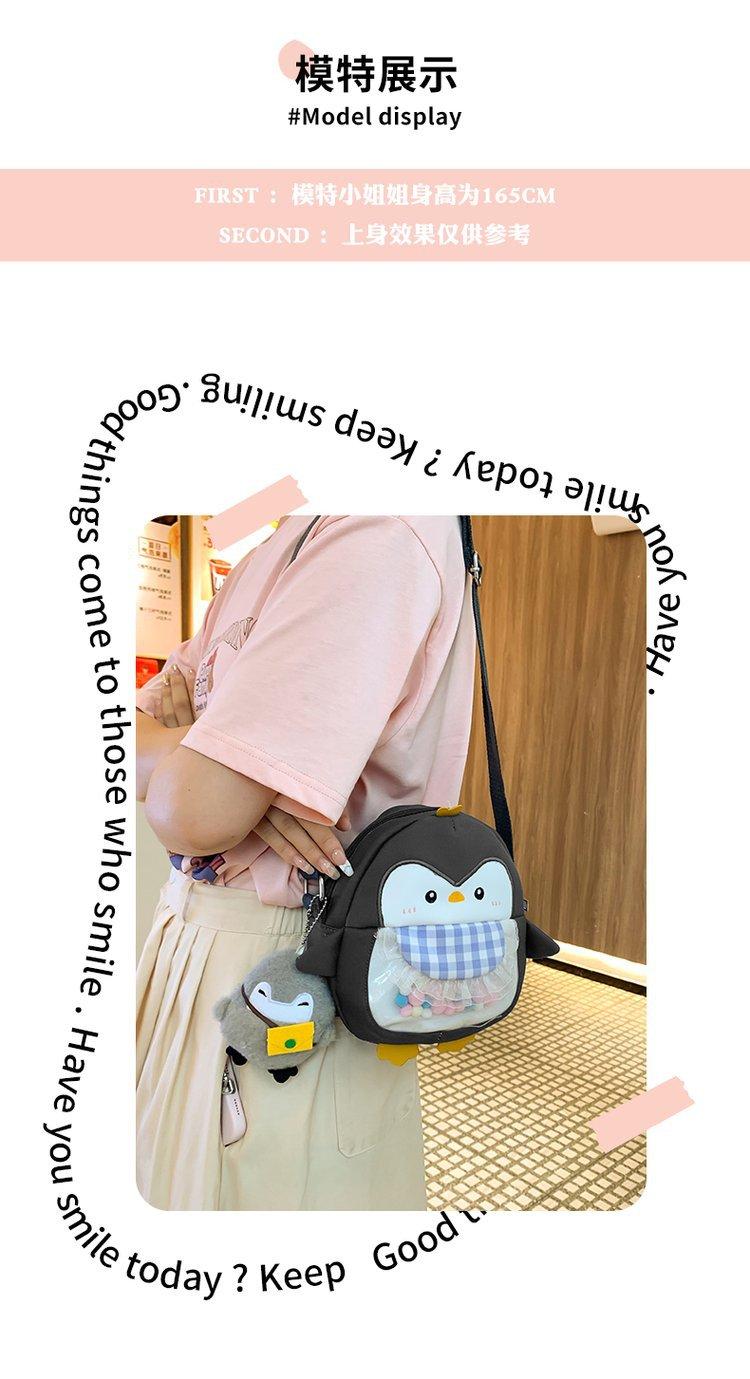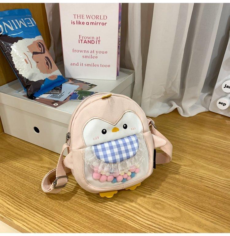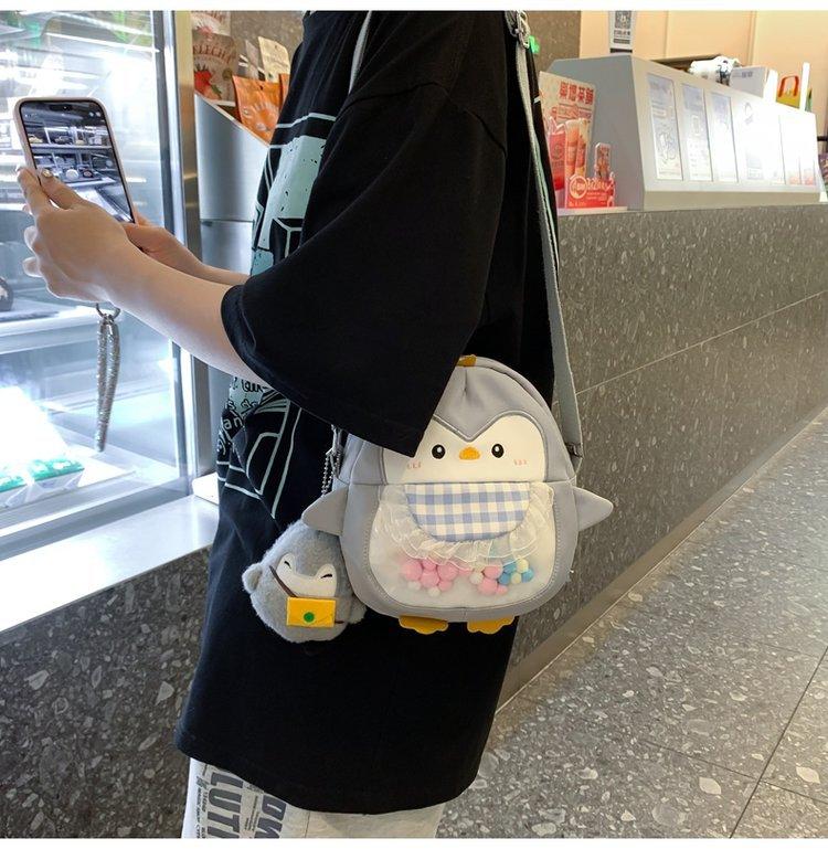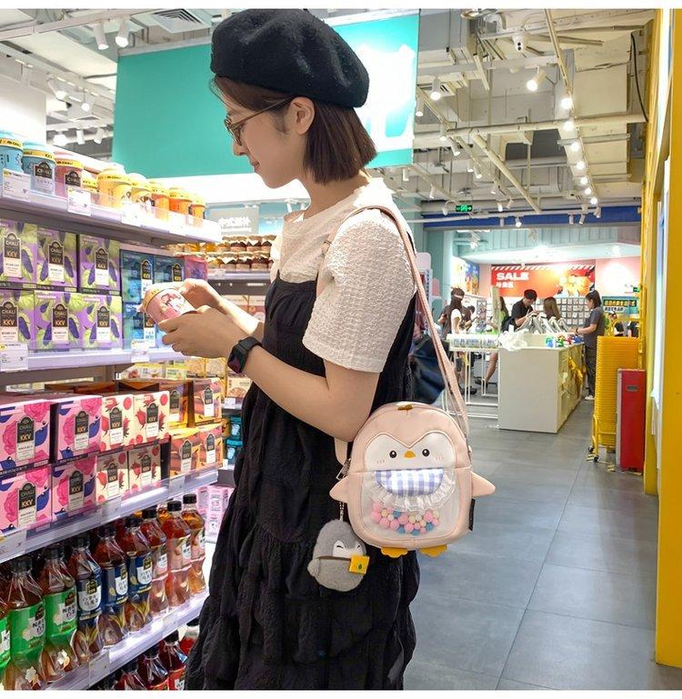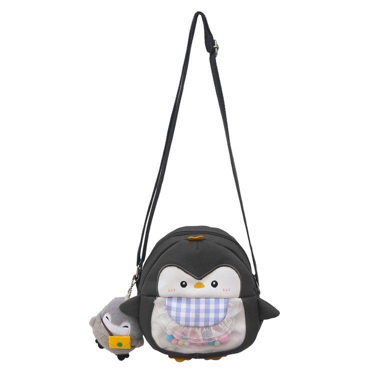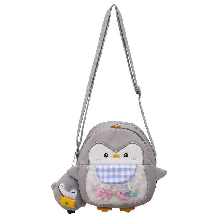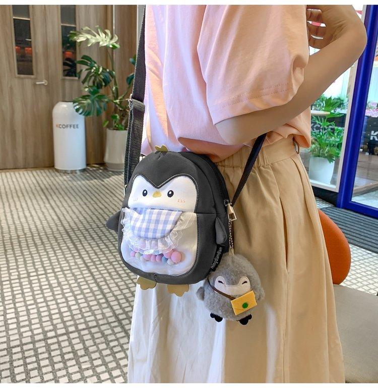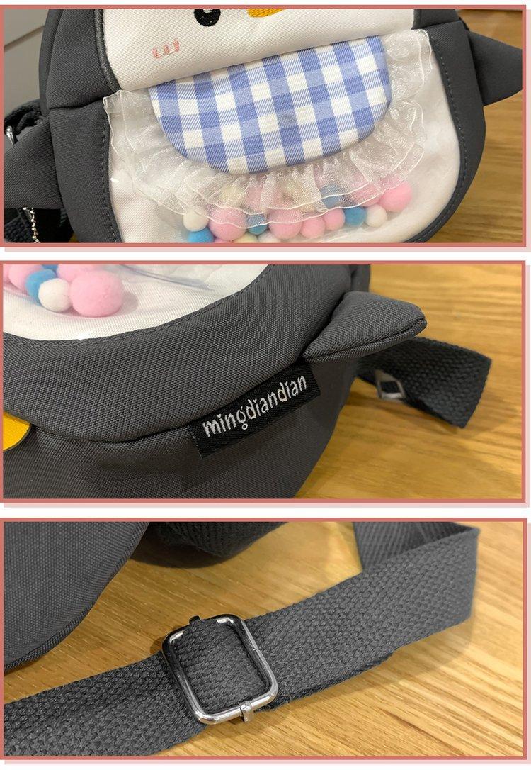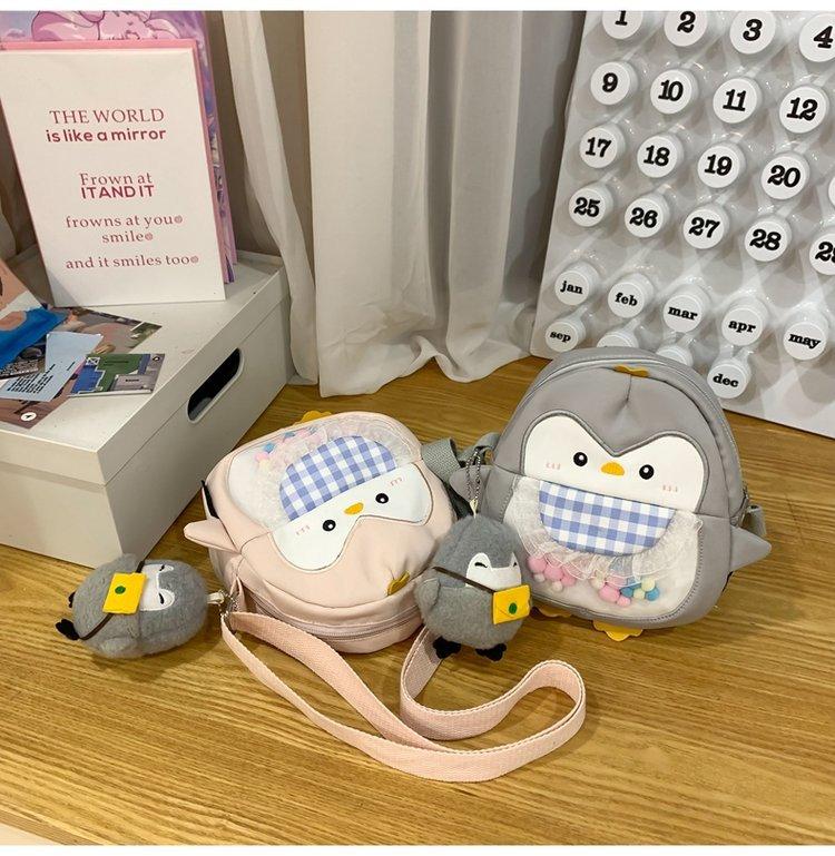 Bolso bandolera con diseño de pingüino y babero de dibujos animados, estilo japonés, dulce y suave, para niñas, mochila pequeña con encaje para el hombro.