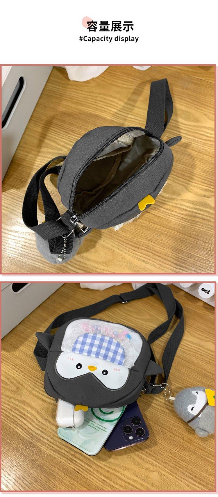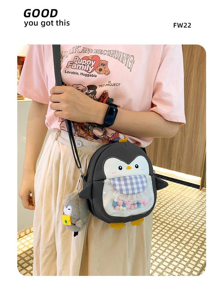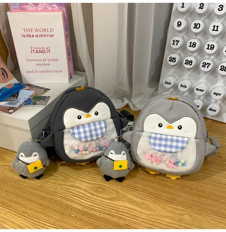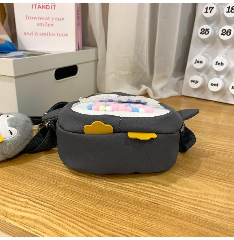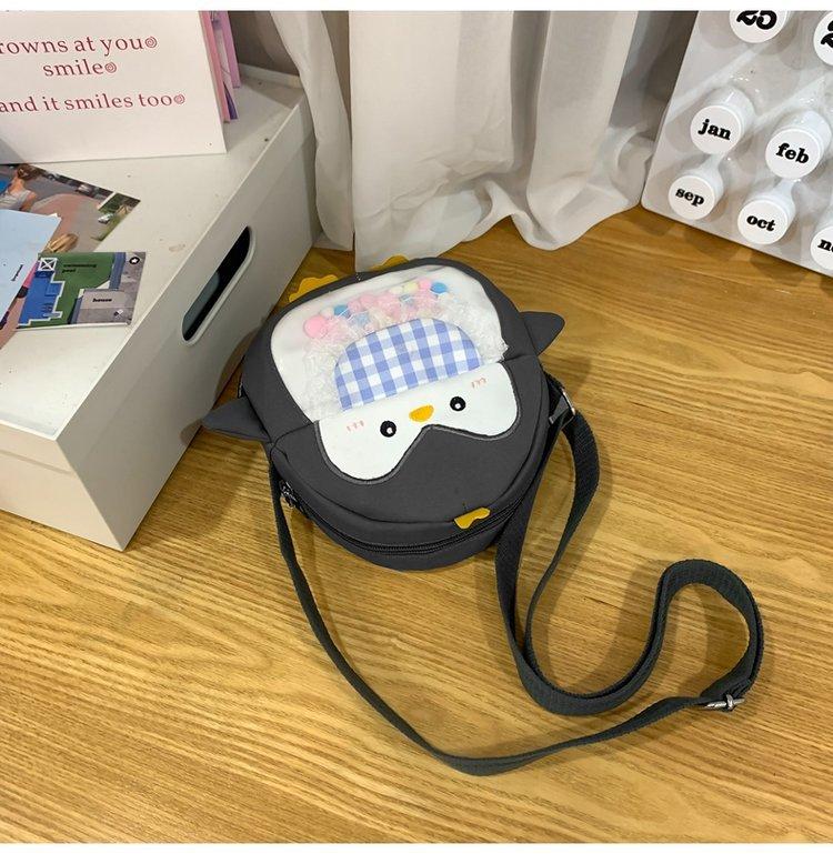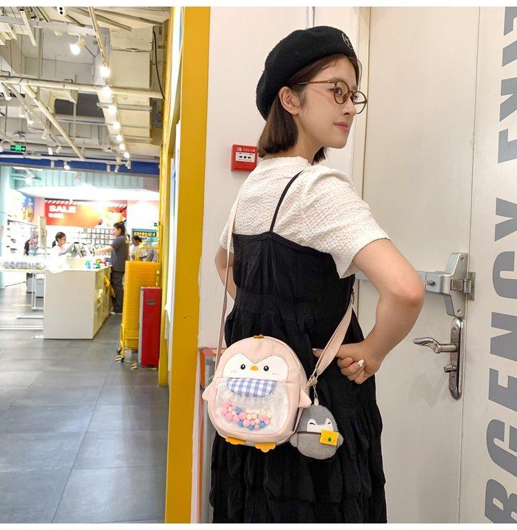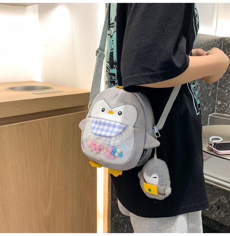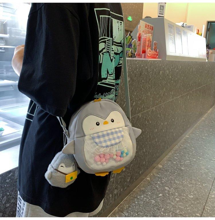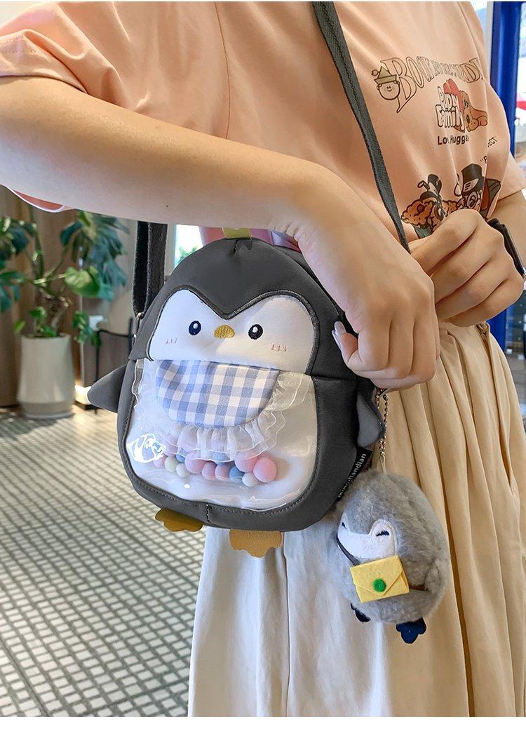 Bolso bandolera con diseño de pingüino y babero de dibujos animados, estilo japonés, dulce y suave, para niñas, mochila pequeña con encaje para el hombro.