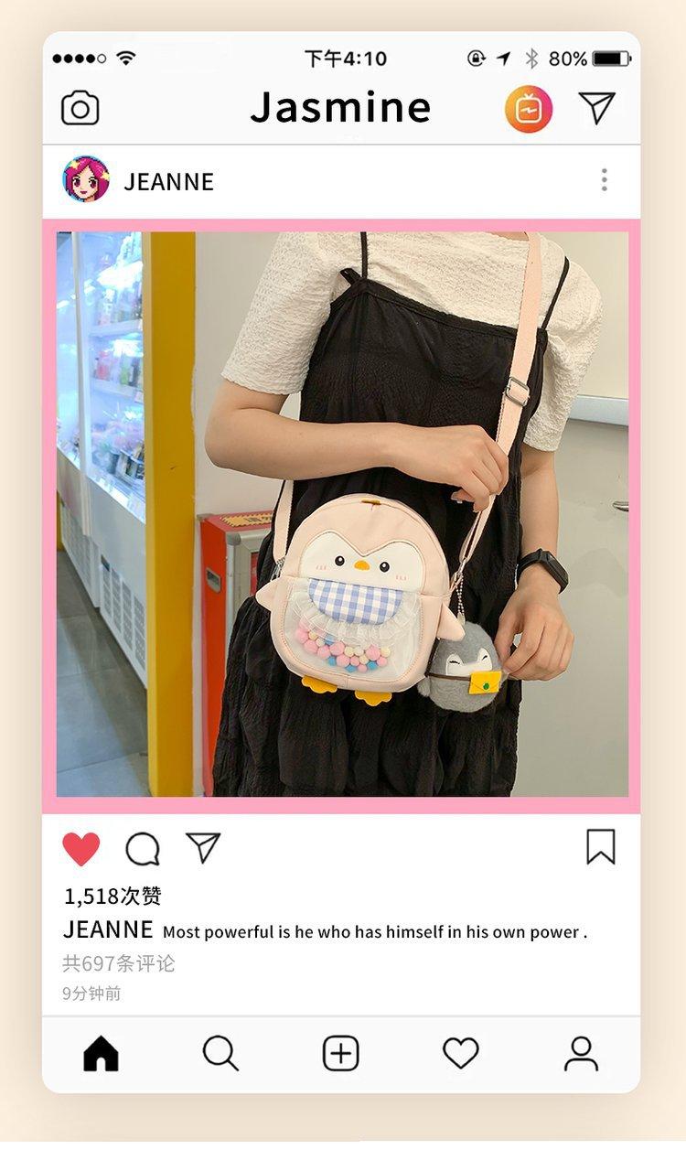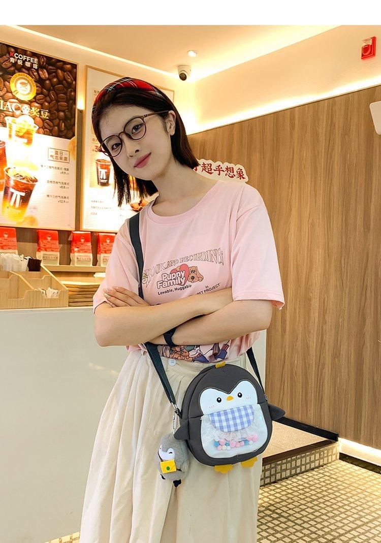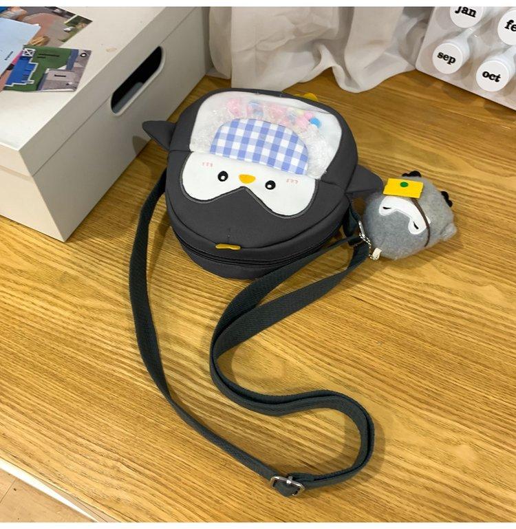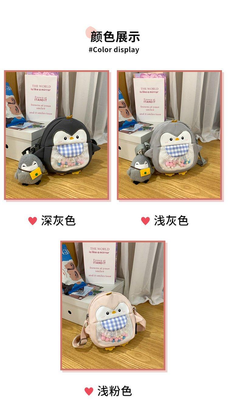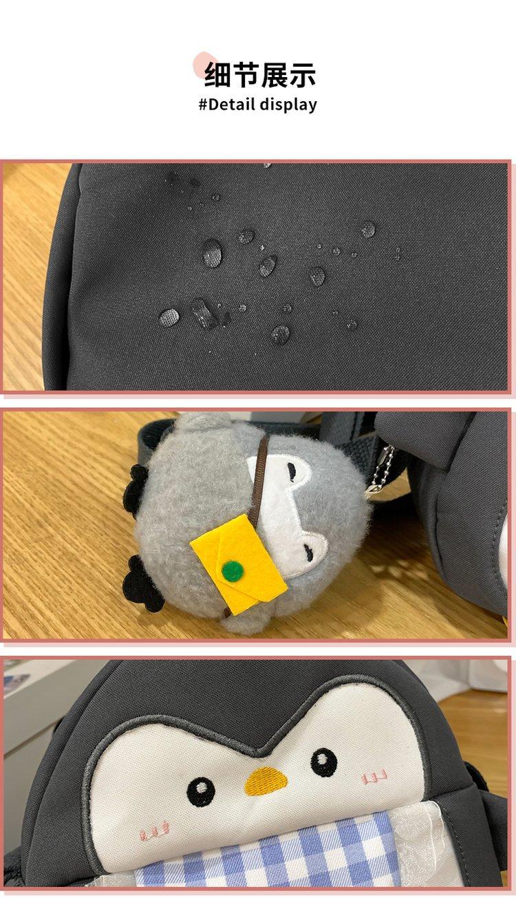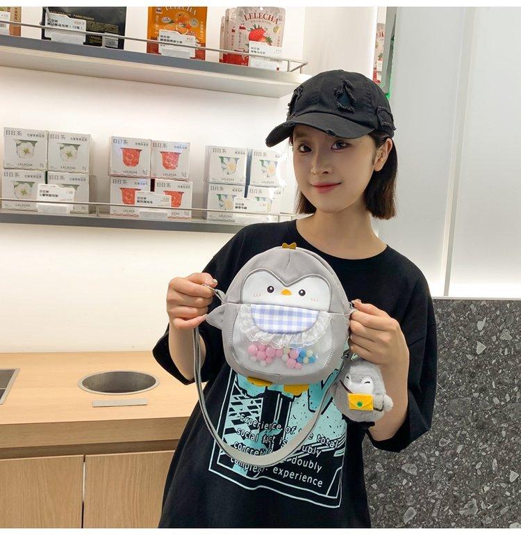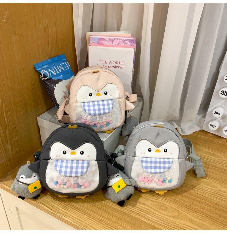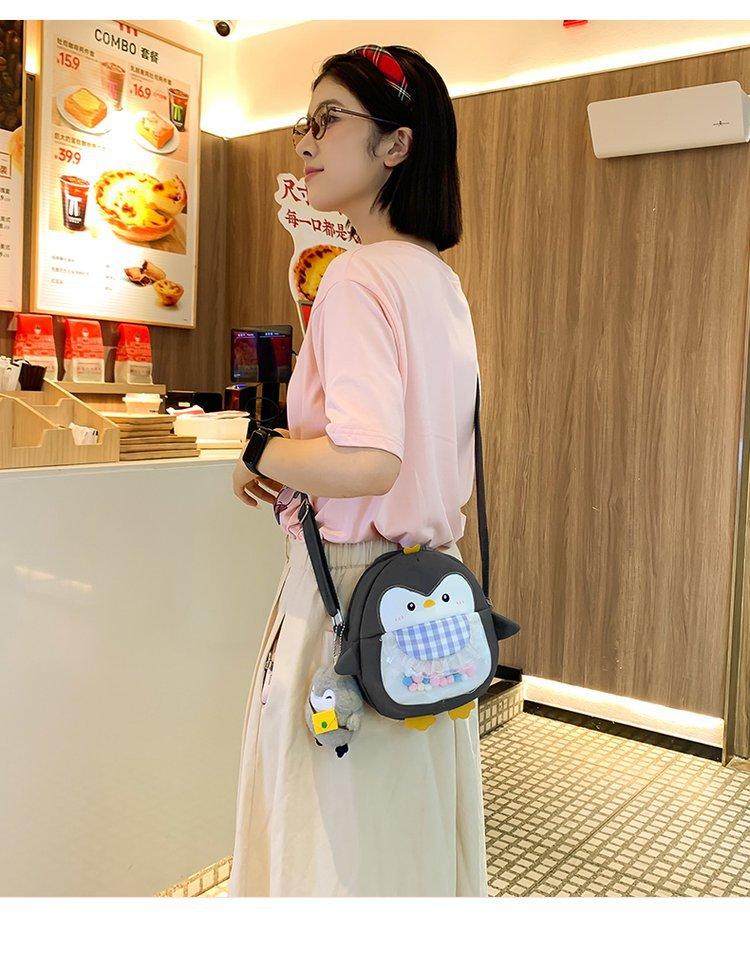 Bolso bandolera con diseño de pingüino y babero de dibujos animados, estilo japonés, dulce y suave, para niñas, mochila pequeña con encaje para el hombro.