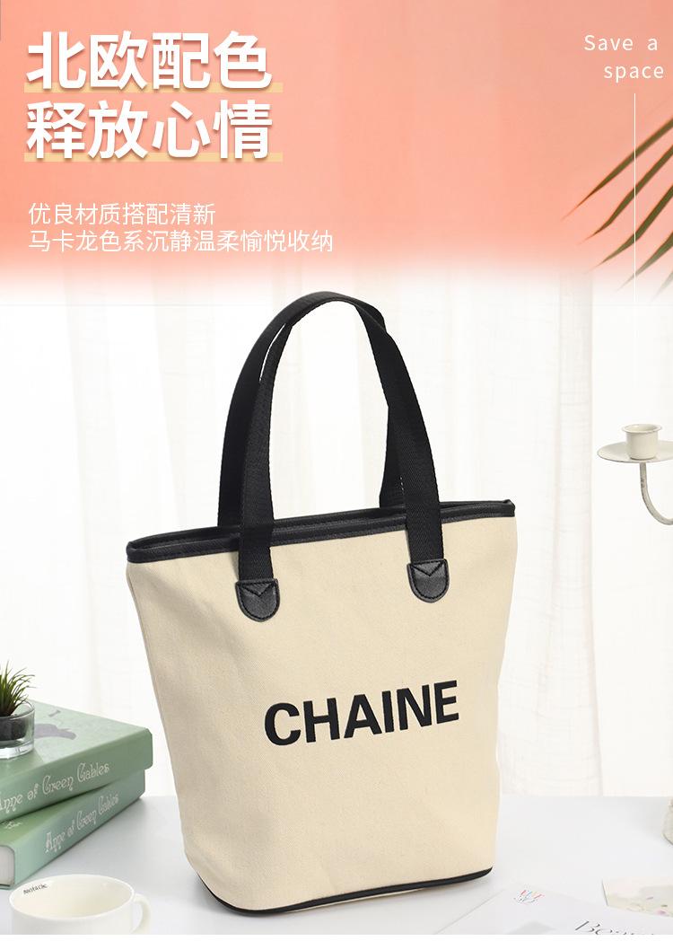 Bolso de Lona Simple Bolso de Mano Bolso Cosmético Portátil Bolso Clutch de Mano para Llevar Lazo Moda Bolsa para Vaso de Agua