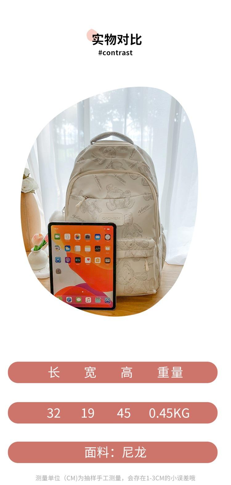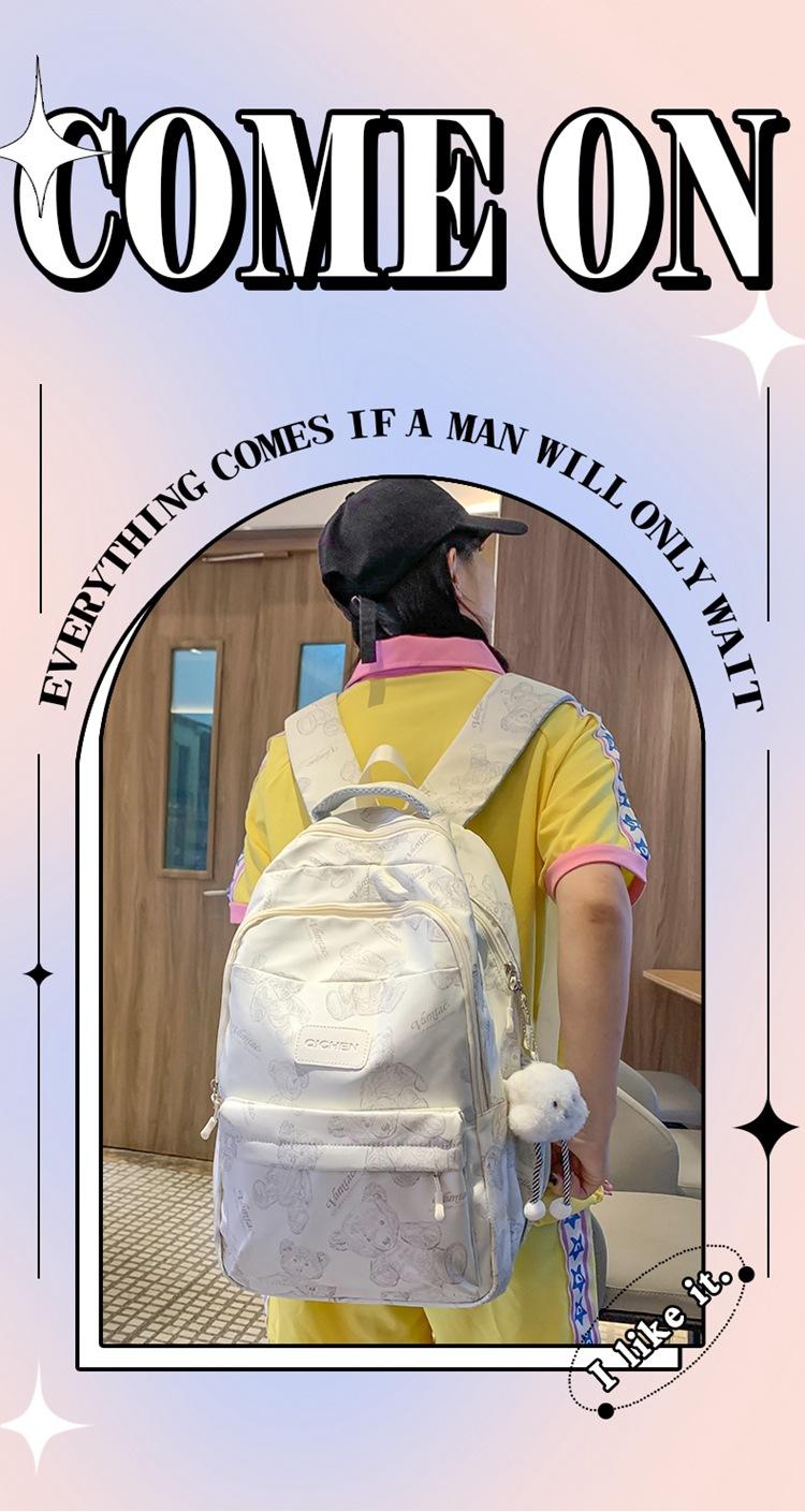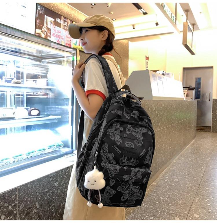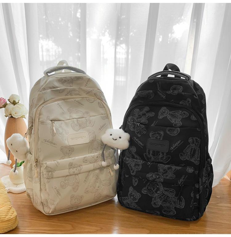 Mochila escolar para estudiantes de secundaria, sencilla, con estampado de oso y múltiples combinaciones, para mujer, de gran capacidad, moderna, para estudiantes de secundaria y universitarios.