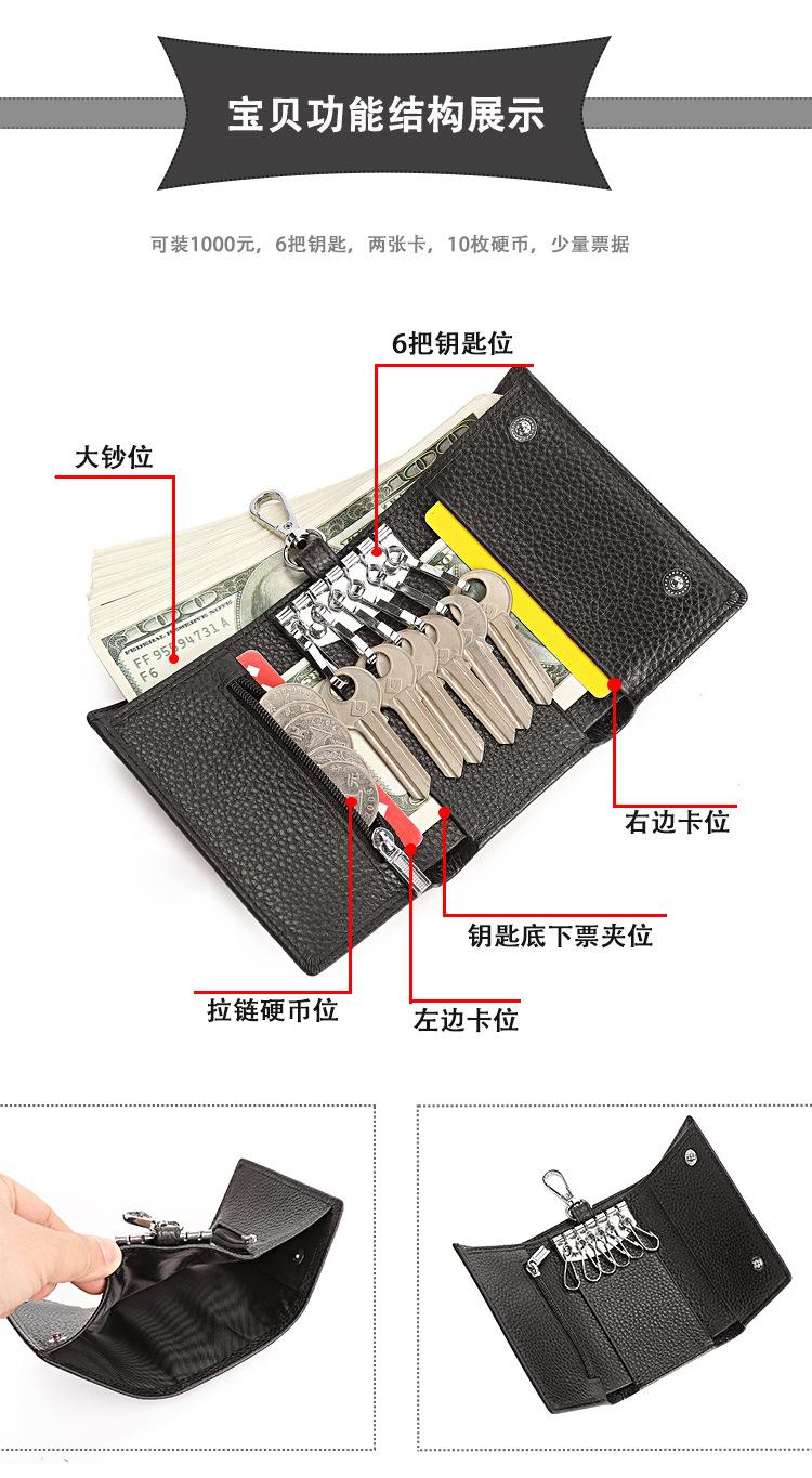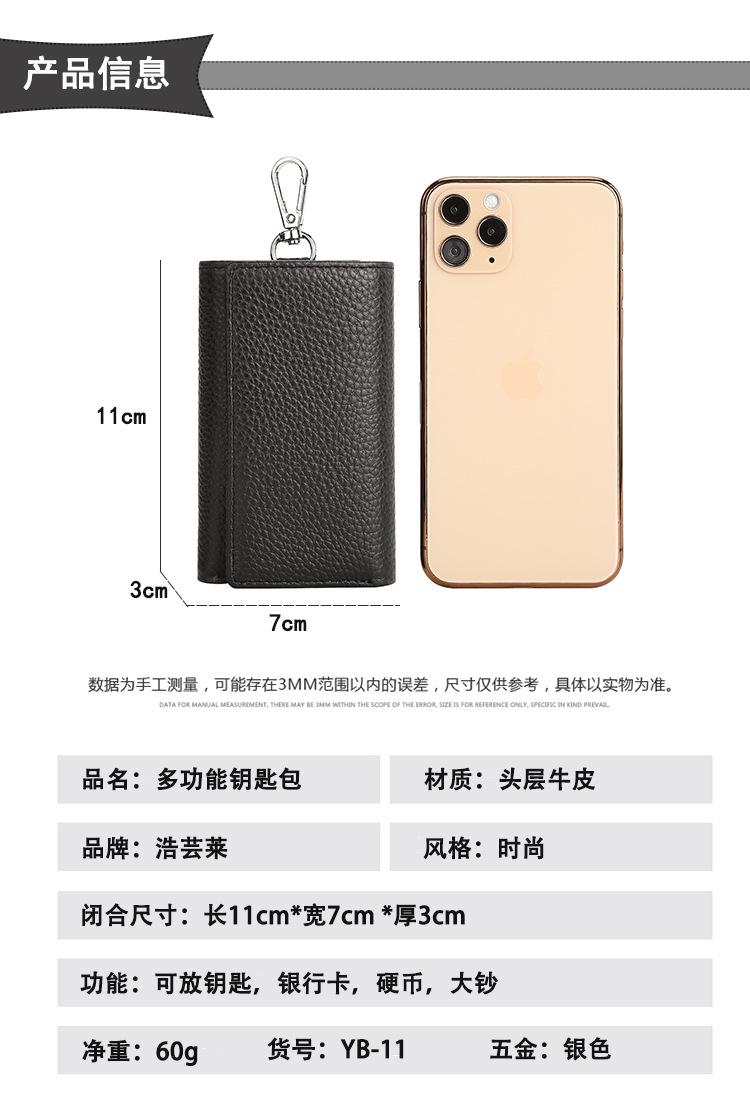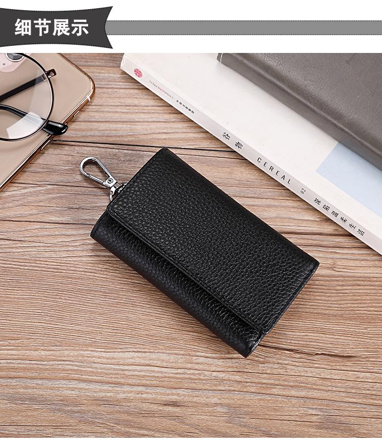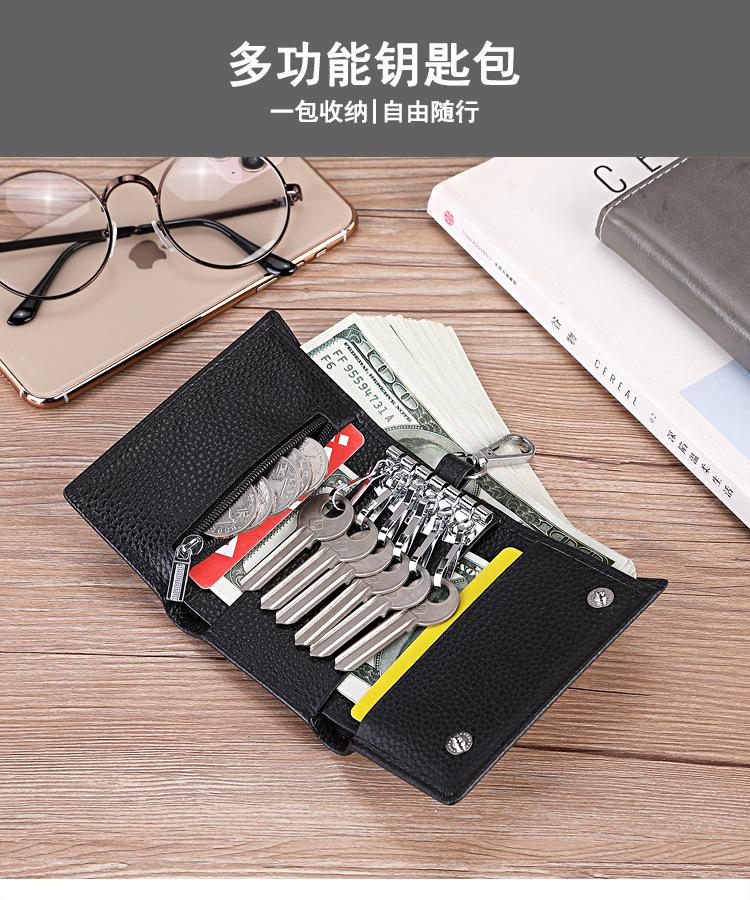 Transfronterizo 2024 Nuevo Cuero Genuino Bolsa para Llaves Capa Superior Piel de Vaca Multifuncional Llavero Bolsa Simple para Tarjetas Monedero
