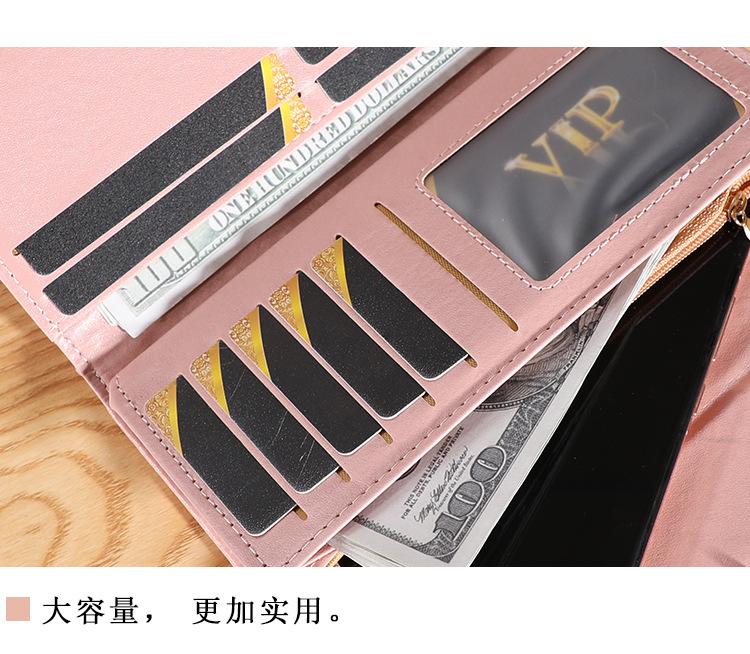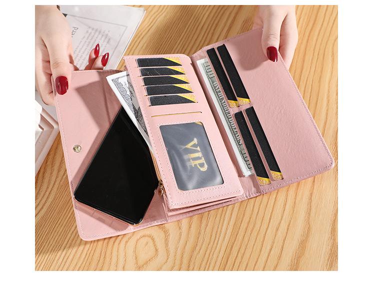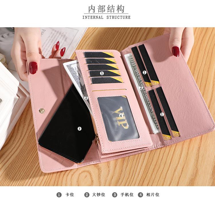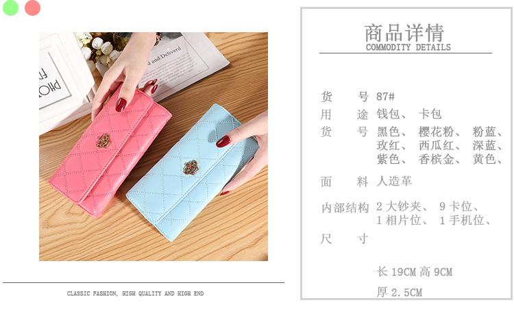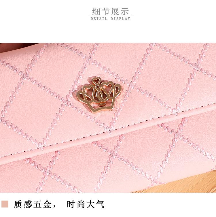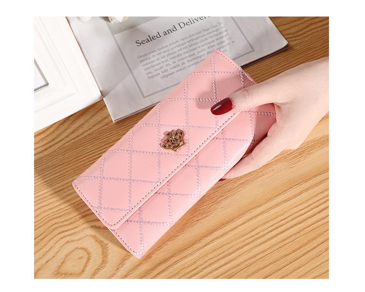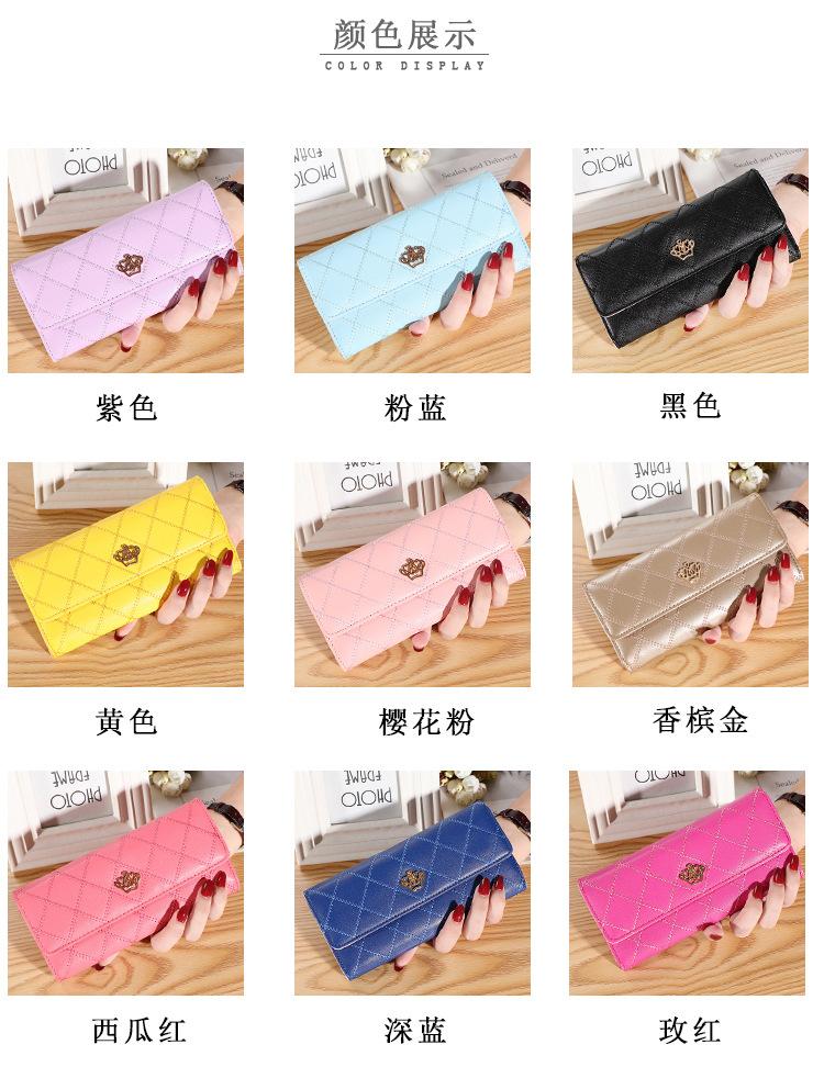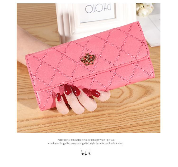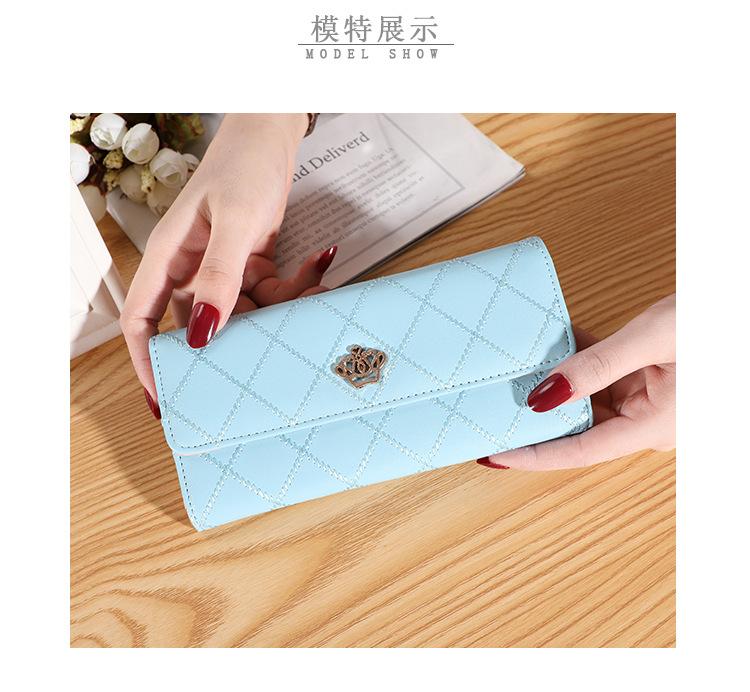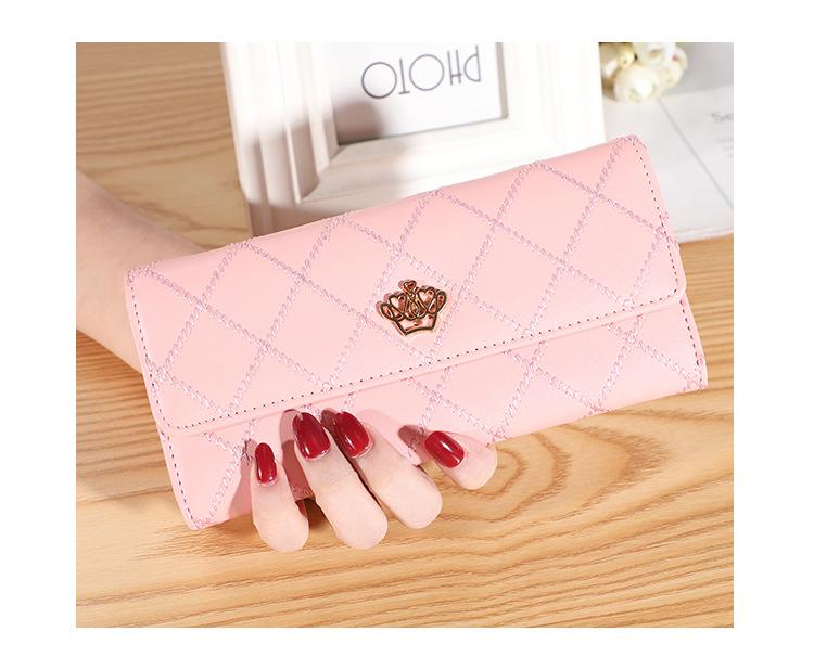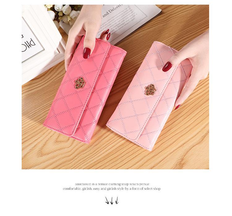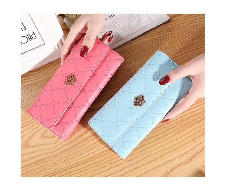 Cartera de mujer de PU, nueva cartera larga de tres pliegues, estilo coreano, con hebilla de embrague, rombo, corona, billetera multitarjeta, 2020