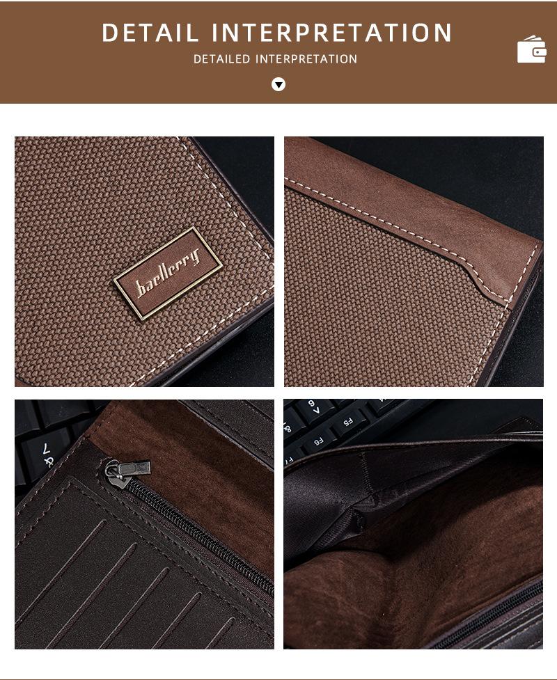 Nueva cartera corta para hombre Baellerry, cartera retro multitarjeta con borde cruzado, monedero de cuero aceitado con doble cremallera