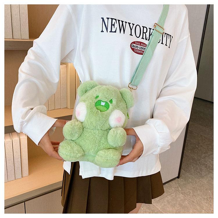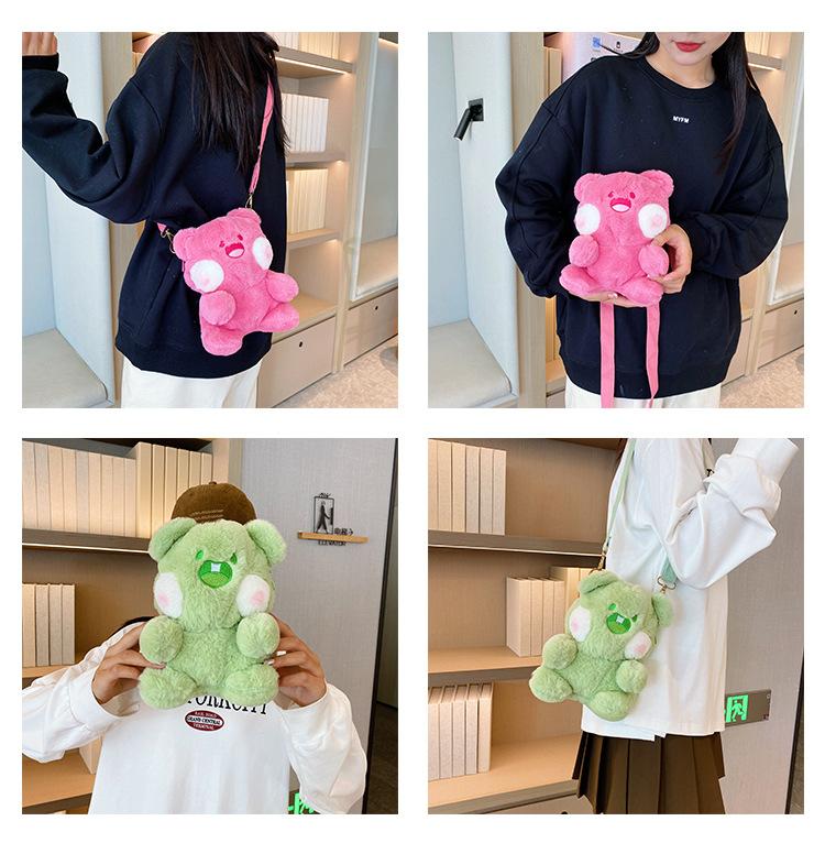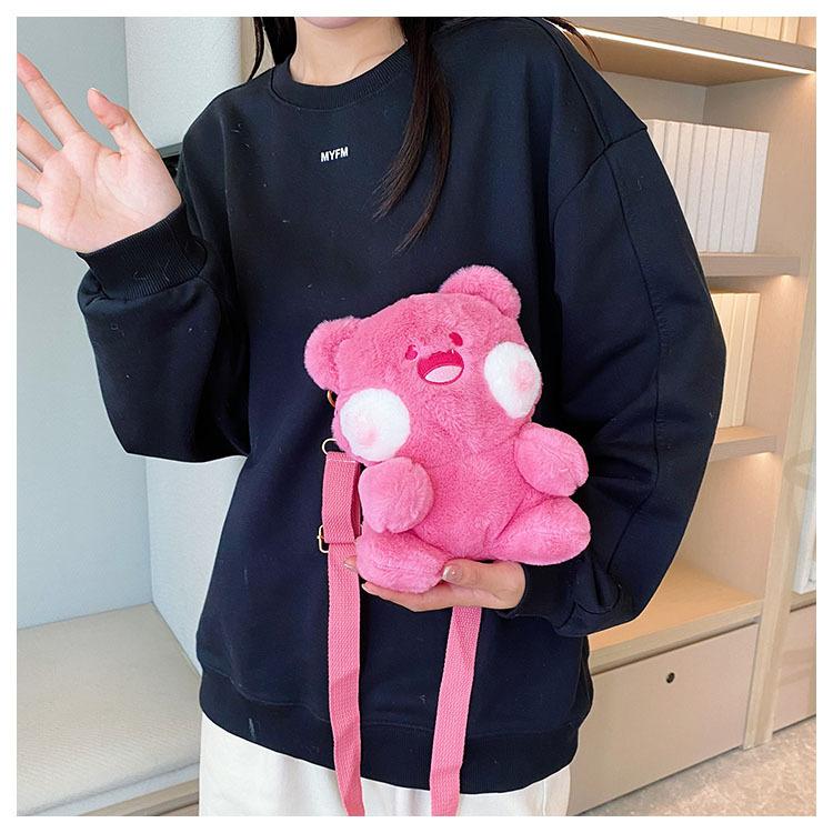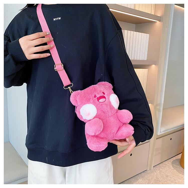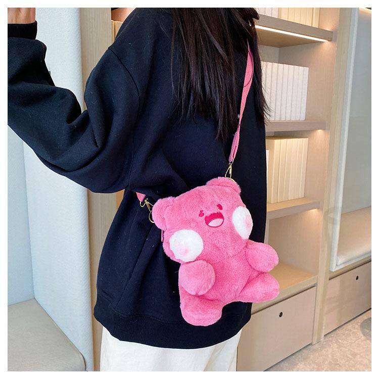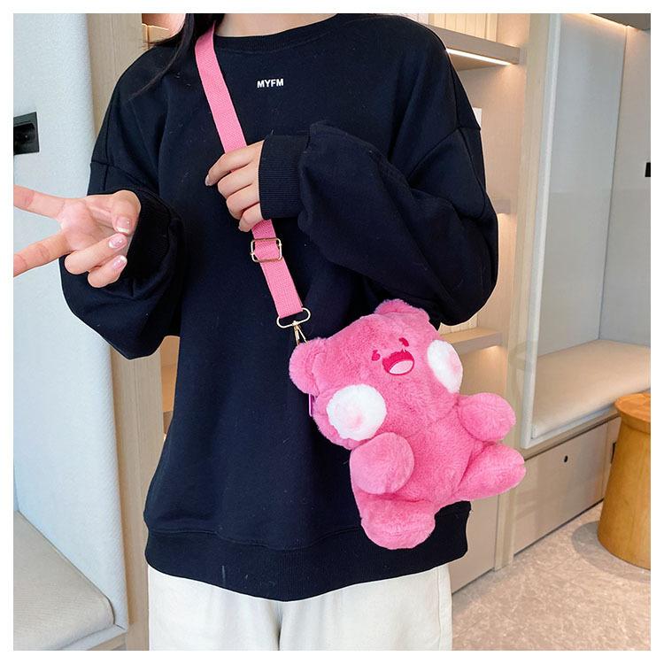 Bolso de peluche de dibujos animados, otoño e invierno 2023, nueva moda, bolso de mensajero de moda, bolso de hombro de oso lindo de dibujos animados