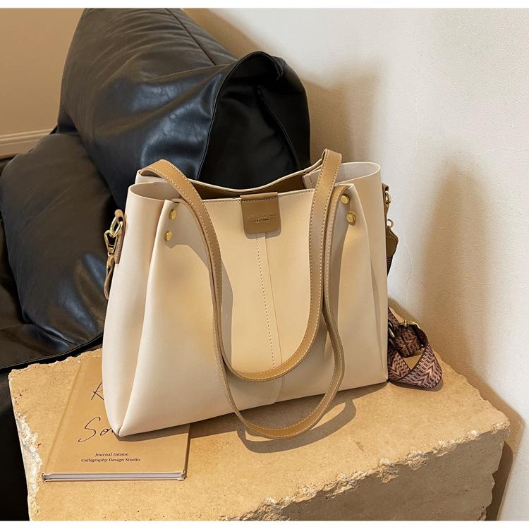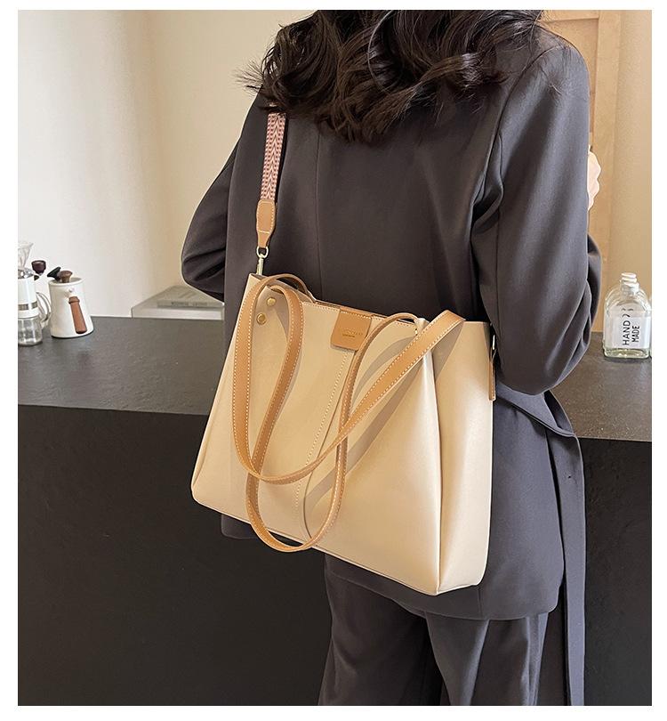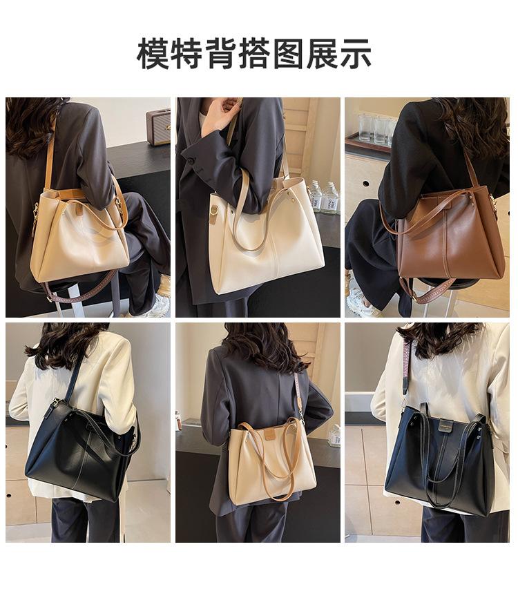 Bolso Tote de Gran Capacidad para Mujer 2024 Otoño e Invierno Nuevo Retro Versátil Bolso de Hombro Cruzado Simple Clase Bolso para Ir al Trabajo