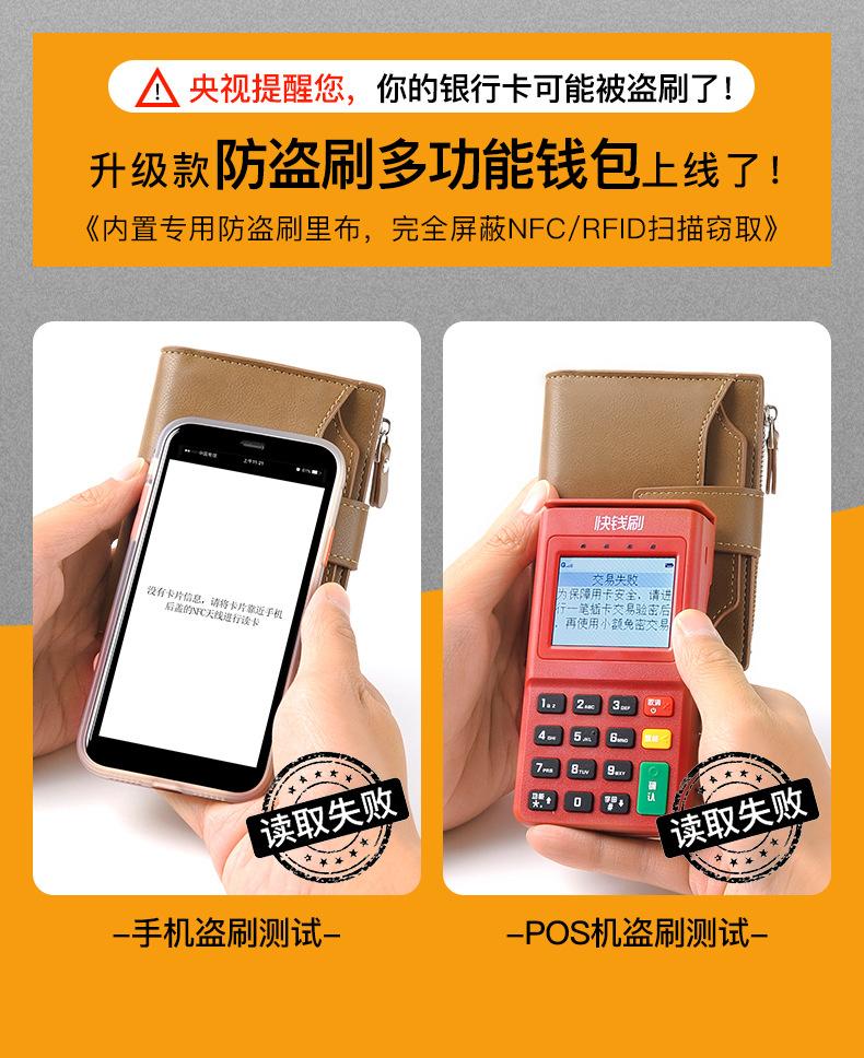 Cartera para tarjetas de hombre, corta, con cepillo antirrobo y antidesmagnetización RFID.