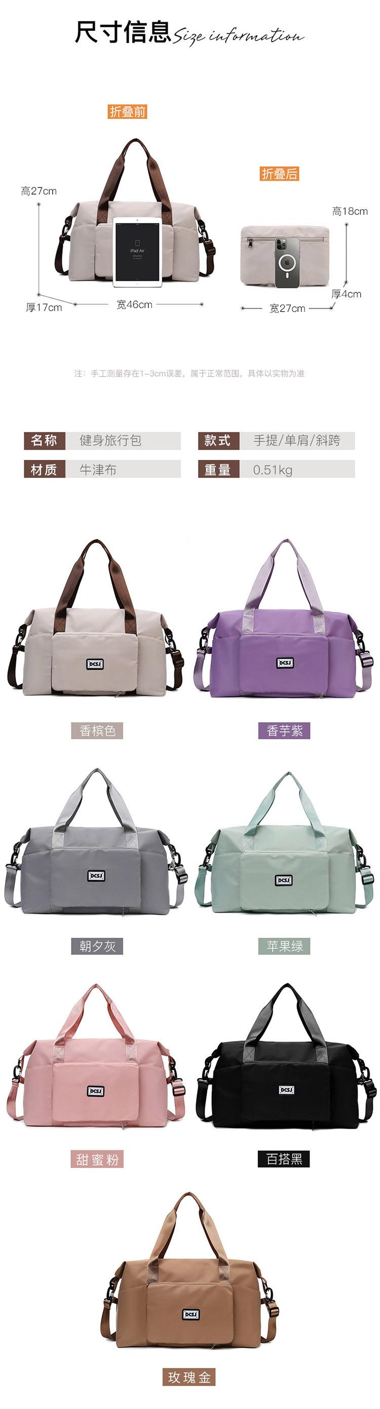 Bolsa deportiva de fitness para mujer, bolsa de natación con separación húmeda y seca, bolsa de viaje plegable de corta distancia, bolsa de mensajero portátil de gran capacidad
